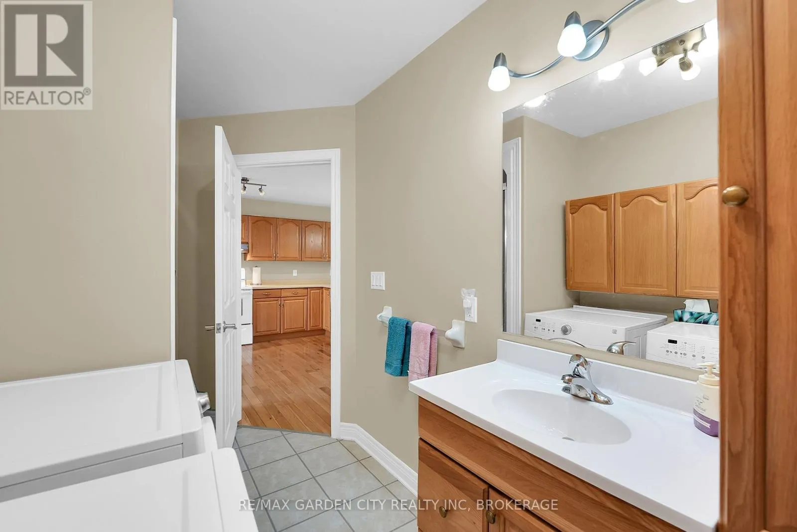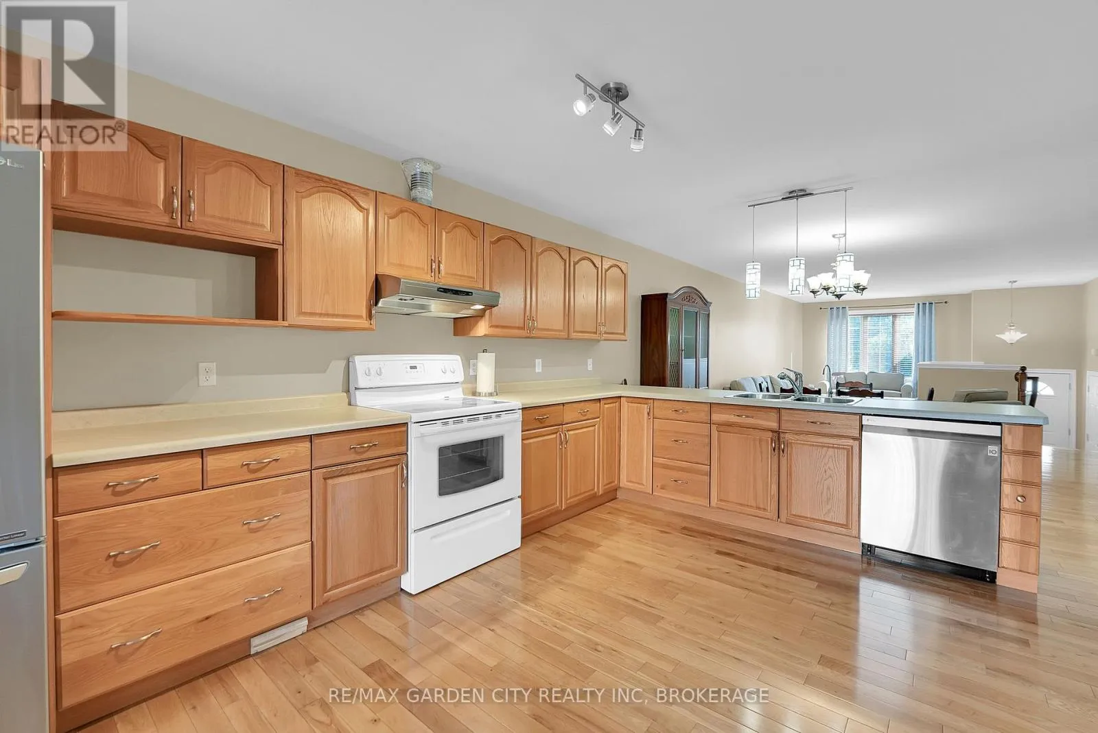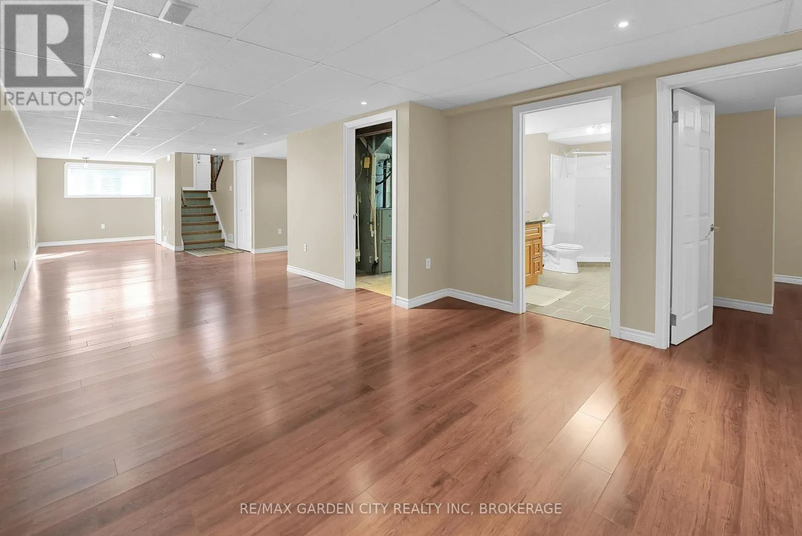 Cross Streets: Wellington and Promenade Richelieu. ** Directions: Main Street to Wellington head South on Wellington to Promenade Richelieu the left on Nathalie. Searching for a move-in condition home located on a court for the kids to play, close to both French and English language schools - plus 406 access in just 1 minute? Or maybe a multi-generation home for the grandparents or older kids that with minor changes, allows the creation of a separate unit? Here it is! This original owner, completely finished raised bungalow semi on a pie shaped lot is absolutely immaculate and so well maintained, you can simply move in! As you approach the peaceful court, notice how well each home is maintained with pride. This home features a concrete driveway for 2 cars plus an attached 1 car garage with door opener, fully fenced yard for the kids or pets and plenty of room for a pool. As you step into this lovely home, take notice of how bright it is with East facing front, side windows to South and rear with westerly light. There are no carpets - the main floor features gleaming hardwood that flows seamlessly throughout, including both bedrooms. The open floorplan features a beautiful living room/dining area separated by a kitchen peninsula which offers the potential of creating a beautiful breakfast bar should you choose to add a new, wider counter top. The large kitchen/dining area includes plenty of storage space for the growing family with a patio door leading to a two tiered deck overlooking the yard. This home features 2 bedrooms, a 4 piece bath and laundry area on the main floor - no stairs to tackle when doing the laundry! The fully finished basement is clean & bright and includes a large family room for get togethers, a well-sized bedroom, 3 piece bath, office and second laundry area in the utility room for in-law suite or rental income possibilities. Extras include: central vacuum & garage door opener, as well as shopping, places of worship, public transit, parks and much more are all a short drive away. Don't miss this one, it is a MUST see! (id:27476)