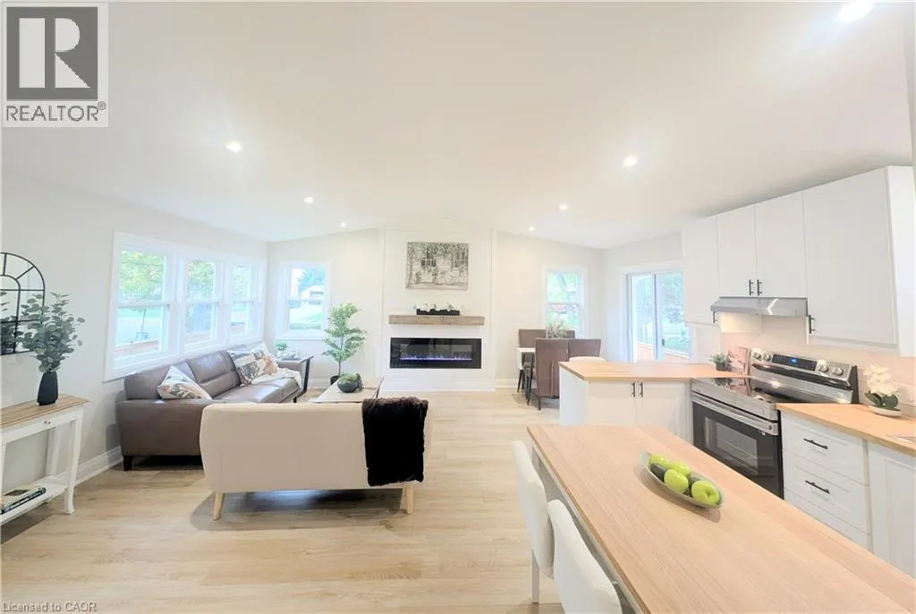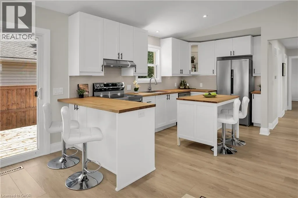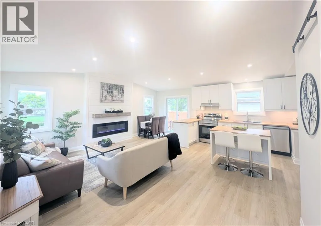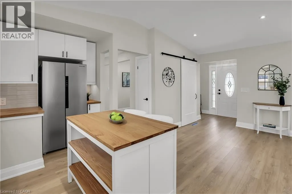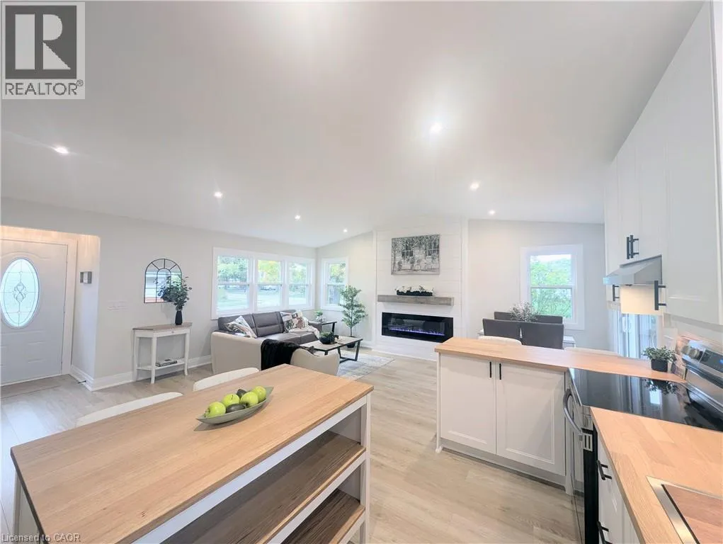From 406 S, take exit 23 to merge Woodlawn Rd/Niagara RR41, merge onto Woodlawn, Left onto Gram Ave (becomes Thomson Rd), Left onto Valencourt Dr. BEAUTIFULLY RENOVATED TOP-TO-BOTTOMâ¦This fully finished 2+2 bedroom, 2 bath bungalow w/IN-LAW POTENTIAL at 52 Valencourt Drive in Welland is nestled on a sunny corner lot, where modern style meets thoughtful functionality. Set on a quiet street, this property boasts eye-catching curb appeal w/NEW siding, windows, porch & fully fenced yard, while a new walkway leads to a welcoming, decorative front door. Step inside to discover a light-filled, OPEN CONCEPT main level enhanced by VAULTED CEILINGS, luxury vinyl plank flooring, fresh paint & trim, and shiplap FEATURE WALL w/built-in electric fireplace. Front entry closet accented by barn door, setting the tone for the stylish touches throughout. The renovated KITCHEN features butcher block countertops, a breakfast peninsula w/extra storage, under-cabinet & in-cabinet lighting, S/S appliances, tile backsplash & moveable island. Patio doors open to a BRAND NEW deck & oversized CONCRETE PATIO, perfect for entertaining or relaxing outdoors. Down the hall, a versatile flex space awaits, perfect for a dining room, office, or extra bedroom to suit your lifestyle. The primary bedroom includes double French doors opening to his-and-hers closets with built-in lighting. A second main floor bedroom & NEW 4-pc bath w/deep soaker tub and stone-top vanity complete the level. With two SEPARATE ENTRANCES to the basement (one from the side door & one from garage) this home is ideal for multi-generational living or rental potential. The LOWER LEVEL features two spacious bedrooms w/egress windows, 4-pc bath, laundry closet & kitchenette w/open living area. Additional UPGRADES include: floors, doors, fixtures, kitchen, bathrooms, all-new ductwork, updated electrical with ESA certificate, new plumbing, tankless water heater, York furnace, AND garage has been newly & fully insulated. A move-in-ready opportunity with exceptional finishings and flexible living potential. (id:27476)