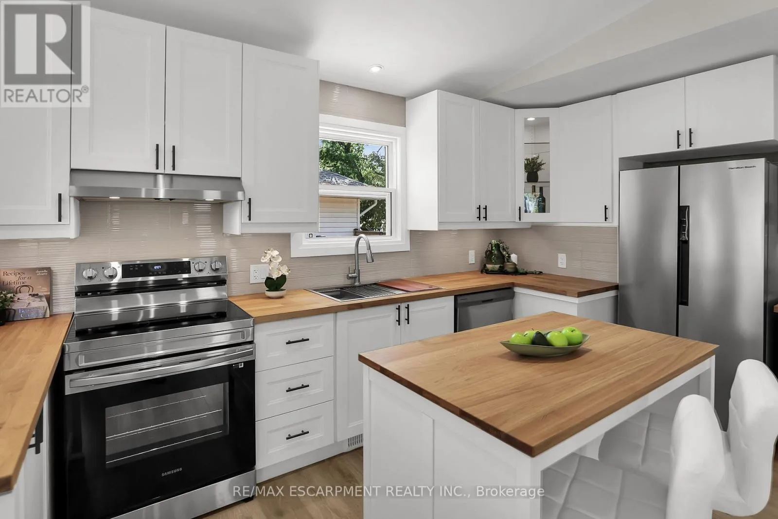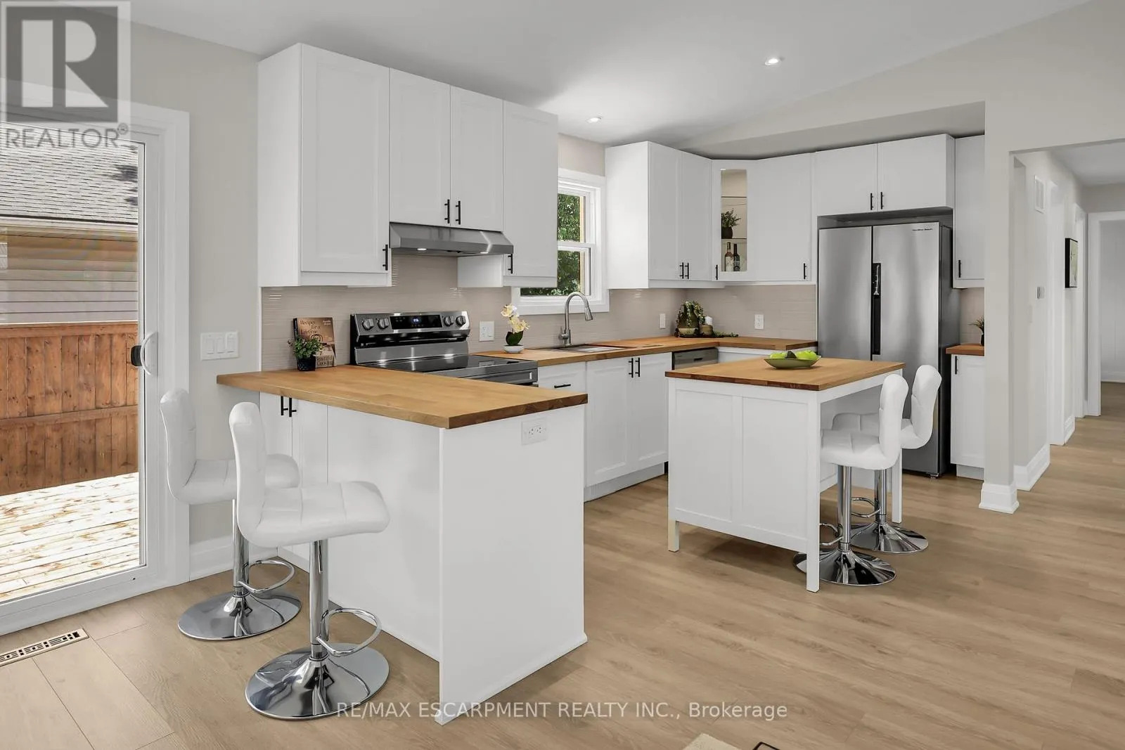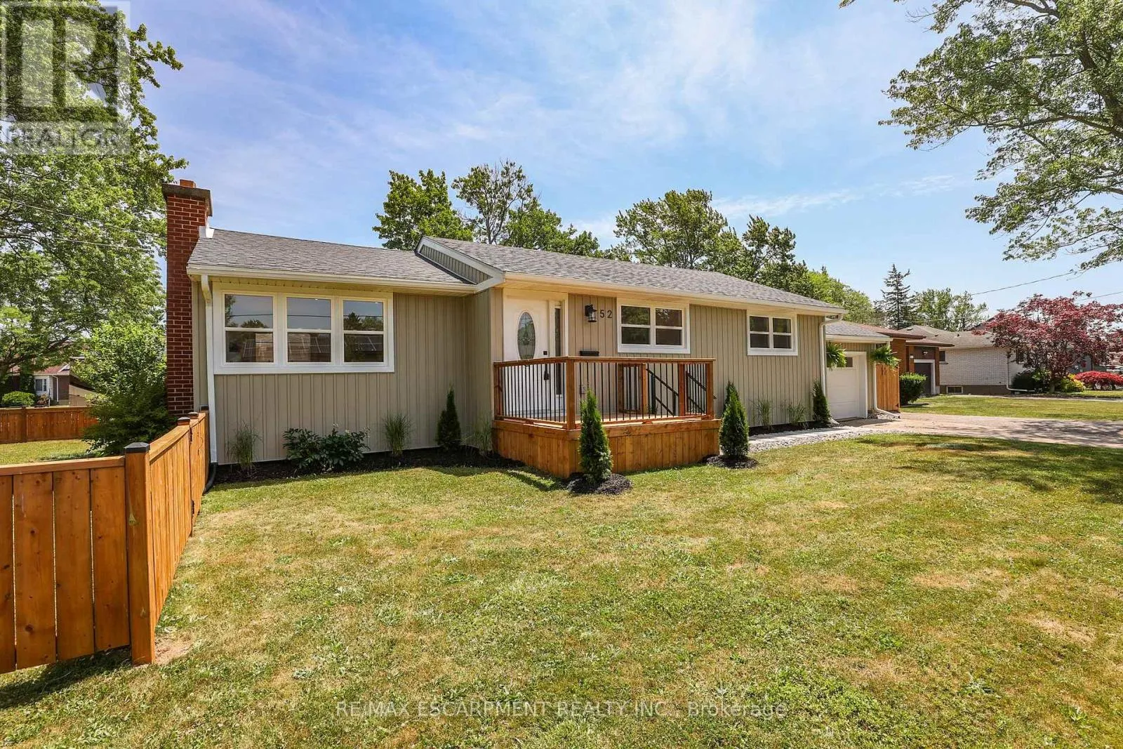 Cross Streets: Woodlawn Rd/Niagara St. ** Directions: From 406 S, take exit 23 to merge Woodlawn Rd/Niagara RR41, merge onto Woodlawn, Left onto Gram Ave (becomes Thomson Rd), Left onto Valencourt Dr. BEAUTIFULLY RENOVATED TOP-TO-BOTTOM...This fully finished 2+2 bedroom, 2 bath bungalow w/IN-LAW POTENTIAL at 52 Valencourt Drive in Welland is nestled on a sunny corner lot, where modern style meets thoughtful functionality. Set on a quiet street, this property boasts eye-catching curb appeal w/NEW siding, windows, porch & fully fenced yard, while a new walkway leads to a welcoming, decorative front door. Step inside to discover a light-filled, OPEN CONCEPT main level enhanced by VAULTED CEILINGS, luxury vinyl plank flooring, fresh paint & trim, and shiplap FEATURE WALL w/built-in electric fireplace. Front entry closet accented by barn door, setting the tone for the stylish touches throughout. The renovated KITCHEN features butcher block countertops, a breakfast peninsula w/extra storage, under-cabinet & in-cabinet lighting, S/S appliances, tile backsplash & moveable island. Patio doors open to a BRAND NEW deck & oversized CONCRETE PATIO, perfect for entertaining or relaxing outdoors. Down the hall, a versatile flex space awaits, perfect for a dining room, office, or extra bedroom to suit your lifestyle. The primary bedroom includes double French doors opening to his-and-hers closets with built-in lighting. A second main floor bedroom & NEW 4-pc bath w/deep soaker tub and stone-top vanity complete the level. With two SEPARATE ENTRANCES to the basement (one from the side door & one from garage) this home is ideal for multi-generational living or rental potential. The LOWER LEVEL features two spacious bedrooms w/egress windows, 4-pc bath, laundry closet & kitchenette w/open living area. Additional UPGRADES include: floors, doors, fixtures, kitchen, bathrooms, all-new ductwork, updated electrical with ESA certificate, new plumbing, tankless water heater, York furnace, AND garage has been newly & fully insulated. A move-in-ready opportunity with exceptional finishings and flexible living potential. (id:27476)