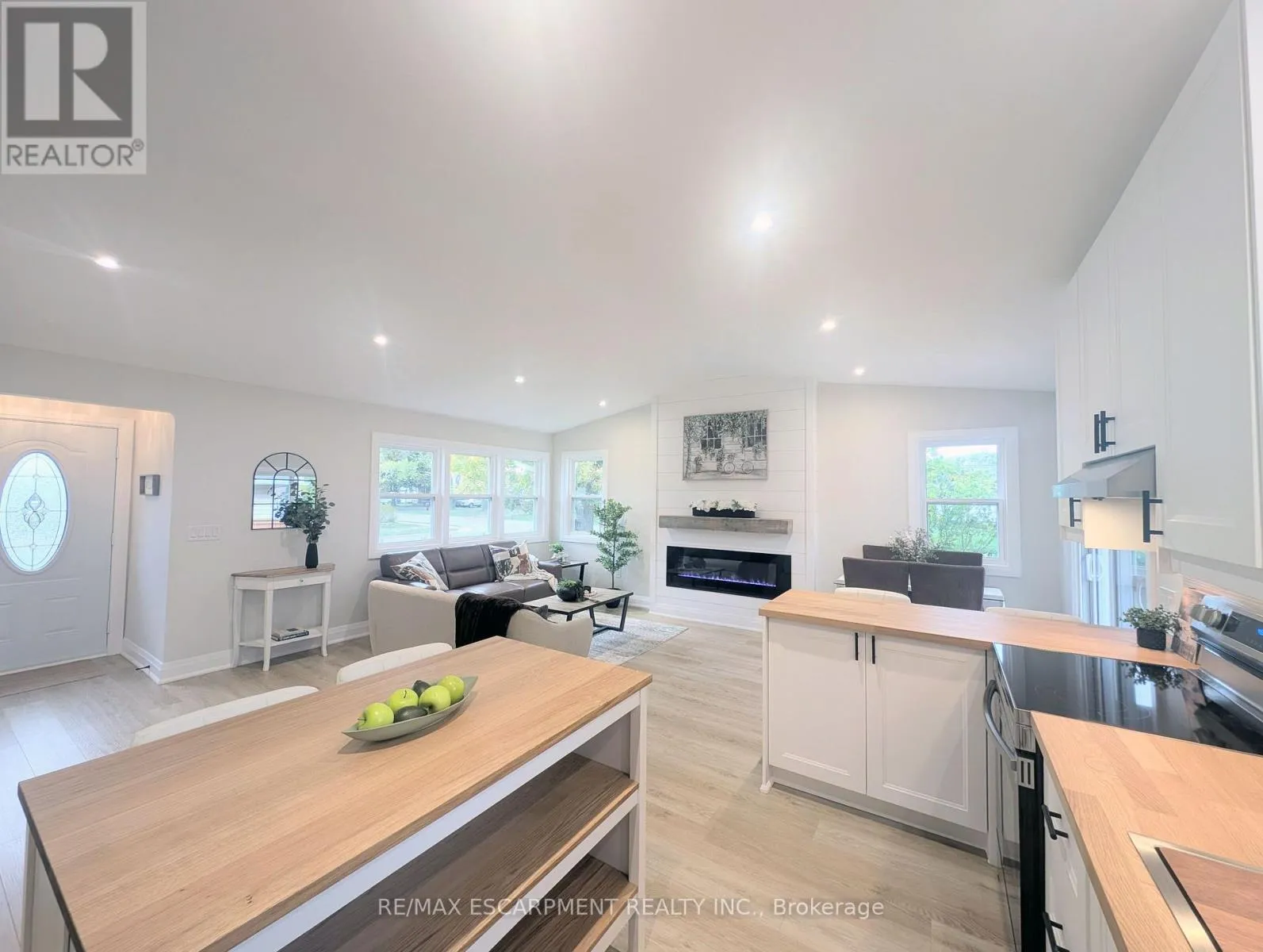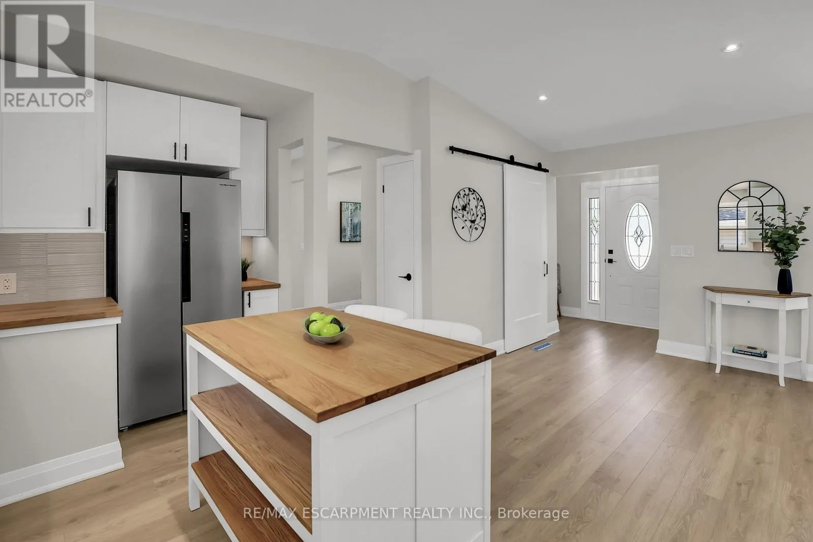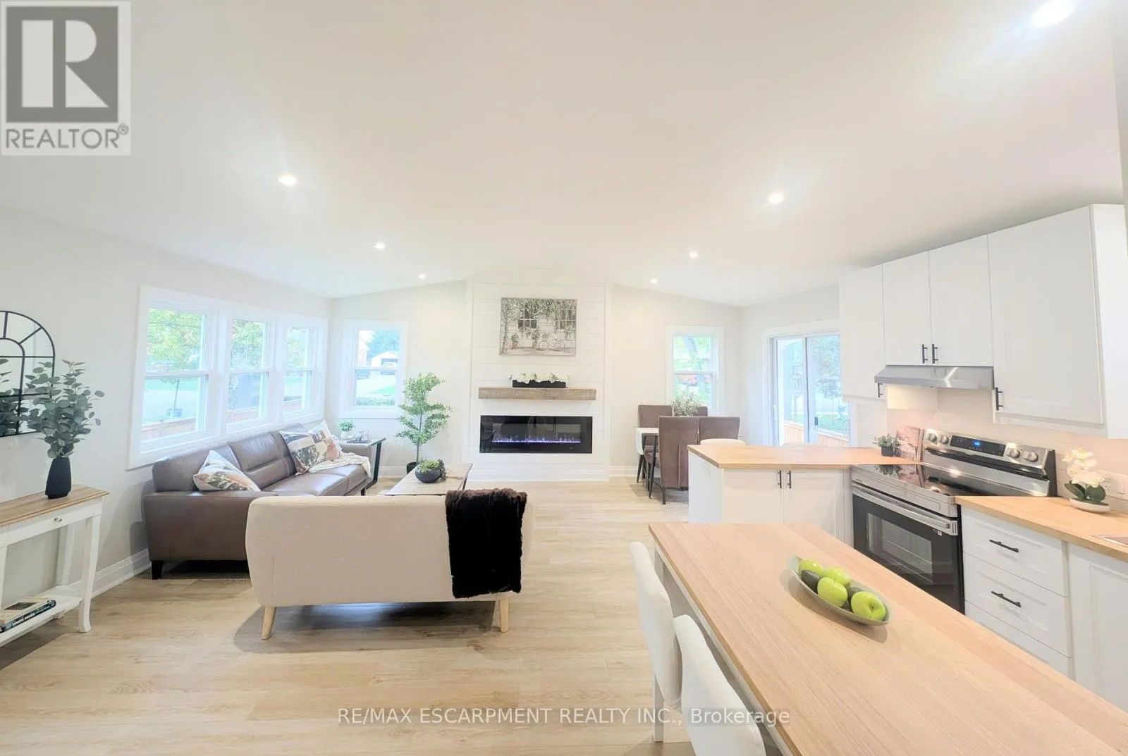 Cross Streets: Woodlawn Rd/Niagara St. ** Directions: From 406 S, take exit 23 to merge Woodlawn Rd/Niagara RR41, merge onto Woodlawn, Left onto Gram Ave (becomes Thomson Rd), Left onto Valencourt Dr. BEAUTIFULLY RENOVATED TOP-TO-BOTTOM...This fully finished 2+2 bedroom, 2 bath bungalow w/IN-LAW POTENTIAL at 52 Valencourt Drive in Welland is nestled on a sunny corner lot, where modern style meets thoughtful functionality. Set on a quiet street, this property boasts eye-catching curb appeal w/NEW siding, windows, porch & fully fenced yard, while a new walkway leads to a welcoming, decorative front door. Step inside to discover a light-filled, OPEN CONCEPT main level enhanced by VAULTED CEILINGS, luxury vinyl plank flooring, fresh paint & trim, and shiplap FEATURE WALL w/built-in electric fireplace. Front entry closet accented by barn door, setting the tone for the stylish touches throughout. The renovated KITCHEN features butcher block countertops, a breakfast peninsula w/extra storage, under-cabinet & in-cabinet lighting, S/S appliances, tile backsplash & moveable island. Patio doors open to a BRAND NEW deck & oversized CONCRETE PATIO, perfect for entertaining or relaxing outdoors. Down the hall, a versatile flex space awaits, perfect for a dining room, office, or extra bedroom to suit your lifestyle. The primary bedroom includes double French doors opening to his-and-hers closets with built-in lighting. A second main floor bedroom & NEW 4-pc bath w/deep soaker tub and stone-top vanity complete the level. With two SEPARATE ENTRANCES to the basement (one from the side door & one from garage) this home is ideal for multi-generational living or rental potential. The LOWER LEVEL features two spacious bedrooms w/egress windows, 4-pc bath, laundry closet & kitchenette w/open living area. Additional UPGRADES include: floors, doors, fixtures, kitchen, bathrooms, all-new ductwork, updated electrical with ESA certificate, new plumbing, tankless water heater, York furnace, AND garage has been newly & fully insulated. A move-in-ready opportunity with exceptional finishings and flexible living potential. (id:27476)