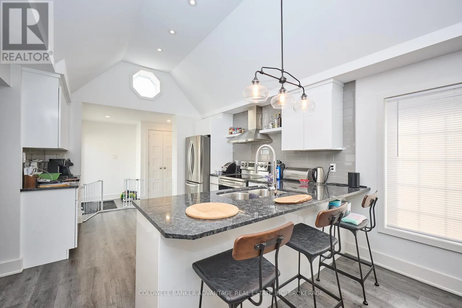 Cross Streets: Ontario. ** Directions: Ontario to Deere St. Charming Home - Renovated & Move-in Ready! Welcome to this beautifully renovated home that is easily transformed back into a 2 + 1 bedroom, 2 bathroom gem that perfectly blends modern finishes with cozy charm. This stylish home is ideal for first-time home buyers, downsizers, or those seeking a turnkey property in a peaceful setting. Step inside to a bright, open-concept living space featuring vaulted ceilings that create a spacious and airy atmosphere. The heart of the home is the kitchen, complete with granite countertops, a breakfast bar, and updated appliances, plus an added butler's kitchen -perfect for entertaining or enjoying your morning coffee. Throughout the main living areas, you'll find durable and attractive vinyl flooring, while both bathrooms have been tastefully updated with ceramic tile floors and modern fixtures. The versatile second room offers flexible space for a guest bedroom, home office, or den. Step through French doors onto a large deck overlooking your beautifully landscaped backyard, ideal for relaxing or hosting gatherings. A handy 8 x 12 shed provides ample storage for tools, bikes, or garden equipment. Don't miss this opportunity to own a thoughtfully upgraded home that's as practical as it is charming. (id:27476)