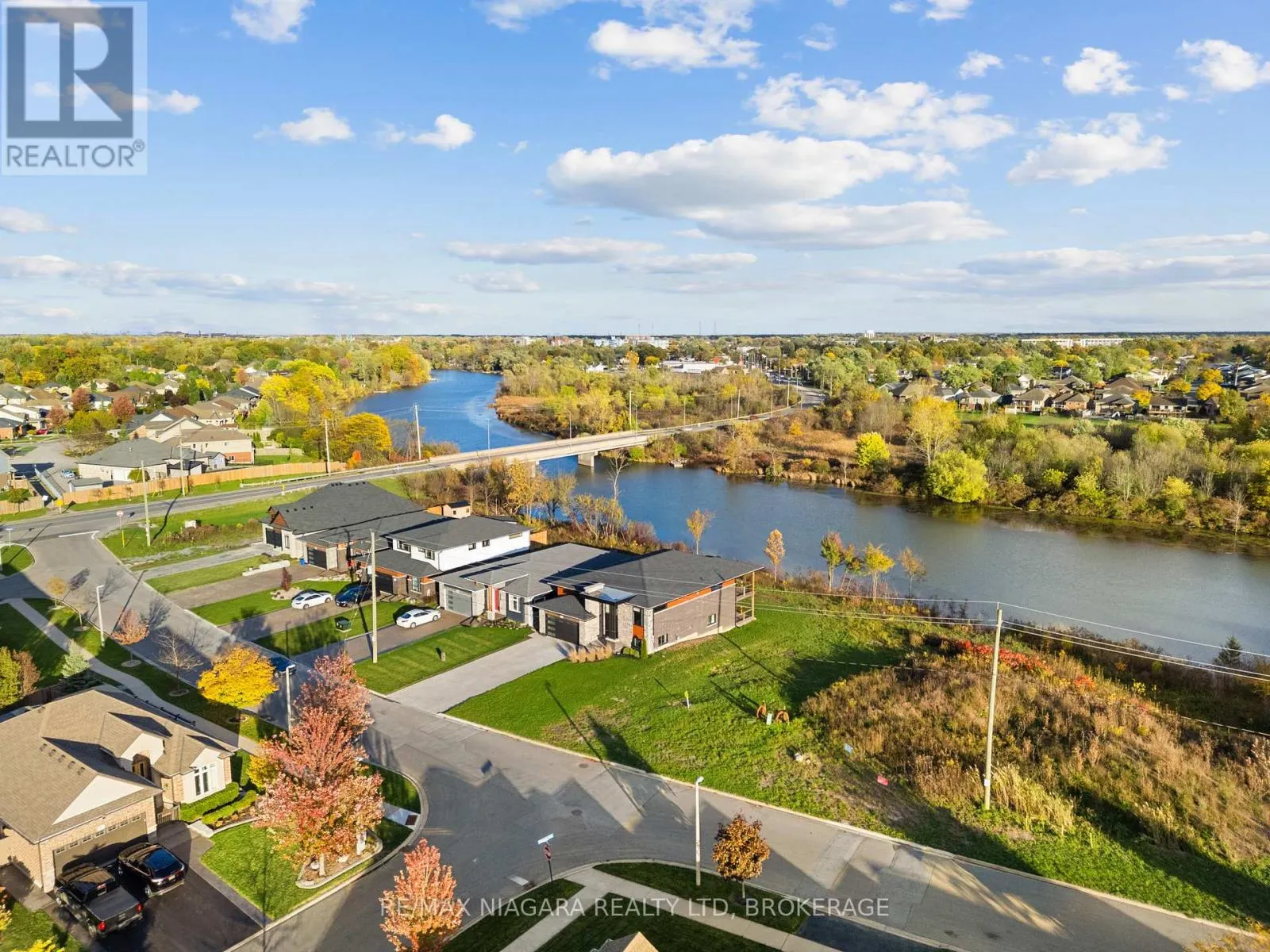 Cross Streets: Webber/ Gaiser. ** Directions: Webber Rd., south on Colbeck Dr. Upscale waterfront raised bungalow featuring 2+2 bedrooms and 2+1 bathrooms, with an open-concept design and a full walkout lower level offering over 3,600 sq. ft. of luxury living space. Nestled along the tranquil Welland River, the main level showcases a custom kitchen with a quartz island and a stunning great room with a wall-mounted fireplace, flowing seamlessly to a covered deck overlooking the extraordinary riverbend view. Retreat to the spa-inspired ensuite with a spacious walk-in tile and glass shower and freestanding soaker tub. The lower level offers a self-contained living area with a full kitchen, two bedrooms, a 3 pce. and a large recreation space with a private walkout to the waterfront patio. Boasting elegant finishes throughout, this home combines modern style with a serene waterfront setting perfect for two family living. The outdoor patio and the deck measure 21'-8" x 11'-3". (id:27476)