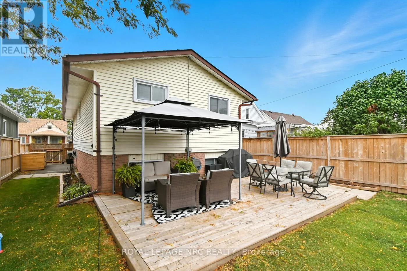 Cross Streets: McNab. ** Directions: McCabe to Wright. Pristine 970 +/- sq.ft. 3 bedroom, 2 bath raised bungalow on quiet street. Large sun drenched living room with bow window, good size dining area. Kitchen with plenty pf cupboards (appliances included) Original dining room doubles as side entry with access to the backyard. 3 good size bedrooms up and nicely redone 4pc bathroom. Finished rec room with electric fireplace, plus finished play area, games room 23'5" X 13'7" ("L" shaped) Kitchenette removed (hood fan capped off in ceiling) 3pc bathroom. 2 large storage rooms. Basement would make a great in law suite. Backyard with newly built wood privacy fence. Large patio with gazebo, above ground pool and shed complete this summer oasis. You wont' be disappointed! Close to schools, shopping and bus route. Call today for private viewing. (id:27476)