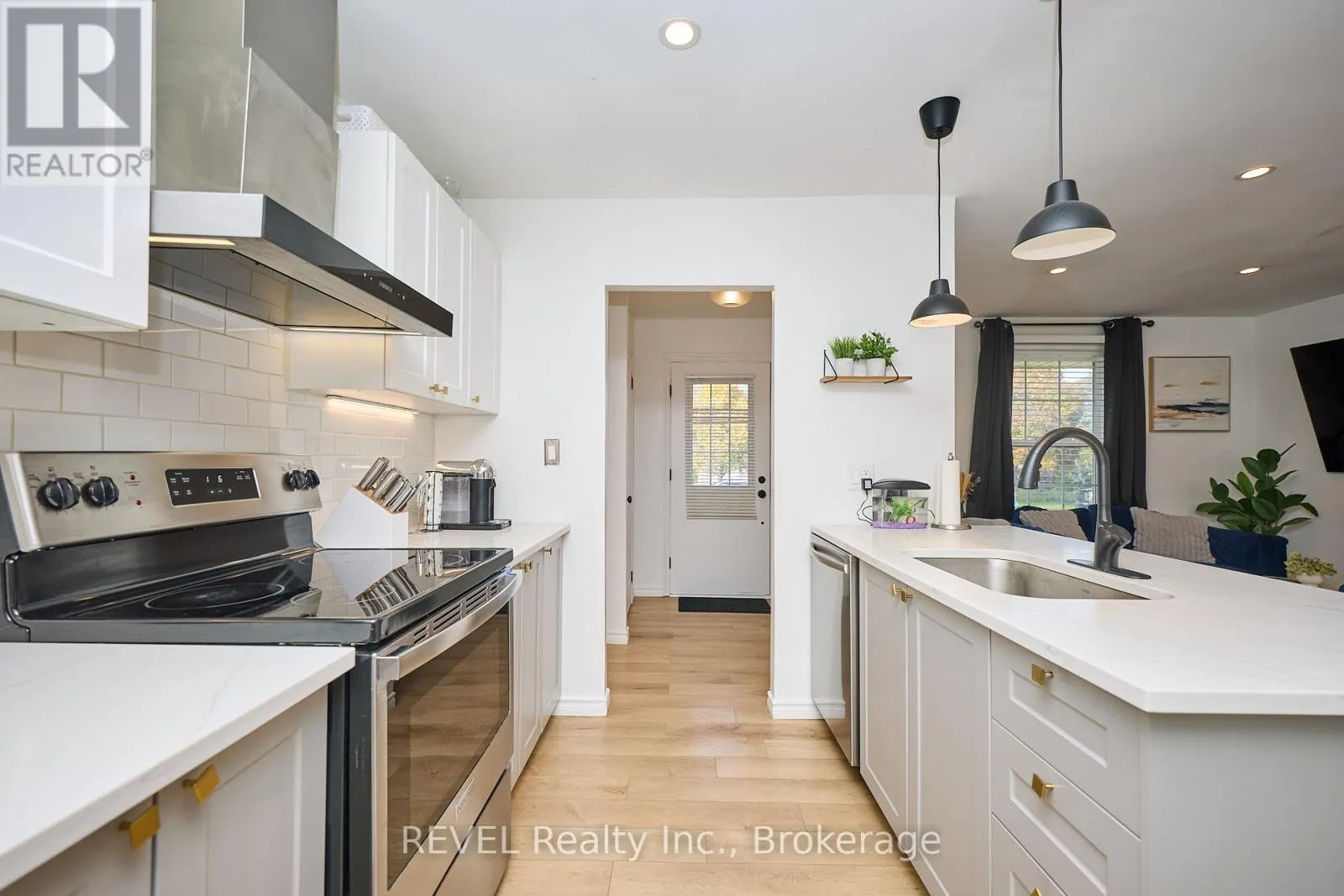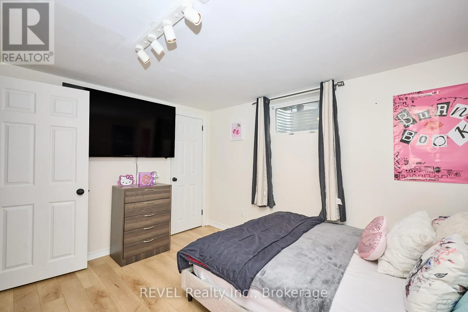 Cross Streets: Rice road to Mccrae, left on Newleaf. ** Directions: Woodlawn Rd to Leaside Dr to Mcrae to Newleaf Cr. Welcome to this fully updated bungalow located in a quiet family friendly desirable north end location on a quiet dead end Crescent, close to A+ schools, highways, Niagara College, YMCA, and more! This fully updated bungalow is move in ready, with just under 2000 sq.ft of total finished living space top to bottom, featuring an open concept design and modern contemporary décor. Modern custom kitchen with new shaker style cabinets, quartz counters, stainless steel appliances, classic subway tile backsplash with island for bonus seating. There is a family sized living room/dining combo with patio doors leading you to the large rear yard with interlock brick patio to enjoy some peace & privacy. Three spacious bedrooms on the main floor with a custom main level bath with custom ceramic tub surround. The lower level features a separate entrance from the backyard for in-law suite, or extra income possibilities if desired.. Large Recroom to fit all the families needs, gas fireplace, a 4th bedroom and a second 4 piece bath with laundry. Deep oversized detached garage with hydro, this bungalow has it all at this price point! Other features and updates include; Garage roof (2025) Double wide Asphalt driveway (2023) Luxury vinyl flooring throughout both levels (2023) Roof/Facia/Soffit/Eaves (2021) Furnace/A/C, & Windows all replaced in (2021). 200 amp service, hydro in garage. All this on a large reverse pie shape Lot with truly nothing to do but move in and enjoy! (id:27476)