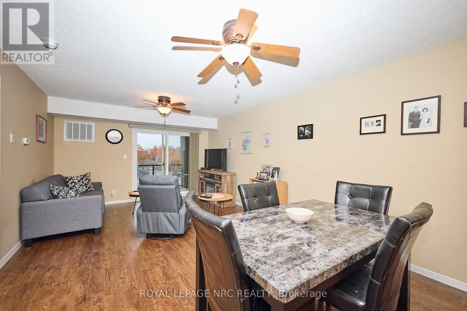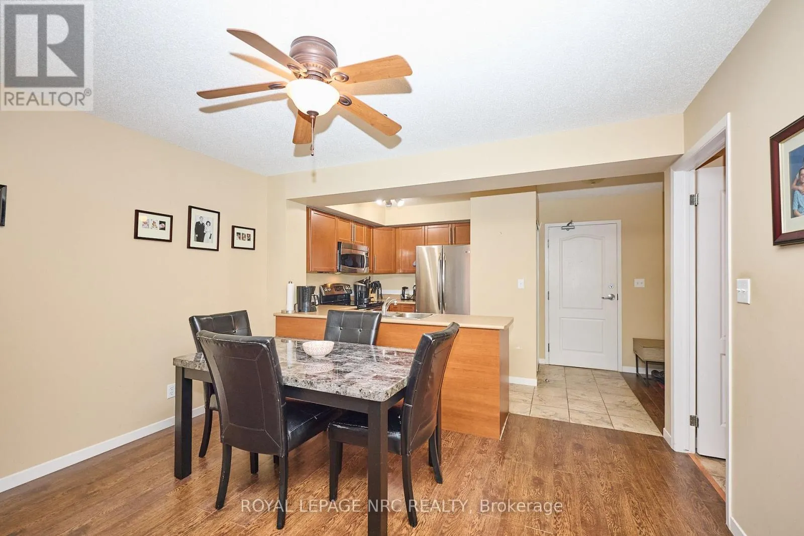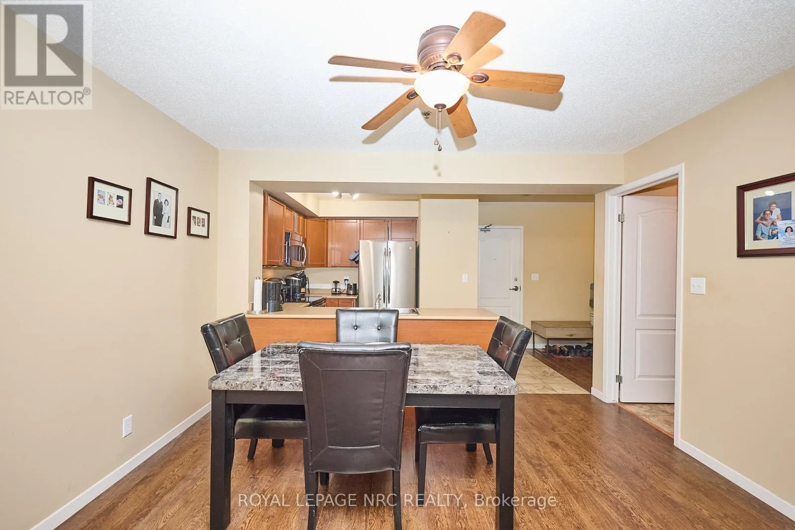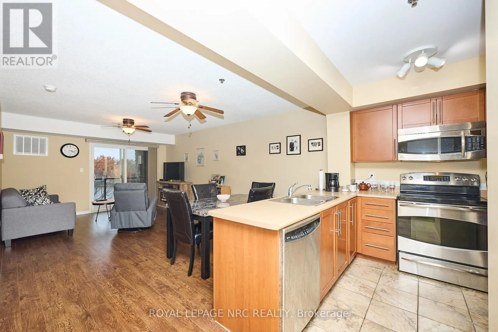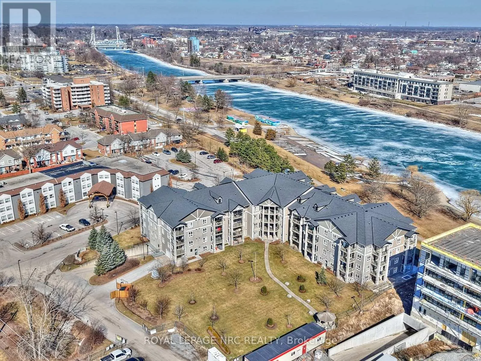 Cross Streets: LINCOLN. ** Directions: S PAST LINCOLN ENTRANCE ON LEFT SIDE. Welcome to this beautifully maintained one-bedroom + den suite in a desirable waterfront building in West Welland. Enjoy the walking trails right outside your door along the river, as well as proximity to parks, schools, and all amenities. This bright and inviting unit offers an open-concept layout featuring a spacious living and dining area seamlessly connected to a functional kitchen with a centre island-perfect for cooking and entertaining. The large primary bedroom includes a walk-in closet, while the den provides an ideal space for a home office or guest area. Enjoy your morning coffee or evening unwind on the covered balcony overlooking the serene surroundings of the waterfront and greenspace. Additional highlights include in-suite laundry, a four-piece bathroom, and newer furnace and air conditioner (both within one year). This well-maintained building includes two deeded parking spaces-one underground and one outdoor-as well as a main-floor storage locker for added convenience. The only utilities you pay are gas and hydro, with water included in the condo fees. Experience low-maintenance living in a peaceful waterfront setting-perfect for professionals, downsizers, or anyone seeking comfort and convenience in the heart of Welland. (id:27476)