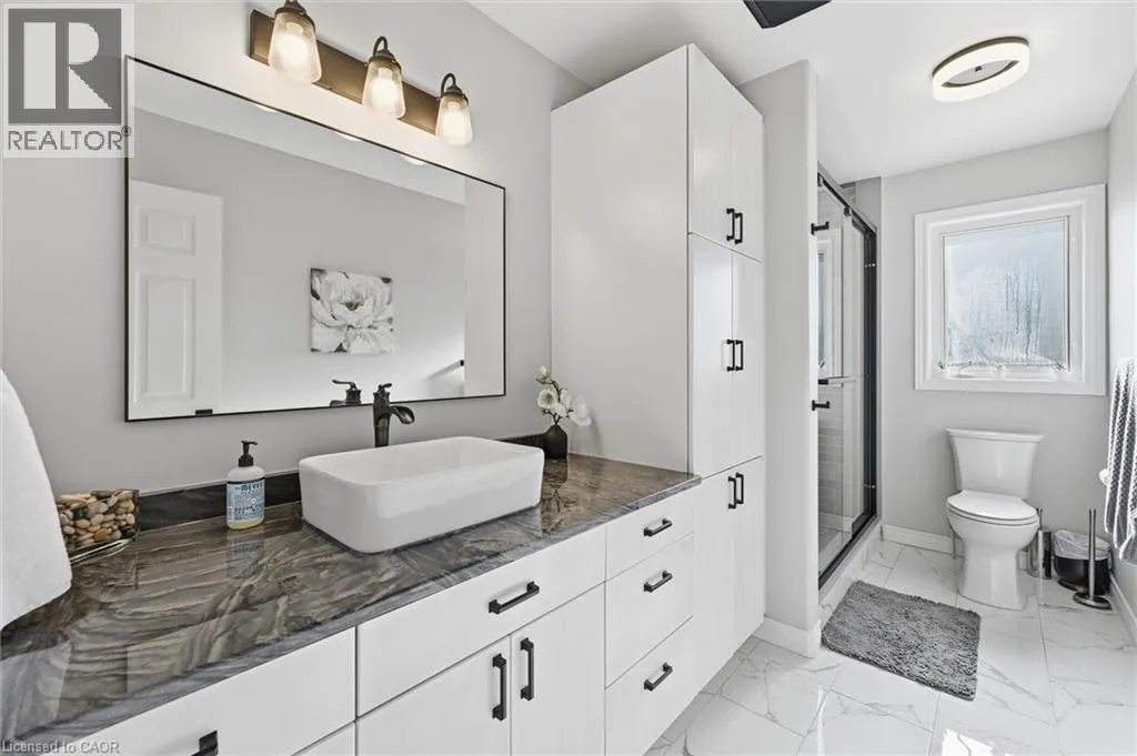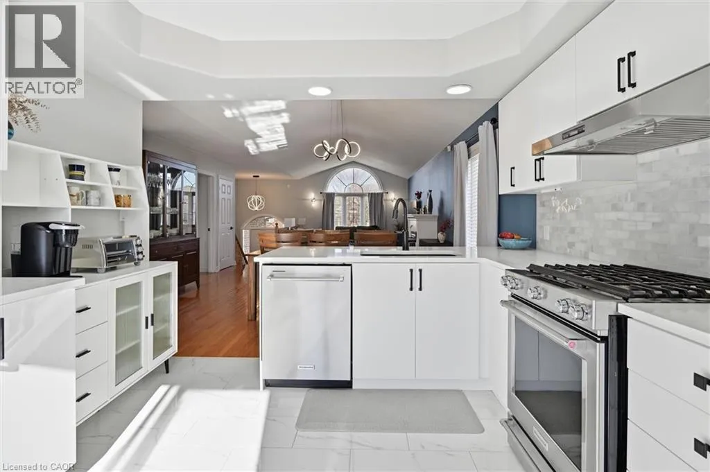 Niagara St - Quaker - St. Lawrence This updated five-bedroom, two-bath raised bungalow welcomes you with a spacious, sunlit open concept. Step into the oversized foyer leading to the open-plan living/dining, and kitchen areas, floored in hardwood with ceramic tiles. Enjoy the gas fireplace, vaulted ceilings, and renovated kitchen boasting quartz counters, fresh cabinetry, and stainless appliancesâideal for family gatherings. Skylights and glass doors from the kitchen access a deck, private fenced in backyard with patio with gazebo. On the main level: a generous primary suite, renovated three-piece bath with glass shower, and two secondary bedrooms. It continues down to the finished basement with two big bedrooms or playroom and office. Second remodeled 3pc bathroom and large rec room great for movie night. Attached single car garage with paved drive and parking for 3. Walking distance to almost everything you need! Upgrades incl. roof (2016), furnace & a/c (2024), kitchen (2024), bathrooms (2024), windows as-is. (id:27476)
