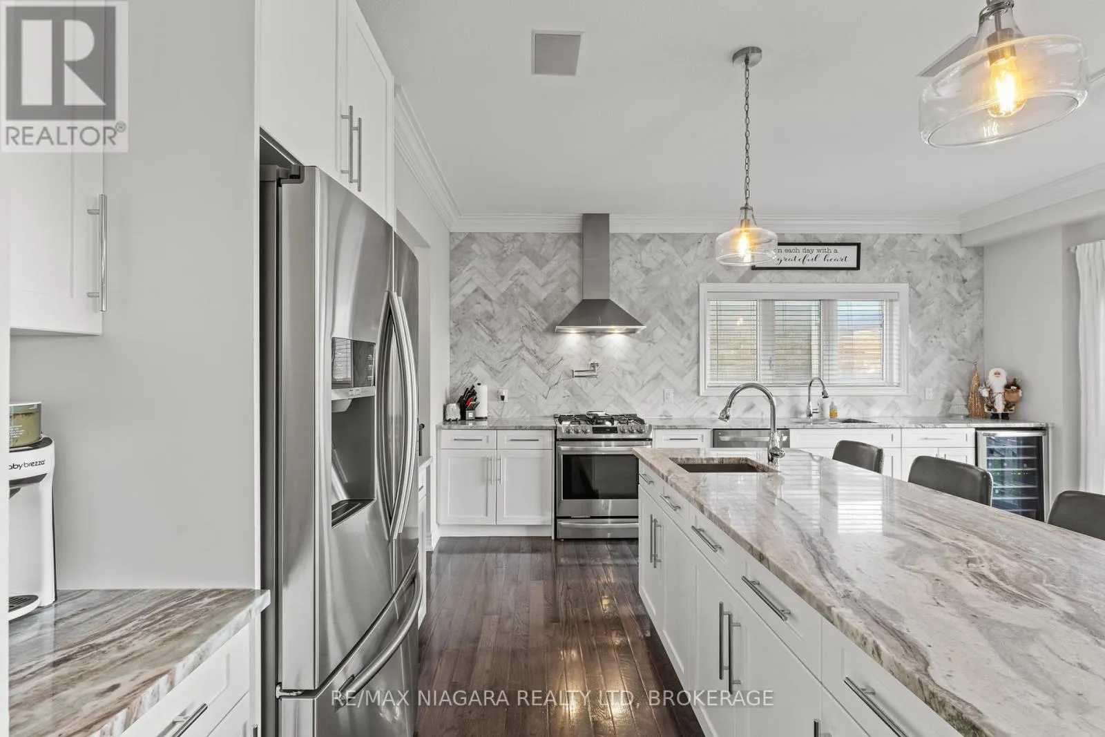 WEBER RD - SOUTH PELHAM This beautifully crafted two-storey home showcases luxury living at its finest, offering refined finishes, thoughtful upgrades, and exceptional care throughout. From the stone and brick exterior to the meticulously maintained landscaping, every detail reflects quality and pride of ownership.Step through the front door and experience an inviting open-concept layout highlighted by 9' ceilings, solid oak hardwood, custom panel mouldings, designer lighting, and a beautifully detailed coffered ceiling in the living room. Oversized polished tile, 8" crown moulding, and added windows bring in incredible natural light and enhance the overall flow.The gourmet kitchen is a true showpiece, featuring a stunning custom marble herringbone backsplash, granite countertops, a pot filler, prep island with sink, and 8' patio doors leading to the backyard. Perfect for everyday living or effortless entertaining.Upstairs, the spacious primary suite offers two walk-in closets, hardwood flooring, and a luxurious 5-piece ensuite complete with a free-standing soaker tub. Convenient second-floor laundry adds modern practicality.The fully finished lower level elevates this home even further complete with engineered oak floors, a custom wet bar with granite counters, undermount lighting, bar sink, beverage fridge, and illuminated wall cabinetry. The dedicated home theatre features hardwired 7.1 surround sound, seven built-in speakers, and a 92" motorized projector screen for an immersive experience.Additional features include a security and smart home automation system, central vacuum, and wired cable/ethernet in every room.Impeccably maintained and thoughtfully designed, this one-of-a-kind home delivers luxury, comfort, and turnkey living in every detail. (id:27476)
