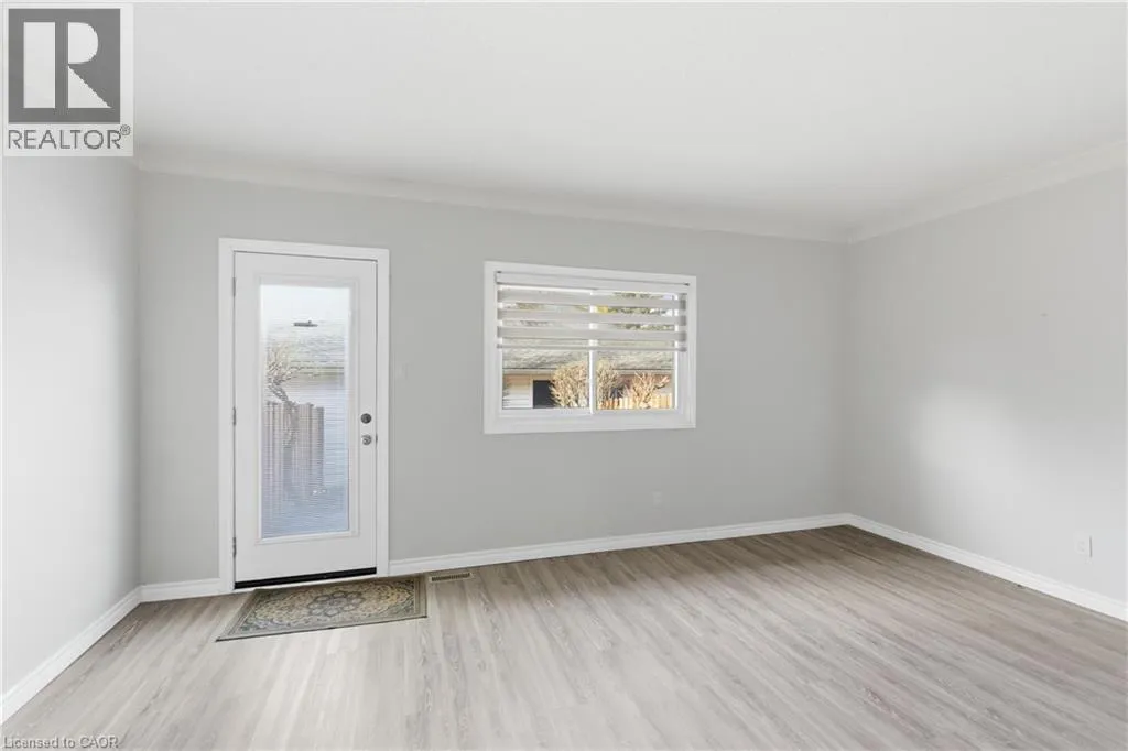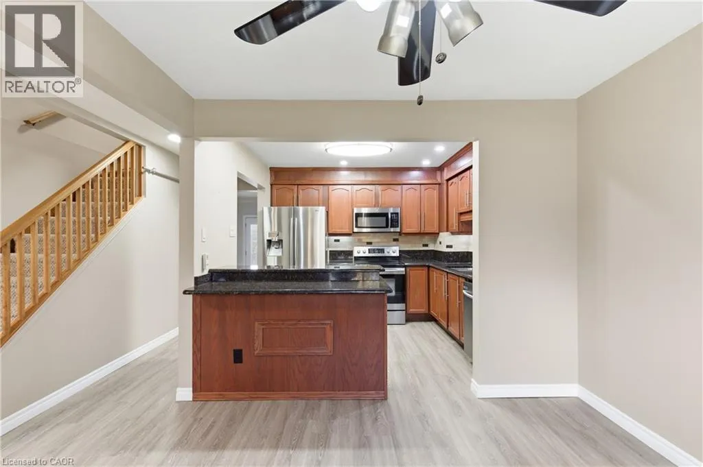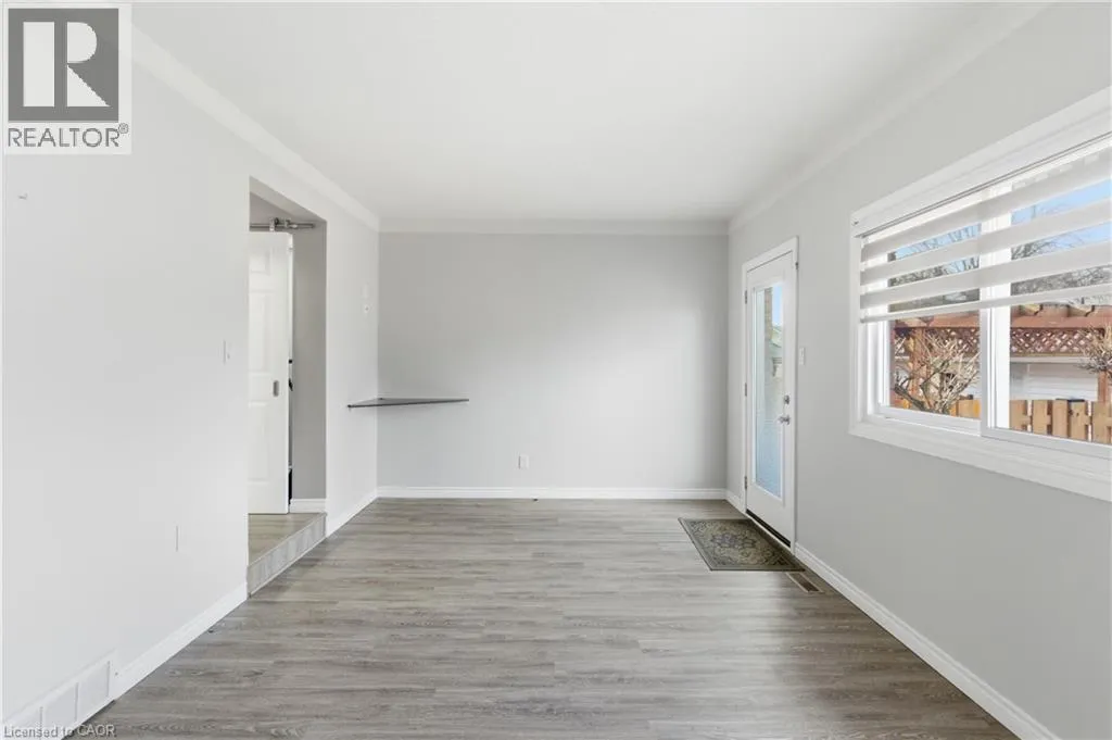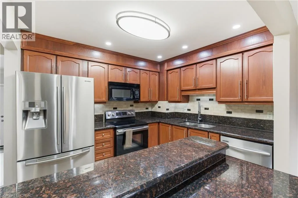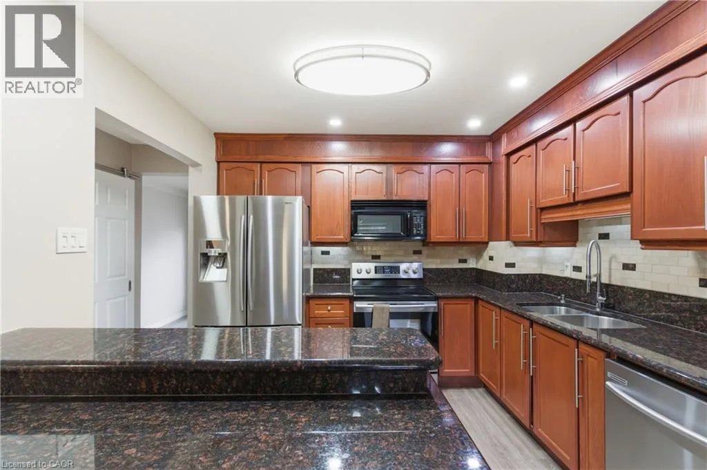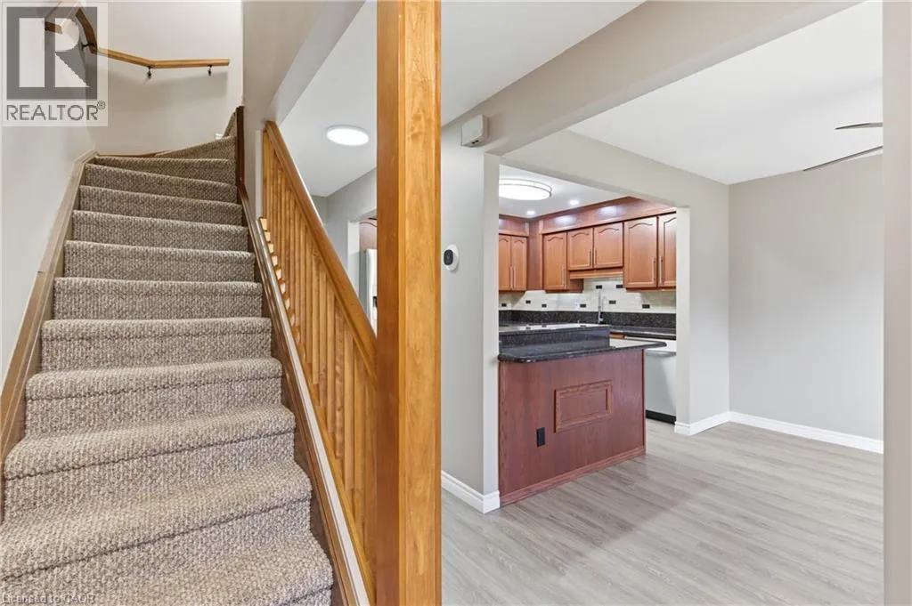 From Maple Ave to Denistoun St Welcome to Unit 2 at 185 Denistoun Street in Welland. This beautifully updated townhome offers peaceful living in a convenient location with low maintenance included. Step inside to an inviting open concept layout where the kitchen takes centre stage with self closing solid oak cabinets, custom granite counters, an island, undermount cabinet lighting, a garbage disposal and stainless steel appliances. The impressively spacious primary bedroom creates a true retreat, supported by two additional bedrooms and two well appointed bathrooms that offer comfort for everyday living. Outdoor space is a standout feature. The fully fenced backyard feels like a private oasis with a soothing water fountain and a 12x17ft stamped concrete patio that is perfect for quiet mornings or relaxed evenings. Every window features custom roller blinds, adding both style and function. The 17x18x8ft detached garage with hydro and a drink fridge provides excellent storage or hobby space. Snow removal and grass cutting are included, creating a lifestyle focused on ease. You are within walking distance to downtown, the tennis club, the Welland Recreational Canal, groceries, parks and dining. Ideal for a couple or a retired pair seeking comfort, convenience and tranquility. (id:27476)