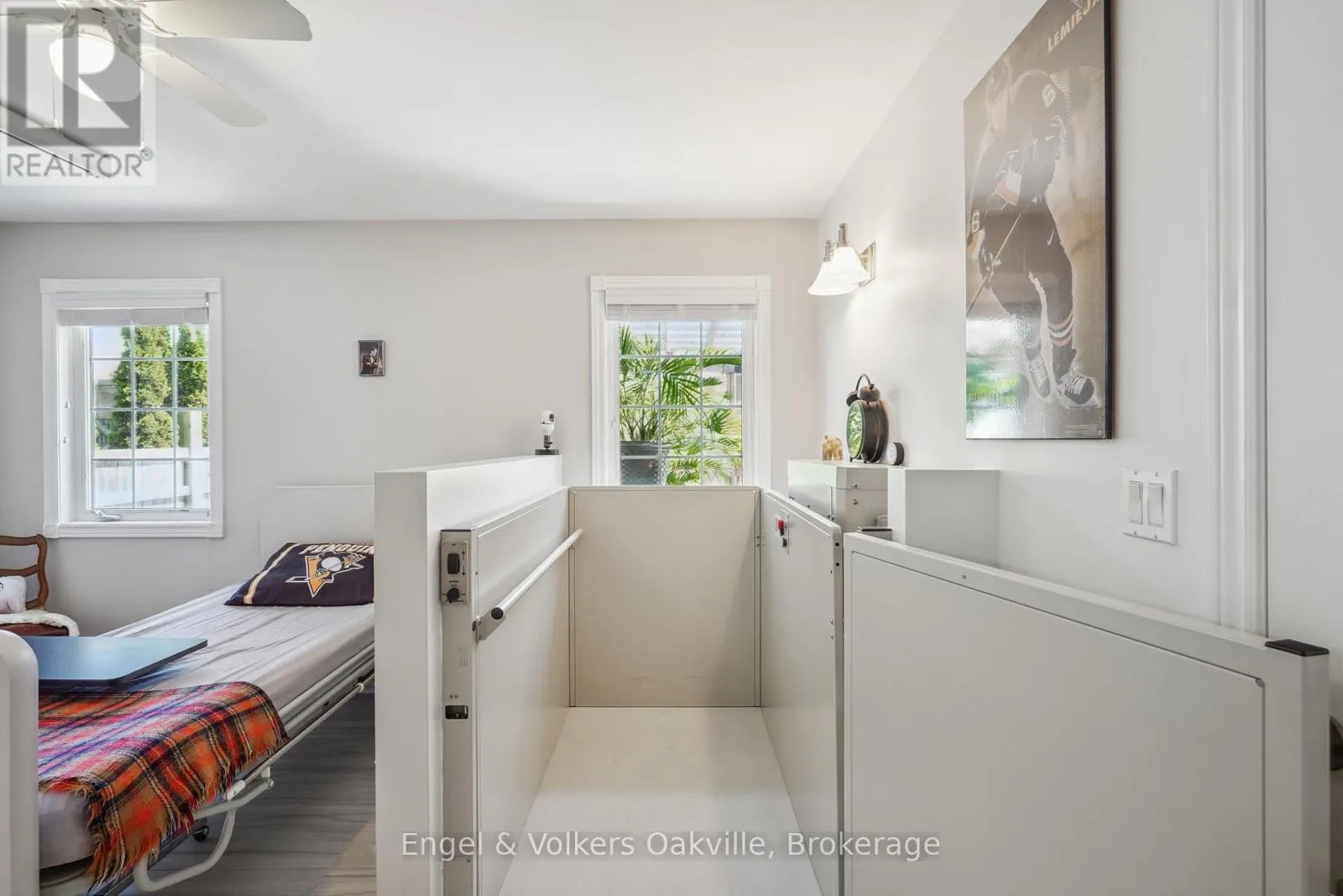 Fitch & Pelham Turn-Key Wheelchair Accessible Bungalow with Zero-Grade Entry & Elevator Shaft Featuring Custom Bruno Lift. Welcome to this impeccably maintained, fully accessible bungalow offering over 1,660 sq. ft. of main-floor living, plus an additional 1,619 sq. ft. in the fully finished lower level with its own separate custom walk-up entrance-perfect for an in-law suite, rental opportunity, or growing family. Step through the front door into a bright, open-concept living and dining area with vaulted ceilings and wood beams, flooded with natural light from oversized windows. The main floor provides three generous bedrooms, including one with a custom elevator/lift with direct access to the lower level, waterproof flooring, and two barrier-free full bathrooms. Beautiful hardwood floors run throughout, and the convenient main-floor laundry room offers direct access to the garage. The chef's kitchen impresses with a professional Nella industrial gas stove, granite counters, stainless steel appliances, and a walkout to your backyard oasis, complete with an oversized deck and gas BBQ hookup-ideal for entertaining.The fully finished lower level extends the living space with a full second kitchen, an oversized bedroom, a large family room, an expansive bathroom, ample storage, and a custom double-door walk-up leading to the backyard. Extensive upgrades include professional landscaping, concrete ramps and walkways, armour-stone walls, and a backyard shed. Major updates: Exterior siding (2018), Roof (2023), Fence (2023), A/C (2025). Follow your Dream, Home. (id:27476)