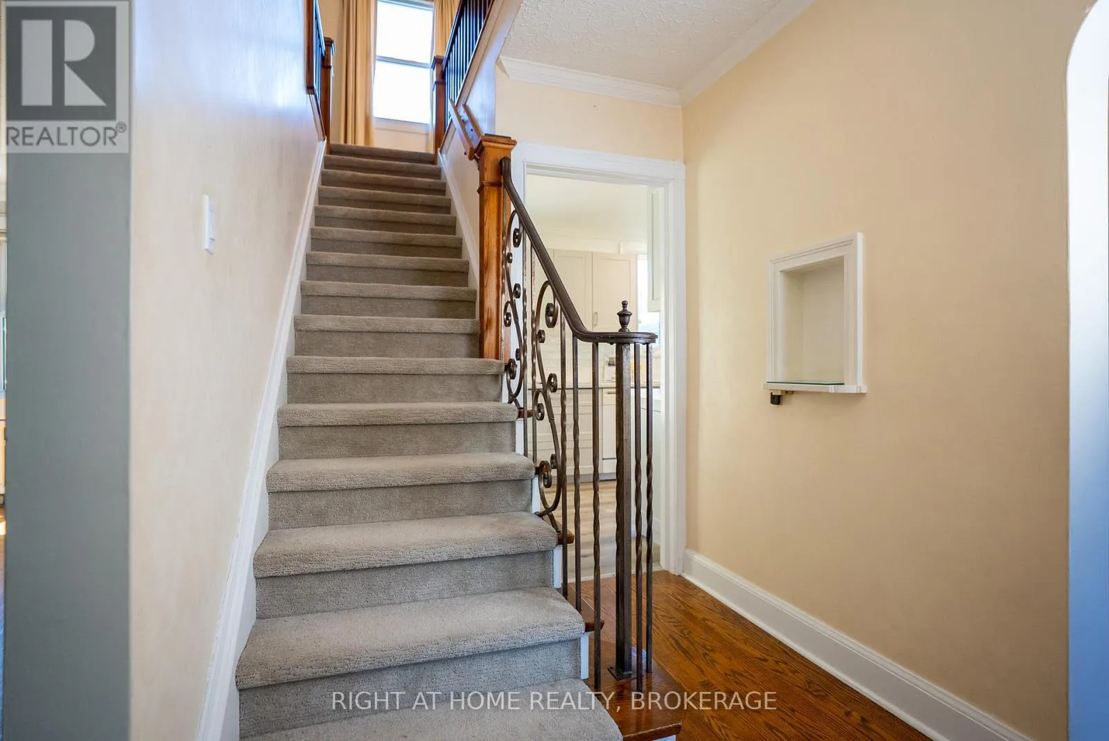 Cross Streets: Thorold St & Niagara St. ** Directions: From Niagara Street, turn West on Thorold Road. Turn South onto Edgar Street. House is approximately .5 km. Home is on the Right. Welcome to this beautifully maintained two-story home that perfectly balances timeless charm with modern comfort all in one of Welland's most desirable neighborhoods. Step through the front door into a spacious, sunlit foyer, where refinished herringbone hardwood floors, Art Deco trim, and a classic center-hall staircase set a tone of warmth and elegance. The bright living room features windows on three sides, filling the space with natural light, while the formal dining room with stained glass details is ideal for family dinners and entertaining. At the back of the home, the brand-new kitchen (2024) impresses with light gray cabinetry, white subway tile, and a large pantry all designed for todays lifestyle. Upstairs, you'll find three inviting bedrooms, including two large rooms that easily accommodate king-sized beds. A vintage four-piece bathroom showcases the homes original yellow-and-black tilework, adding a touch of retro charm. The finished lower level includes a cozy rec room, a two-piece bath, and a utility/laundry area, offering flexible space for relaxation or hobbies. Outside, enjoy a covered front porch perfect for morning coffee, a detached garage, and a new wooden shed (2022) for storage. Just steps away, Chippawa Park offers green space, gardens, sports courts, a splash pad, playgrounds, a lively community hub, the perfect setting for an active, family-friendly lifestyle. Recent Updates: Brand-new kitchen (2024), Upper-level flooring (2023), Updated electrical (2018), Natural gas boiler (2017), Freshly painted inside and out, Detached garage & a new storage shed (2022), This move-in-ready home blends history, comfort, and location a true gem in Chippawa Park. (id:27476)