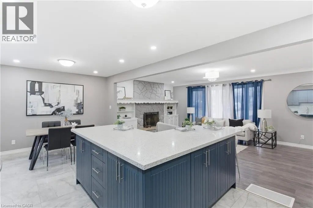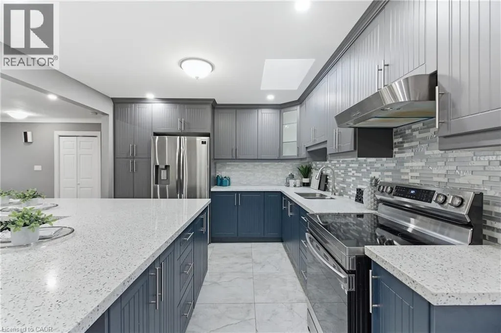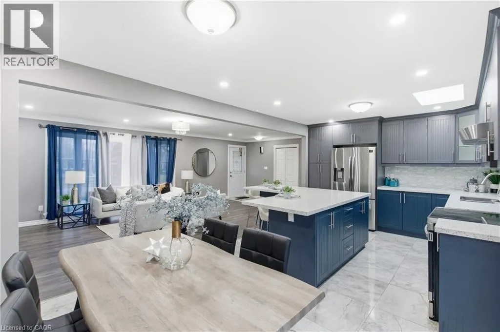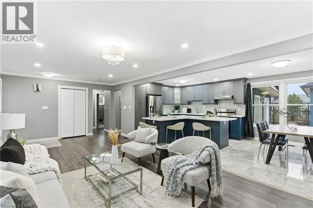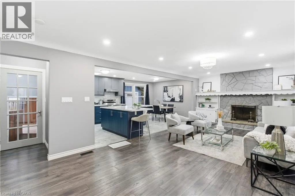 First Ave to Northgate to Colonial Welcome to 22 Colonial Street, a beautifully renovated 5-bedroom, 2-bath bungalow in a quiet, family-friendly pocket of North Welland. Just minutes from Niagara College, the Seaway Mall, and major amenities, this home combines convenience with serene suburban living. Inside, the open-concept main floor offers a bright and welcoming layout perfect for gatherings and everyday comfort. The spacious living area features a striking stone fireplace and large front window, flowing seamlessly into the modern kitchen with its stylish cabinetry, centre island, and abundant workspace. A stunning four-season sunroom with a circular skylight brings in natural light year-round and offers easy access to the fenced backyard, ideal for relaxing or entertaining. The fully finished lower level provides a complete in-law suite with its own kitchen, two bedrooms, and generous storage space, making it perfect for multigenerational families or added income potential. Additional features include a detached heated and insulated garage, new windows and roof (2023), and thoughtful upgrades throughout. A true move-in ready home that blends style, flexibility, and value. (id:27476)