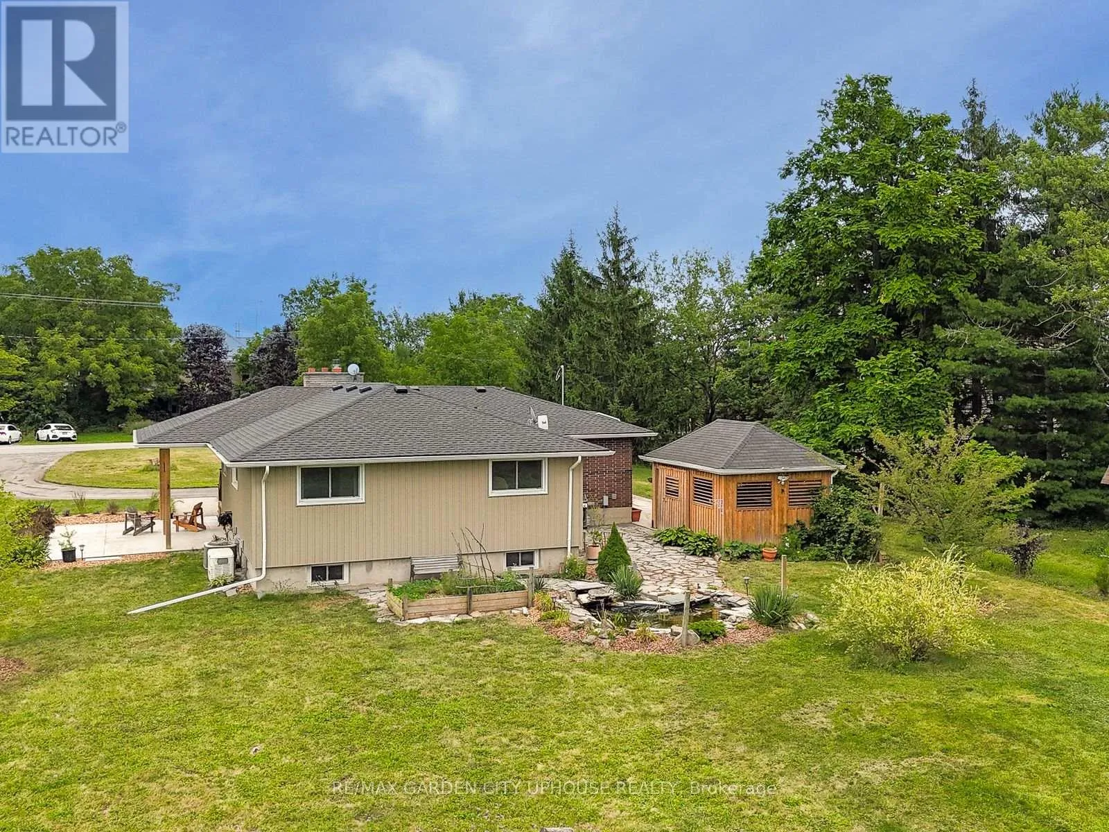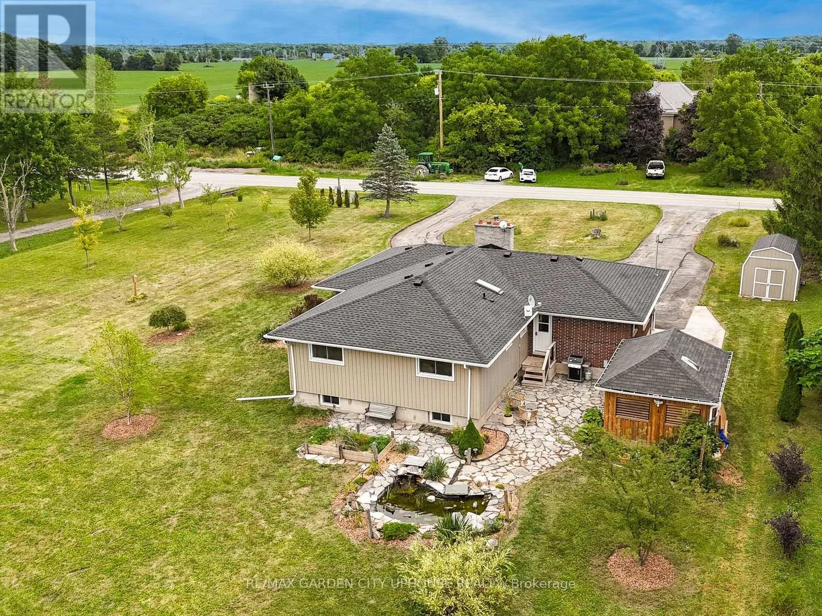 Cross Streets: SCHISLER AND DARBY. ** Directions: EAST MAIN STREET TO DARBY. Welcome to 373 Darby Road, a charming 2+1 bedroom bungalow set on 3 acres of peaceful land, perfect for a quiet country lifestyle. Fully renovated in 2017, this home is conveniently located near all of life's conveniences just a short drive away, including the new hospital. The property features a large circular driveway and a welcoming concrete patio, partially covered for relaxing outdoors. Inside, the living room has a gas fireplace with a brick hearth, connecting seamlessly to the dining area and a modern kitchen. The kitchen includes a skylight, quartz countertops, a spacious island, and ample storage. Down the hallway, you'll find a bedroom, a 4-piece bathroom, and a primary suite with a walk-through closet and a 4-piece ensuite featuring a glass shower and heated floors. The main floor also offers a laundry room and direct access to the single-car garage. The basement includes a finished recreation room, a third bedroom, and plenty of flexible space for a home office, gym, or hobby area. Outside, the backyard offers a flagstone patio, a serene pond with a water feature, well-kept gardens, and a wooded landscape. A hot tub sits in a gazebo with a skylight and jalousie windows, ideal for relaxing year-round, with the house just steps away. There's also a second concrete patio, and a firepit area for quiet evenings under the stars. Enjoy unobstructed sunsets all year round. The home is equipped with practical upgrades, including 50-year shingles (2022), a furnace and AC (2018), a 10x12 ft shed (2020), a generator, sump pump, 200-amp electrical service, and new windows and doors (2019). This is a warm, inviting home ready for you to make it your own. (id:27476)