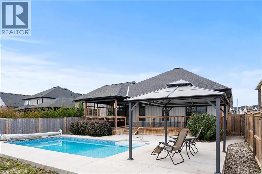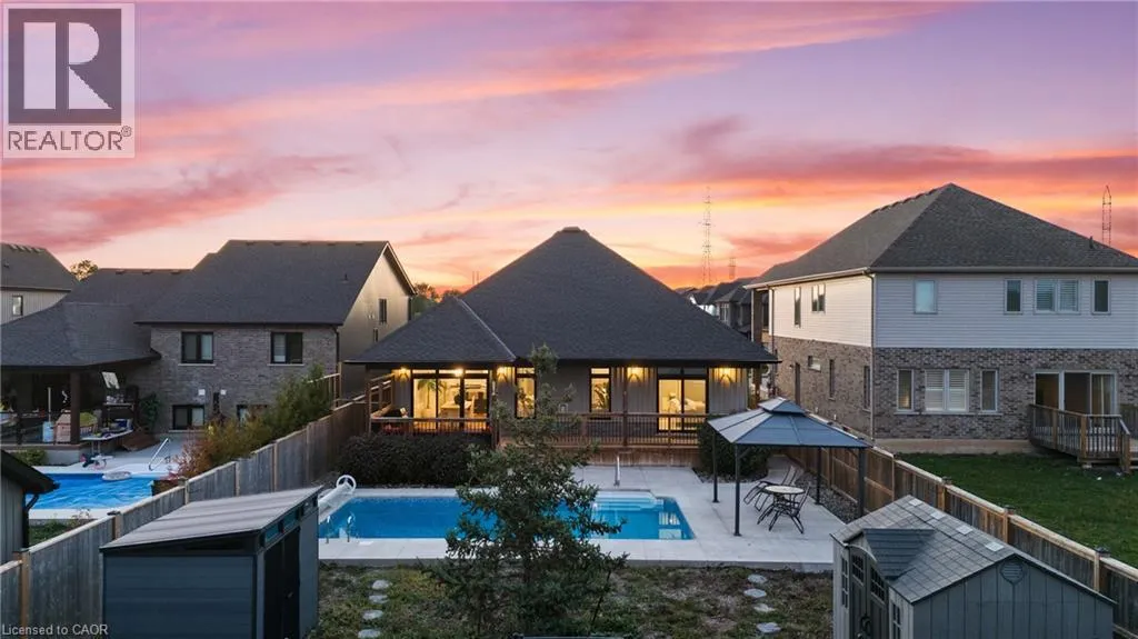 Memorial Park Dr to Quebec Ave to 212 Viger Dr Dream Home with Breathtaking Views! Custom-built 3,200 sq ft, bungalow, high-end finishes, and a backyard perfect for summer days & evening gatherings. This gorgeous custom-built bungalow backs onto a serene ravine and the Welland Canal, offering a backyard paradise complete with a heated, salt-water in-ground pool. Every detail of this home exudes quality, from the hand-scraped hickory hardwood floors to the high-end finishes throughout. Step inside to discover 9-foot ceilings, abundant pot lighting, and natural sunlight that fills the main floor. The chefâs kitchen is a true delight, featuring a pot filler, ample counter space, generous storage, and a large granite island perfect for gathering family and friends. The open-concept living and dining room is warm and inviting, boasting a cozy gas fireplace and stylish wood-plank feature wall. Slide open the doors and step onto your private backyard oasis. Entertain on the expansive deck and patio, relax under the shaded gazebo, or take a refreshing dip in your heated poolâall while soaking in the beautiful canal views. Retreat to the luxurious primary suite, complete with sliding doors to a covered deck, a walk-in closet, and a spa-inspired ensuite featuring a soaker tub, large glass shower, and floating double-sink vanity with quartz counters. The professionally finished lower level adds extra living space, including a bedroom with a walk-in closet, a 3-piece bathroom, and a spacious recreation room with another gas fireplaceâperfect for family fun or hosting guests. Additional highlights include main floor laundry and a low-maintenance exterior. Located in a vibrant Welland community with farmersâ markets, annual festivals, parks, and endless outdoor activities, this home truly has it all. Donât miss the chance to make this stunning property your forever home! (id:27476)