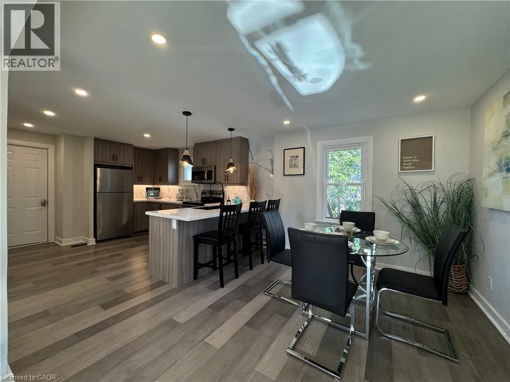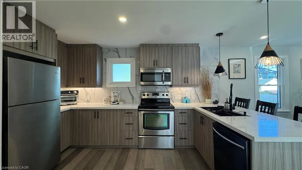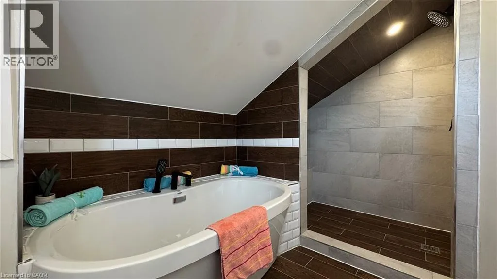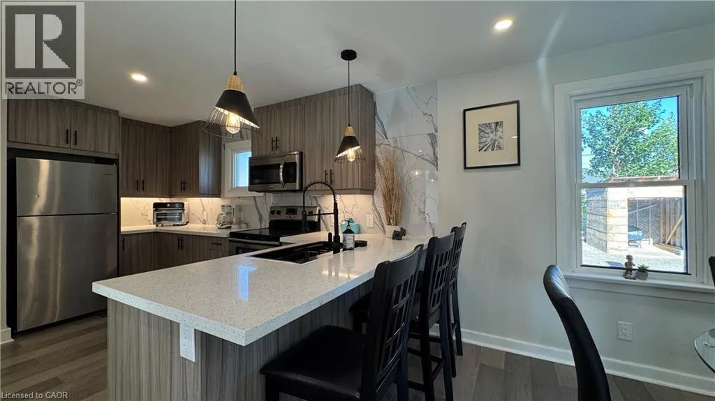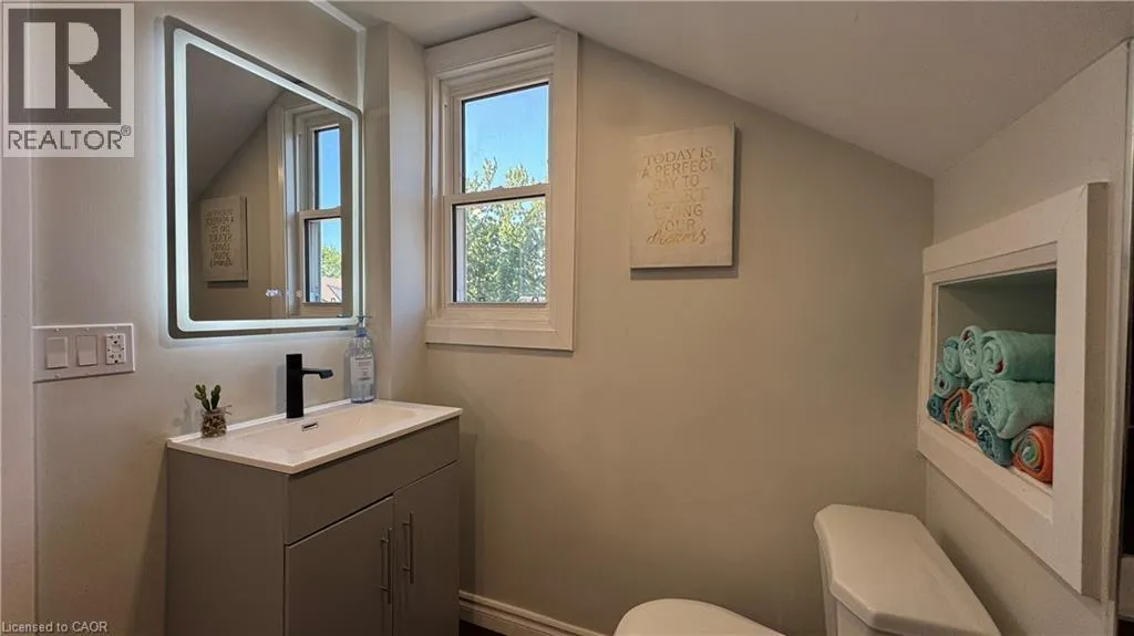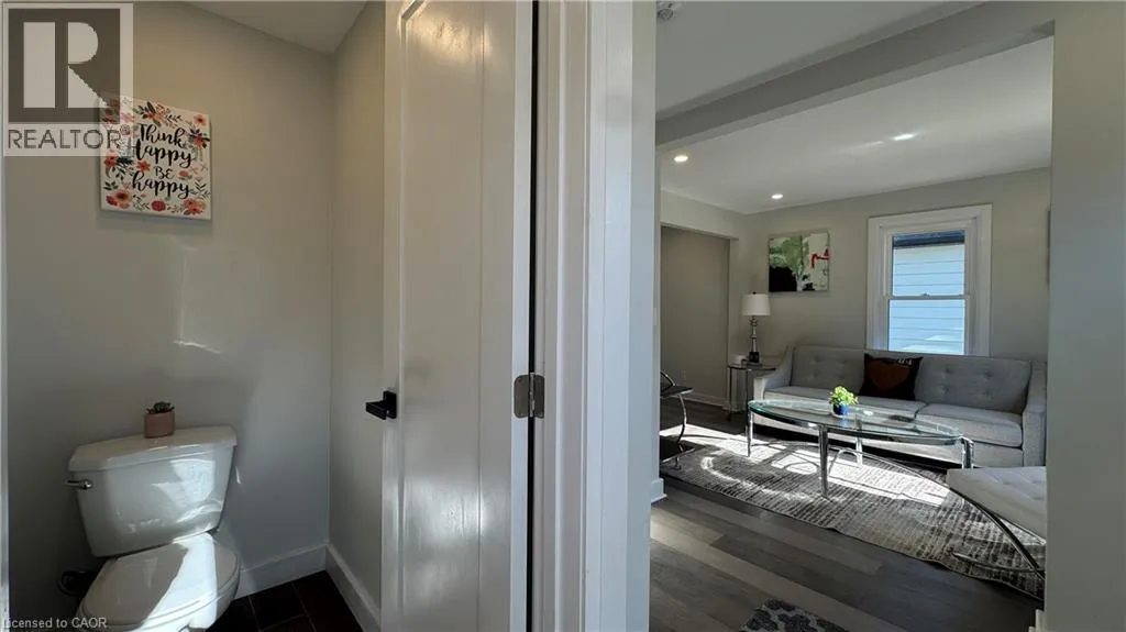 Well-maintained and thoughtfully updated 1.5-storey detached home in a convenient central Welland location. This property offers approximately 1,172 sq ft above grade with three bedrooms and two bathrooms, an open-concept main floor, modern kitchen, updated bathrooms, and durable metal roof. The full unfinished basement has been professionally waterproofed, providing excellent storage and future potential. Situated on a 50 x 100 ft lot with a private yard, deck, storage shed, and parking for three vehicles. Close to downtown, transit, schools, and everyday amenities. A solid property offering flexibility for a variety of buyers. (id:27476)