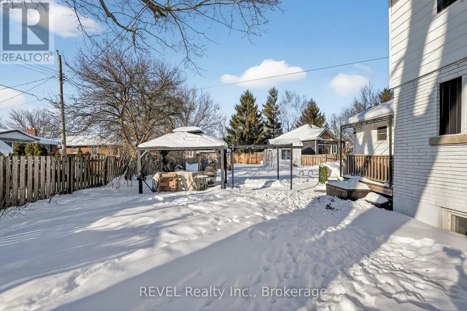 Cross Streets: First Ave/Laughlin Ave/Place. ** Directions: First Ave to Laughlin Place (Not Laughlin Ave). This home sets a new standard for the ideal family residence nestled in a neighbourhood you'll love! Located in the esteemed Chippewa Park area, this beautifully updated 4+1 bed, 3 bath estate home is nestled in a secluded cul-de-sac directly across from the park. Enjoy resort-style living with a heated inground pool- ready for swimming as early as Spring! Pool upgrades in 2023/2024 include a new liner, heater, pump, filter, and skimmer. The backyard features an exceptionally large lot (that spans the three neighbouring backyards), with two steel gazebos, canvas pergola, bonfire pit, flexible outdoor kitchen space, and mature trees for privacy. Original hardwood floors and timeless character have been preserved, enhanced with extensive professional renovations inside, outside, and across the grounds over the past 3 years. The home offers bright bedrooms and living spaces, renovated baths, an eat-in kitchen, and large living and dining rooms. The dining room can be converted to a fifth bedroom (with minor modifications)with existing 2-piece ensuite , or continue as dining/(flex space-family room/office), with walkout to deck and seasonally covered entertaining area. The lower level offers storage, a separate entrance, dry kitchenette, renovated 3-piece bath, and large bachelor suite, ideal for guests or extended family. Additional highlights include pull-down attic storage, 2023/2024 - new shingles, boiler, on-demand hot water tank, stained glass front and garage man doors, window glass replacement, some flooring, lighting, and paint, washer/dryer, kitchen fridge, stamped concrete walkway, and levelled front lawn with new sod. A rare opportunity to own a character-rich estate with modern luxury, exceptional outdoor amenities in the desirable Chippewa Park location! Huge Lot size (As per GeoWarehouse) 186.46 ft x 83.65 ft x 60.15 ft x 153.49 ft. (id:27476)