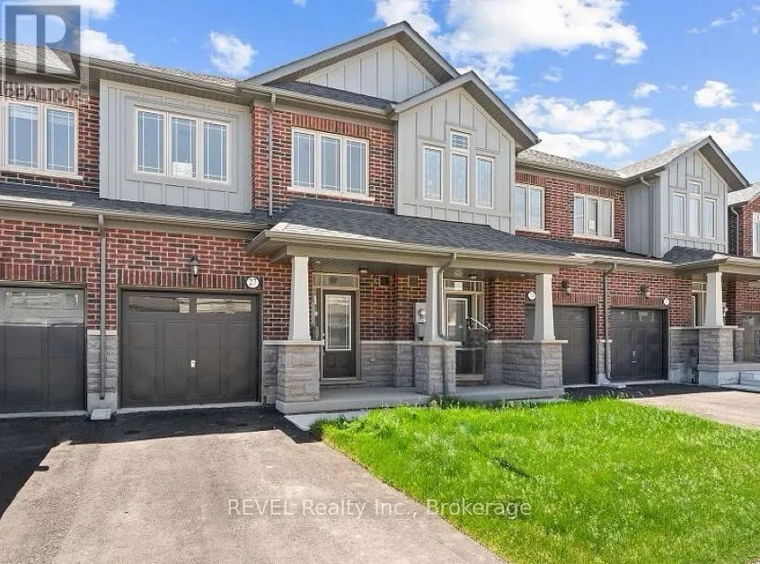 Cross Streets: HWY 406 and Daimler Parkway. ** Directions: Between Midland PL and Shoreview Drive. This pristine, two-year-old freehold townhouse in the Hunter's Pointe community offers a clean, move-in-ready layout with 3 bedrooms and 2.5 bathrooms. The home features a stone-covered front porch and an open-concept main floor highlighted by a stylish kitchen with quartz countertops and newer stainless steel appliances. Large windows throughout provide plenty of natural light, and solid wood stairs lead to the second level where you'll find a spacious primary bedroom with a walk-in closet and a 3-piece ensuite. Functional additions include interior garage access and a large, unfinished basement with laundry and a bathroom rough-in, offering great potential for future storage or living space. Located near the Welland Canal, the property is steps away from parks and trails while remaining conveniently close to the Seaway Mall, groceries, golf courses, and Highway 406 for easy commuting. (id:27476)