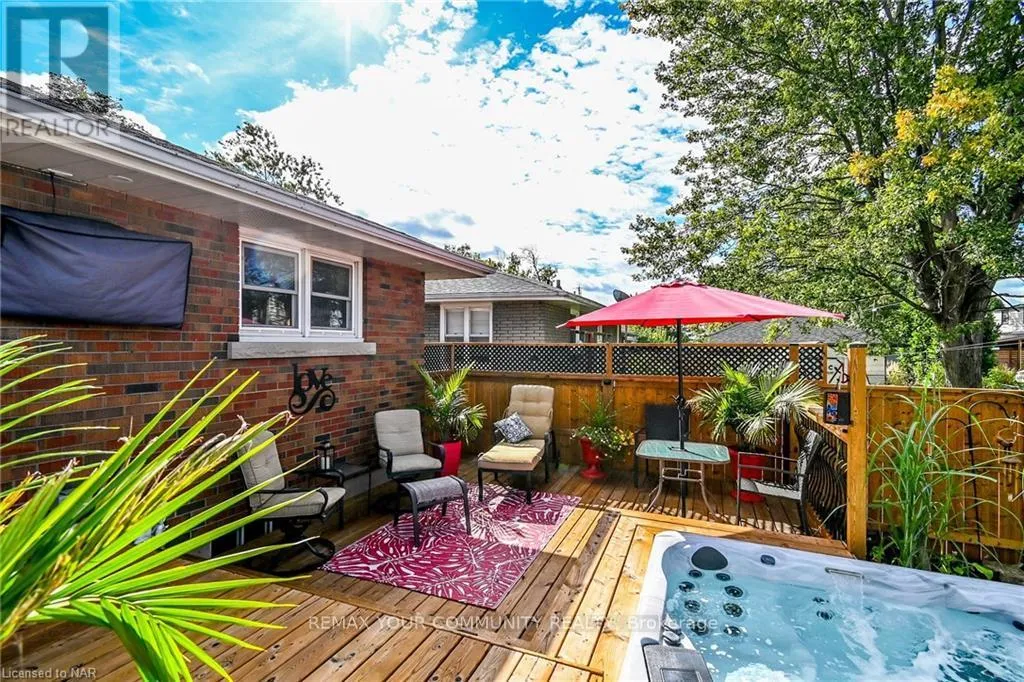 East Main Street Welcome to this delightful 3-bedroom brick bungalow situated in the highly sought-after Lincoln/Crowland neighborhood. Perfectly blending modern updates with retro charm, this spacious home features a brand-new eat-in kitchen with ample storage, stylish new laminate flooring, and a freshly renovated bathroom. The true showstopper is the $30,000 professional backyard transformation. Designed for ultimate relaxation and entertaining, the fully fenced yard features a two-tier wooden deck, a concrete patio (2019), and a premium 6-person hot tub. Enjoy three-season lounging in the gazebo/solarium equipped with removable screens. Recent Updates: New paved driveway (2023), Roof (2018), HWT (2018), and several new windows/doors (2020).Convenience: Attached garage with inside entry and minutes from Hwy 406. (id:27476)