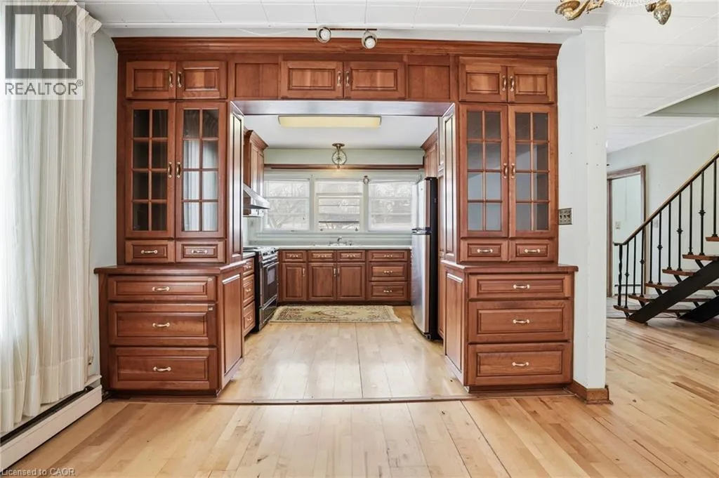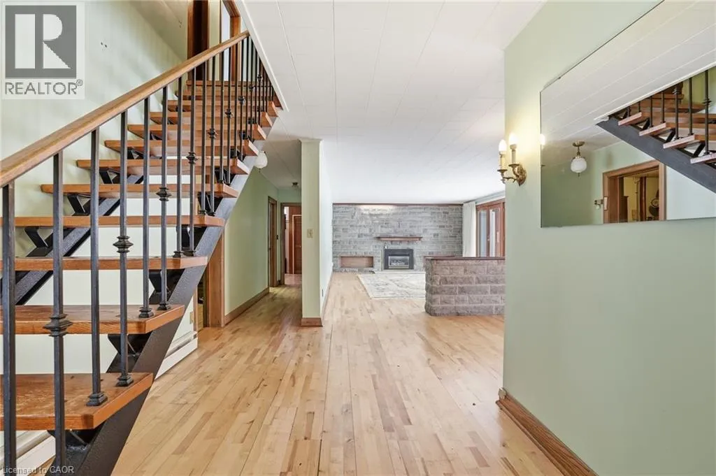 Prince Charles Drive to First Avenue Positioned on a prominent corner lot directly across the road from the Welland River, this 1.5-storey home offers flexibility, character, and future potential. The main level features hardwood flooring throughout, two convenient bedrooms, and a full 4-piece bath ideal for those seeking accessible main-floor living. The living space is anchored by a striking stone fireplace wall and an impressive wall of wood-framed glass doors that flood the home with natural light. The kitchen is finished with quality solid wood cabinetry and generous built-in storage, providing a functional layout that can be enjoyed or thoughtfully updated over time. A custom open-rise staircase adds architectural interest and leads to the upper level, enhancing the home's distinctive design. Set on approximately half an acre at a highly visible corner location, the property also presents compelling redevelopment potential. Pre-consultation discussions with the City of Welland have explored higher-density residential possibilities, making this an attractive opportunity for investors or developers looking to capitalize on a river-adjacent site. Pre-consultation notes can be provided. Whether you're looking to personalize a solid, character-filled home or explore future development opportunities, this beautiful home offers versatility in a growing Welland corridor. (id:27476)