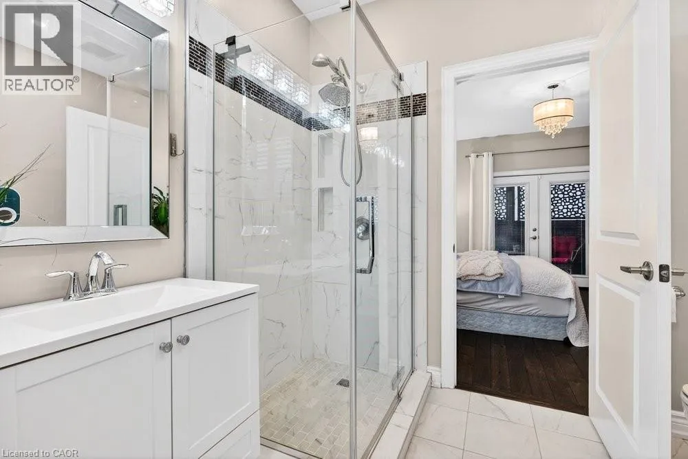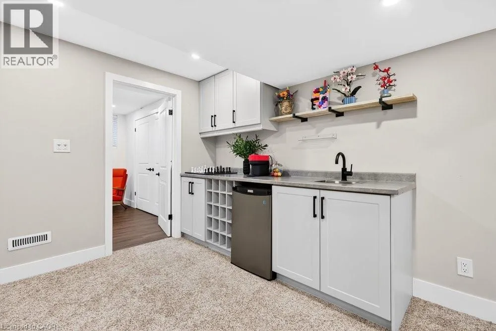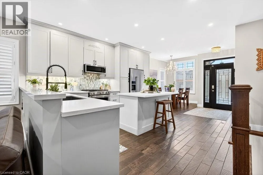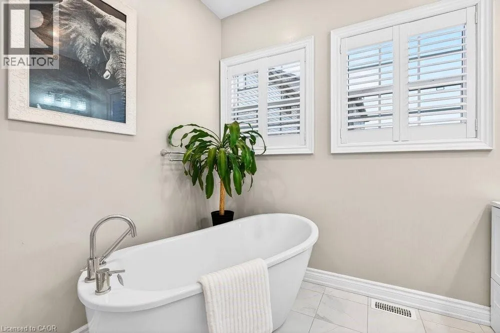 Webber Rd to Pelham Rd S, right onto Heron St, left onto Monarch St Impeccable 3+1 BR, 3 bath bungalow offering over 1400 sq ft plus a fully finished basement this 8 year old Mountainview built home located on the west side of Welland with easy access to Webber Rd for the commuter, is not to be missed! Gorgeous finishes throughout including the custom kitchen with extended height & pantry cabinets, quartz counters, & island with breakfast bar; engineered hardwood floors throughout the main level; 9' main floor ceilings; primary with a beautiful ensuite that features a stand alone soaker tub, separate shower & double sinks; the primary also hosts a walk out to a private deck that's perfect for your morning coffee or nightcap. The lower level rivals the main floor finishings with recent carpet; wet bar/kitchenette; large bedroom; family room built-ins flanking the shiplap surround for the electric fireplace; built in speakers; tons of pot lights and a laundry room that might let you actually enjoy doing laundry! The exterior does not disappoint with the brick and stone façade, concrete double drive, inground sprinklers, the back offers a tiered deck that leads to the hot tub and lower stamped concrete patio in the fully fenced backyard. This is one to truly experience live! (id:27476)