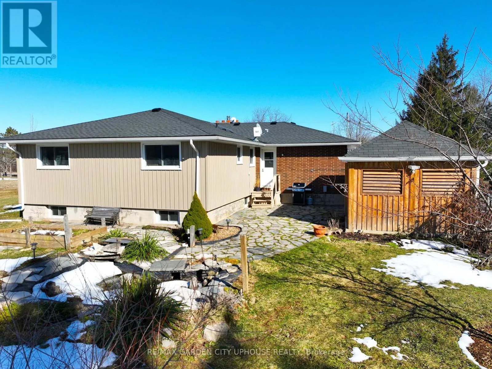 SCHISLER AND DARBY Welcome to 373 Darby Road, a charming 2+1 bedroom bungalow set on 3 acres of peaceful land, perfect for a quiet country lifestyle. Fully renovated in 2017, this home is conveniently located near all of life's conveniences just a short drive away, including the new hospital. The property features a large circular driveway and a welcoming concrete patio, partially covered for relaxing outdoors. Inside, the living room has a gas fireplace with a brick hearth, connecting seamlessly to the dining area and a modern kitchen. The kitchen includes a skylight, quartz countertops, a spacious island, and ample storage. Down the hallway, you'll find a bedroom, a 4-piece bathroom, and a primary suite with a walk-through closet and a 4-piece ensuite featuring a glass shower and heated floors. The main floor also offers a laundry room and direct access to the single-car garage. The basement includes a finished recreation room, a third bedroom, and plenty of flexible space for a home office, gym, or hobby area. Outside, the backyard offers a flagstone patio, a serene pond with a water feature, well-kept gardens, and a wooded landscape. A hot tub sits in a gazebo with a skylight and jalousie windows, ideal for relaxing year-round, with the house just steps away. There's also a second concrete patio, and a firepit area for quiet evenings under the stars. Enjoy unobstructed sunsets all year round. The home is equipped with practical upgrades, including 50-year shingles (2022), a furnace and AC (2018), a 10x12 ft shed (2020), a generator, sump pump, 200-amp electrical service, and new windows and doors (2019). This is a warm, inviting home ready for you to make it your own. (id:27476)
