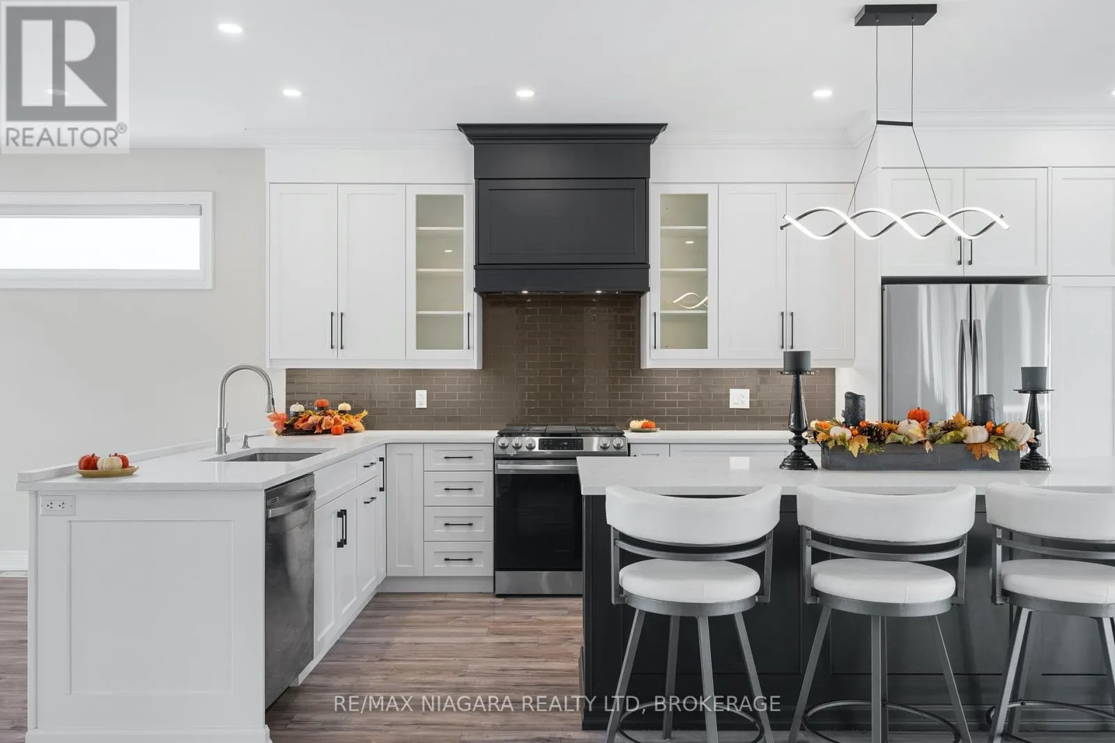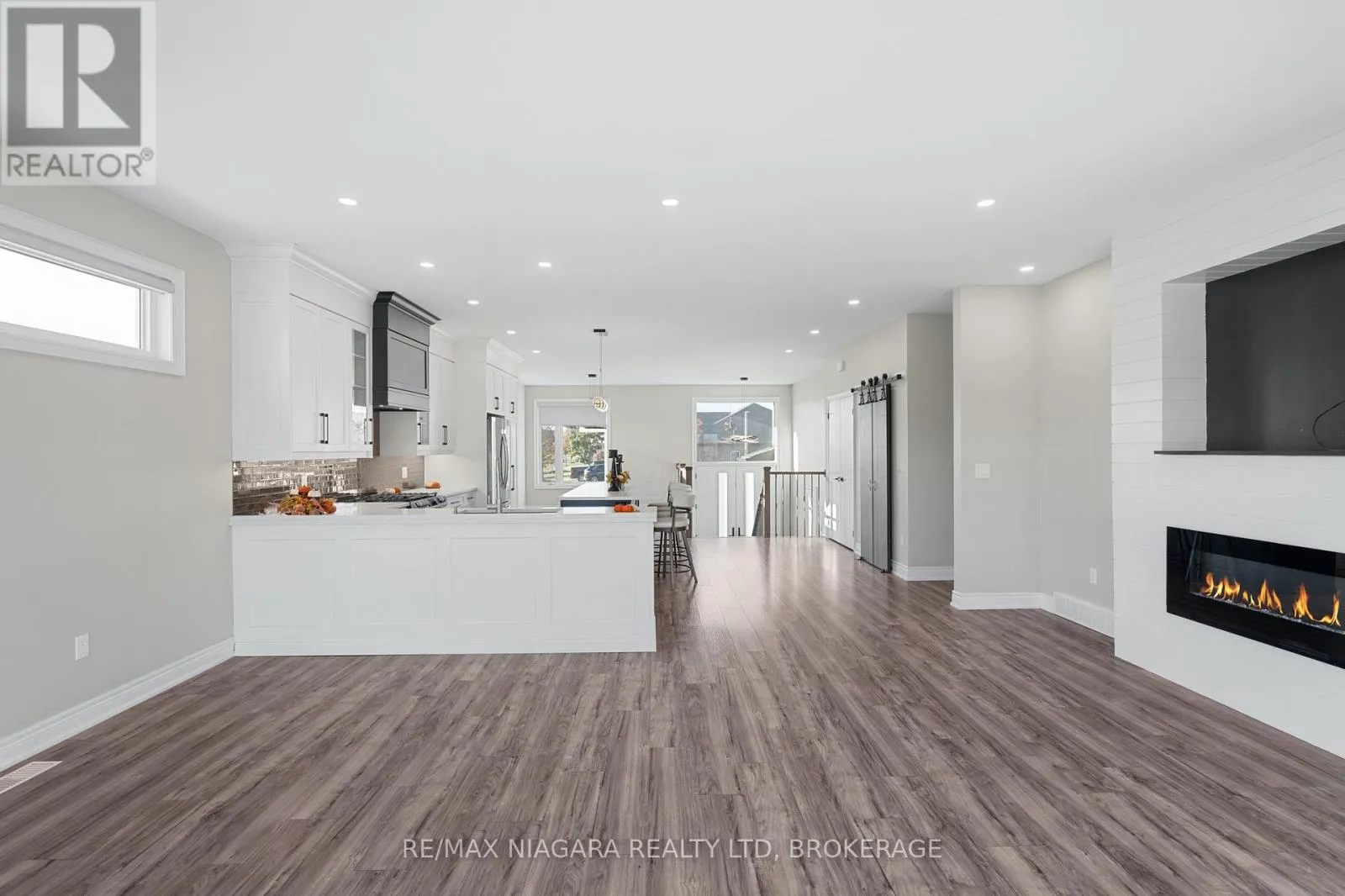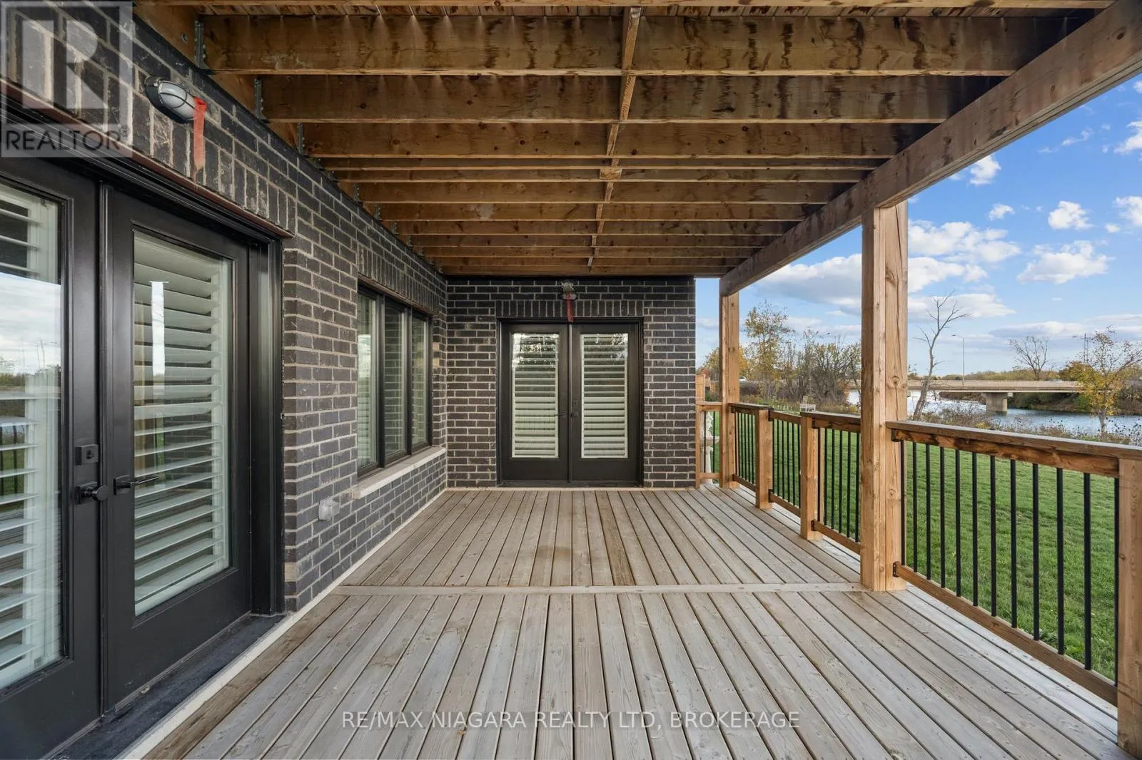 Cross Streets: Webber/ Gaiser. ** Directions: Webber Road/Lincoln St. to Colbeck. Luxury waterfront living on the Welland River. This exceptional raised bungalow offers 2+2 bedrooms, 2+1 bathrooms, and over 2,600 sq. ft. of beautifully finished living space thoughtfully designed to accommodate multi-generational living while maintaining comfort and style.The bright, open-concept main level features a custom kitchen with quartz island, a spacious great room with a wall-mounted fireplace, and direct access to a covered deck overlooking a stunning riverbend view. The primary suite provides a private retreat with a spa-inspired ensuite, complete with a walk-in glass and tile shower and a freestanding soaker tub. The fully finished walkout lower level offers a self-contained living area with a full kitchen, two bedrooms, a 3-piece bathroom, and a large recreation space with direct access to the waterfront patio-ideal for extended family or guests. Elegant finishes throughout - rare opportunity to enjoy modern living in a tranquil waterfront setting in Niagara. (id:27476)