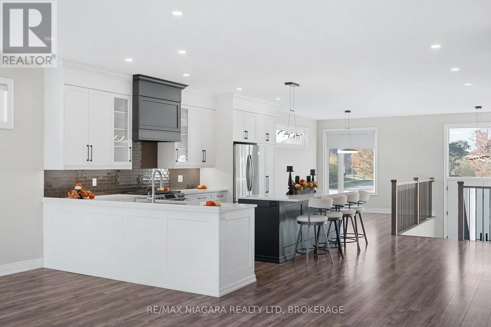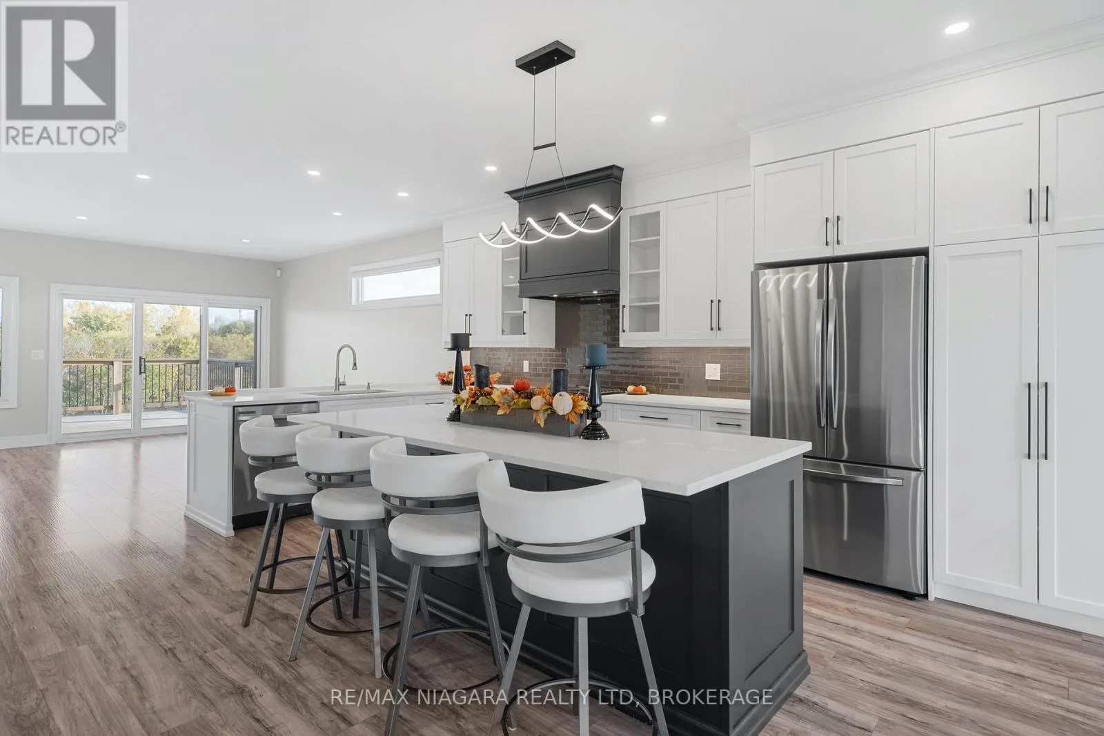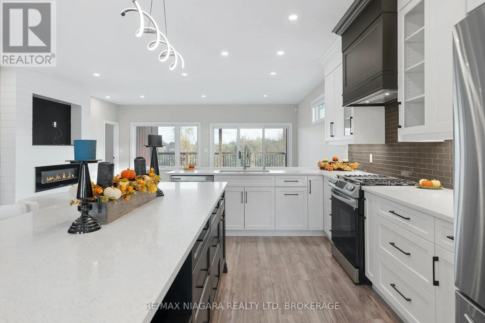 Cross Streets: Webber/ Gaiser. ** Directions: Webber Road/Lincoln St. to Colbeck. Luxury waterfront living on the Welland River. This exceptional raised bungalow offers 2+2 bedrooms, 2+1 bathrooms, and over 2,600 sq. ft. of beautifully finished living space thoughtfully designed to accommodate multi-generational living while maintaining comfort and style.The bright, open-concept main level features a custom kitchen with quartz island, a spacious great room with a wall-mounted fireplace, and direct access to a covered deck overlooking a stunning riverbend view. The primary suite provides a private retreat with a spa-inspired ensuite, complete with a walk-in glass and tile shower and a freestanding soaker tub. The fully finished walkout lower level offers a self-contained living area with a full kitchen, two bedrooms, a 3-piece bathroom, and a large recreation space with direct access to the waterfront patio-ideal for extended family or guests. Elegant finishes throughout - rare opportunity to enjoy modern living in a tranquil waterfront setting in Niagara. (id:27476)