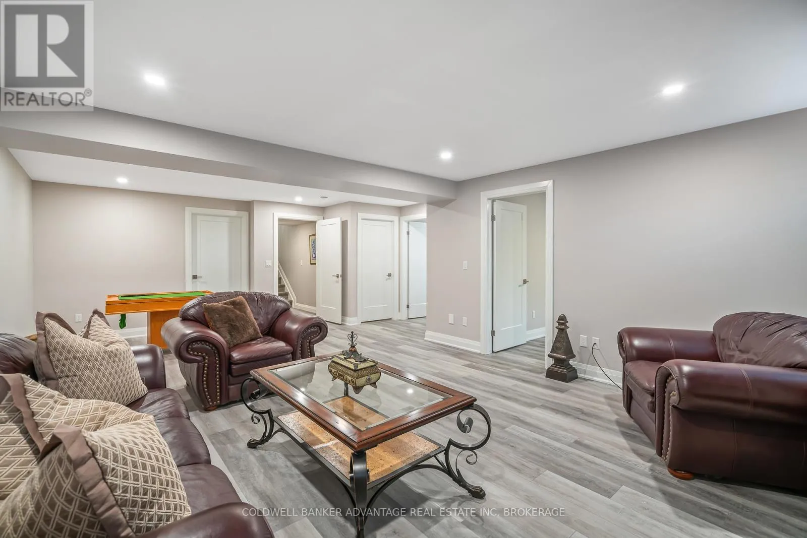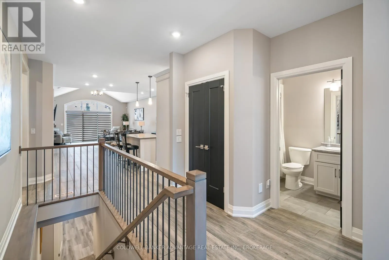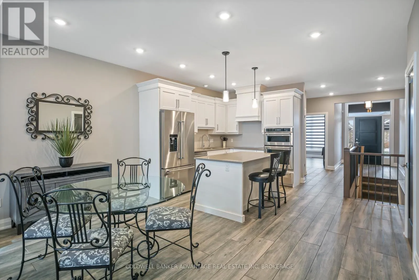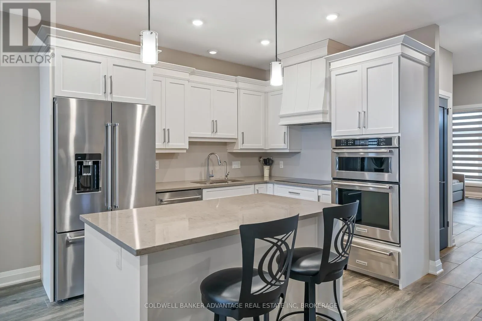 Cross Streets: Daimler Pkwy & Hwy 406. ** Directions: Daimler Pkwy , left on Old course Trail, Right on Carrick Trail. Luxurious Bungalow Townhouse offering approximately 1400 sq ft of refined main floor living & mostly finished Lower level. This elegantly appointed 2 bedroom design features 9' ceilings plus a dramatic vaulted ceiling in Great room highlighted by a stunning wall of windows overlooking the covered rear patio. The stylish kitchen is beautifully appointed w. custom cabinetry, large island, quartz countertops & SS KitchenAid appliances. The great room showcases cathedral ceilings, gas FP w/ beam mantle & triple patio doors that lead to the rear covered patio. The open concept layout seamlessly connects the kitchen, dining area & great room, creating an ideal space for both everyday living and entertaining. The primary suite offers a generous walk-in closet and an upscale 3pc ensuite w/ custom glass shower & double vanity w/ quartz countertop. Completing the main floor is a separate, self contained laundry room w/ custom cabinetry, 4pc 2nd bath and the second main floor bedroom conveniently located off the front foyer making it a fabulous potential office space. Premium finishes include custom window treatments, Engineered hardwood & ceramic floors, upgraded baseboard & trim & striking black interior doors. The mostly finished lower level expands the living space with a large Rec-room that features a large linear electric fireplace, a spacious 3rd bedroom, a 3pc bath w/ 5' acrylic shower and plenty of storage. A truly exceptional unit that offers luxury, comfort and thoughtful design throughout. Located in the Adult community known as "The Highlands", this Luchetta built home was completed in 2020. Residents enjoy access to the private clubhouse w/ indoor pool, hot tub, sauna & gym, along with the Tennis & Pickleball courts. The monthly fee of $300 also includes lawn cutting & snow removal, so just kick back & enjoy! (id:27476)