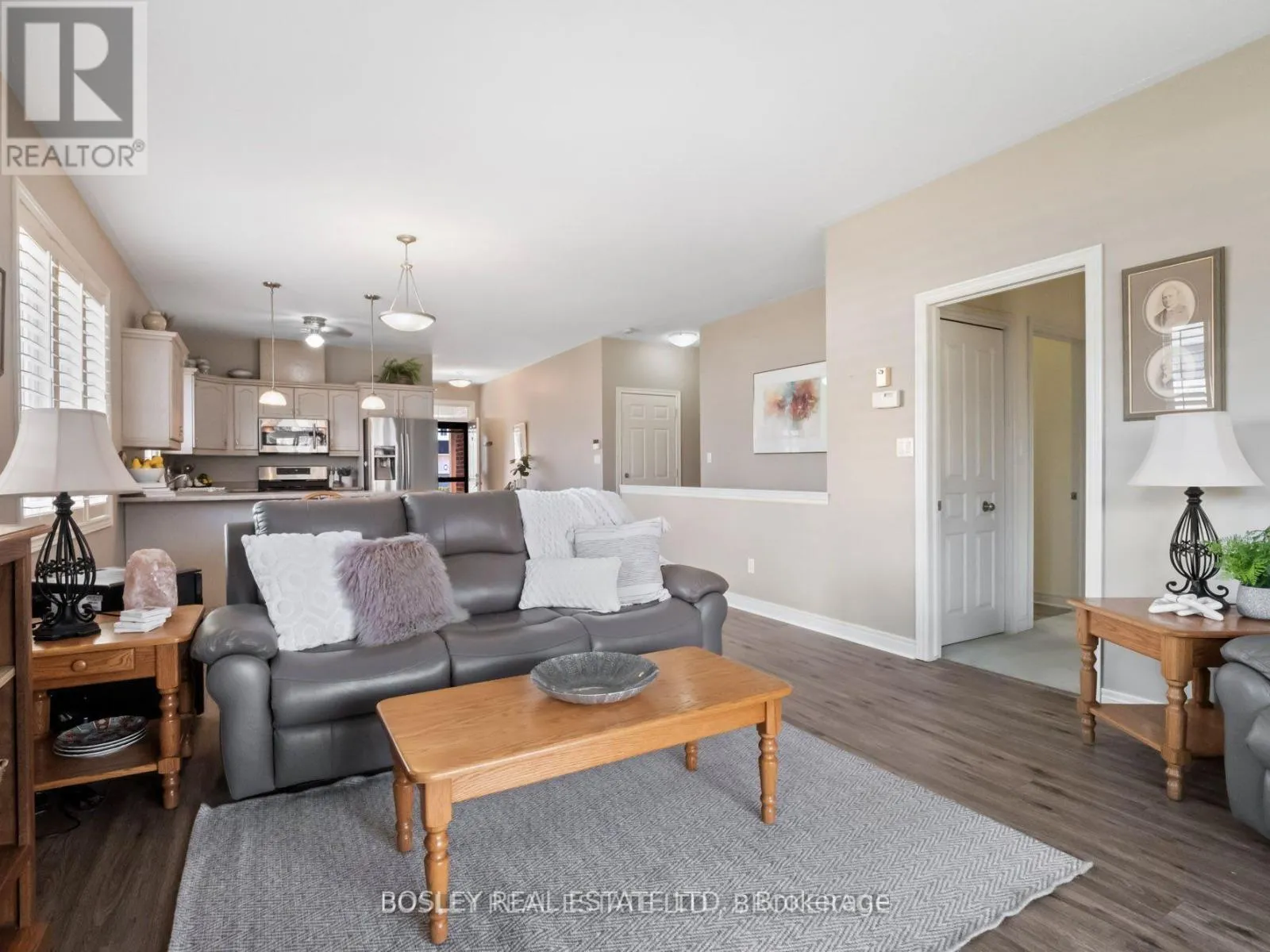 Cross Streets: Perth Trail & Old Course Trail. ** Directions: East side of Woodlawn to Daimler Pky, left on Perth Trail and left on Aaron Trail. This END UNIT Bungalow townhome is sure to impress, with nine foot ceilings and an open concept design. Situated in the relaxed community of 'The Highlands', this home offers approximately 1800 sqft of finished living space on both levels and is tastefully decorated in neutral tones. The space provides loads of natural light, California shutters and a large sliding door with easy access to the covered patio for outdoor living. The generously sized primary bedroom has a 4 piece ensuite, walk-in closet, as well as two more closets in this exclusive space. The second bedroom, with double closet can also be used as a sitting room or office workspace. A second main floor bathroom with shower is conveniently located next to the main floor laundry closet. Inside access to the garage makes grocery day an easy task. A large kitchen peninsula and an abundance of cupboards will make food prep and entertaining a joy for you and your guests. Downstairs is a large bedroom with 4 pc ensuite and an additional large family room across the hall for movie night. There is no shortage of storage, two more (11x14) rooms with further development potential. There is a monthly homeowner's fee ($300/mo.) which includes lawn maintenance, snow removal, alarm monitoring and use of the community clubhouse that is private with exclusive use for 'The Highlands' neighbourhood members. The clubhouse has an indoor saltwater pool, hot tub, fitness center, pickleball courts and amenities to engage in social activities or host group events. Book your private viewing today! (id:27476)