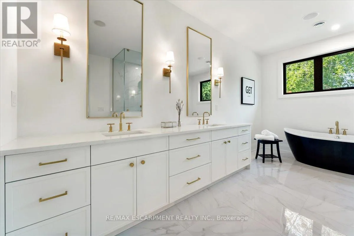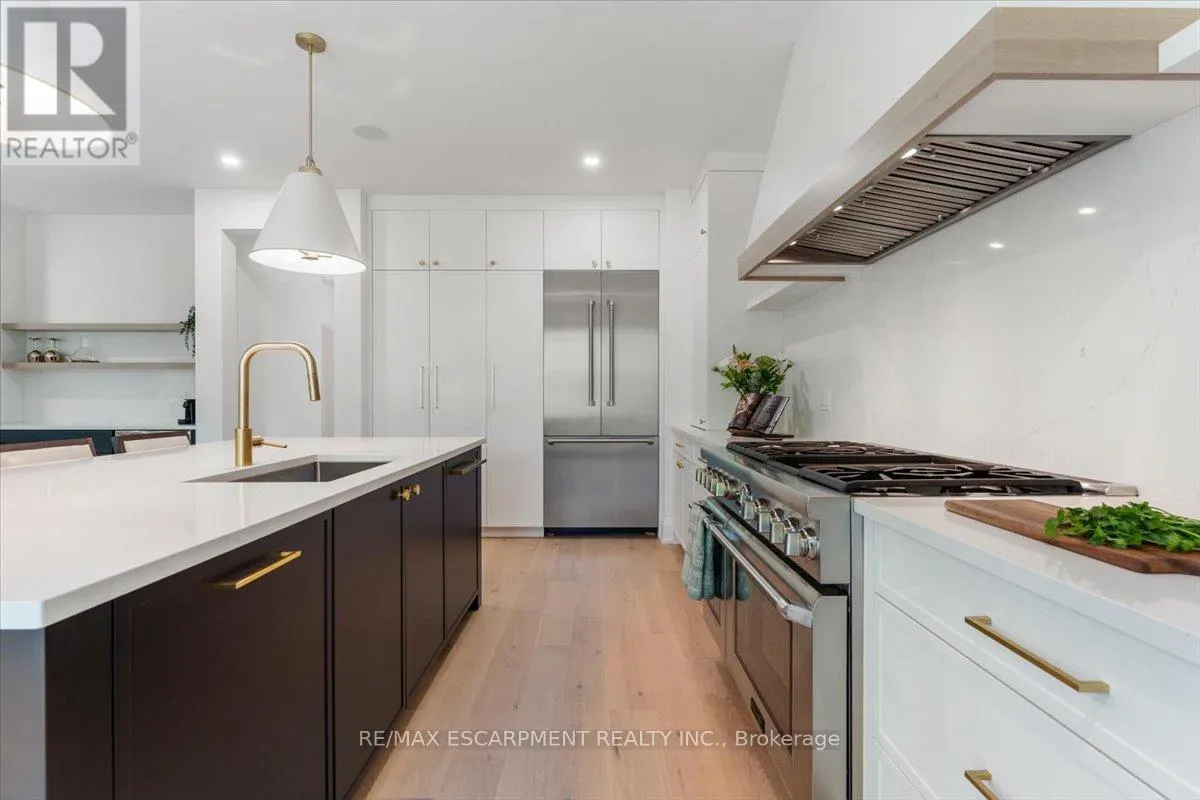 Cross Streets: East Main Street. ** Directions: East Main Street South on Doan's Ridge Rd. Experience the pinnacle of modern living at 81 Doans Ridge Road-an interior design gem offering 3,025 sq ft of refined space on a 60' x 200' lot. From the moment you step inside, the open-concept main floor sets the tone with soaring 9' ceilings, rich engineered hardwood, custom white oak wall paneling, in-ceiling speakers, and sun-filled windows. The chef's kitchen is a showstopper with a 48" Thermador gas range, 36" Thermador fridge, 8' island, and walk-in pantry-perfect for hosting. A main-floor office provides the ideal work-from-home setup. Step onto the 295 sq ft covered deck and soak in tranquil views. Upstairs, two bedrooms each offer private 3 pc ensuites and walk-in closets, while the 650 sq ft primary suite is a true retreat with vaulted ceilings, a fireplace, spa-inspired ensuite, and walk-in closet. The basement features over 8' ceilings, a roughed-in bath, and a garage-to-basement stairwell. As a newly built home, that's never been lived in, there may be an opportunity for eligible buyers to benefit from applicable HST exemption programs-buyers are advised to determine qualification and potential savings. Located minutes from the Welland Canal, trails, and Niagara's wine country, with quick access to St. Catharines, Niagara Falls, and major highways-this home delivers luxury, lifestyle, and location in one extraordinary package. (id:27476)