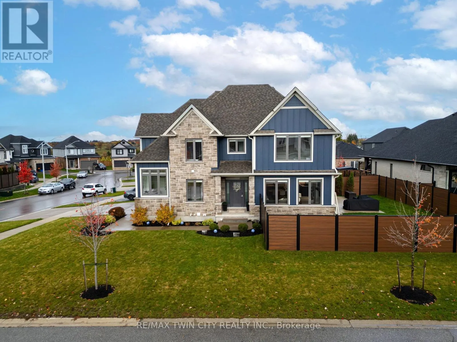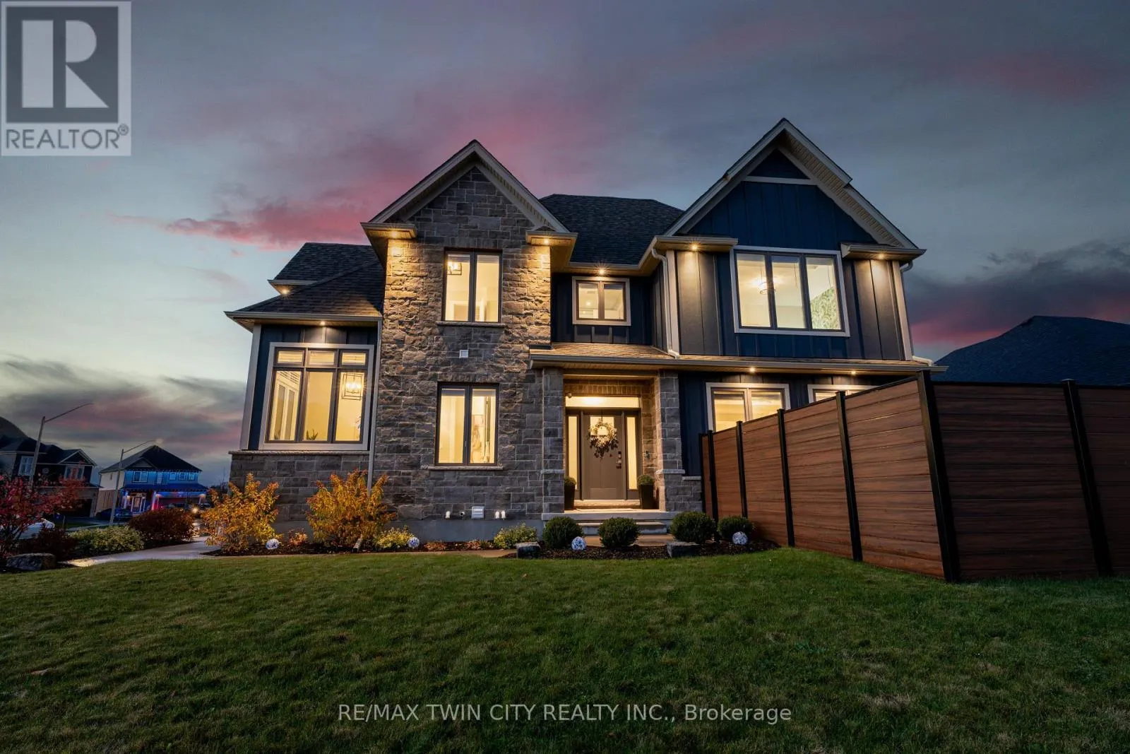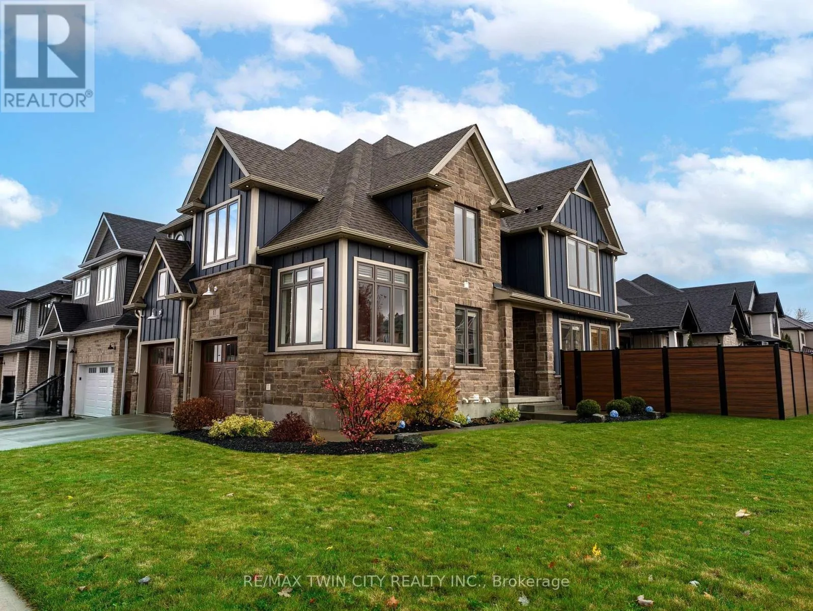 Cross Streets: Ferris Drive & Galena Street. ** Directions: Greenwood Hill Rd to Ferris Drive to Galena Street. Luxury Living in Wellesley - A Custom-Built Masterpiece by Ritz Homes! From the moment you arrive, the modern exterior makes a striking impression. Stone accents, modern window casings, and wood siding come together to create a grand, timeless façade. The thoughtful landscaping enhances the property's appeal and will only grow more beautiful with each passing season. Throughout the main living areas, you'll find wide-plank white oak hardwood flooring and 9-foot ceilings, creating an airy and inviting atmosphere. The main level boasts a bright, open-concept layout ideal for entertaining. Expansive windows flood the space with beautiful natural light, enhanced by the home's southern exposure. A cozy gas fireplace anchors the living area, adding warmth and charm to the contemporary design. You'll also appreciate the custom mudroom with built-in storage and the convenience of main-floor laundry. The custom-designed kitchen is a showstopper, featuring a modern colour palette and an oversized island with breakfast bar. Premium finishes include quartz countertops, a stylish tile backsplash, and top-notch appliances-complete with a gas range. Ample pot drawers and storage ensure both form and function. Oversized sliding doors lead directly to the backyard, making outdoor entertaining and barbecuing a breeze. Upstairs, you'll find three luxurious bedrooms, each offering its own ensuite bath and walk-in closet. The primary suite is a true retreat, highlighted by a spa-like five-piece ensuite complete with a deep soaking tub, double vanities, and a walk-in glass shower. The fully fenced backyard features a spacious concrete patio-perfect for relaxing or hosting friends-and a grassy area ideal for kids and pets to play. This completely custom home is ready to welcome its new family-simply unpack and enjoy the quiet, serene lifestyle it offers. The quality and craftsmanship are even more impressive in person-the photos just don't do it justice. (id:27476)