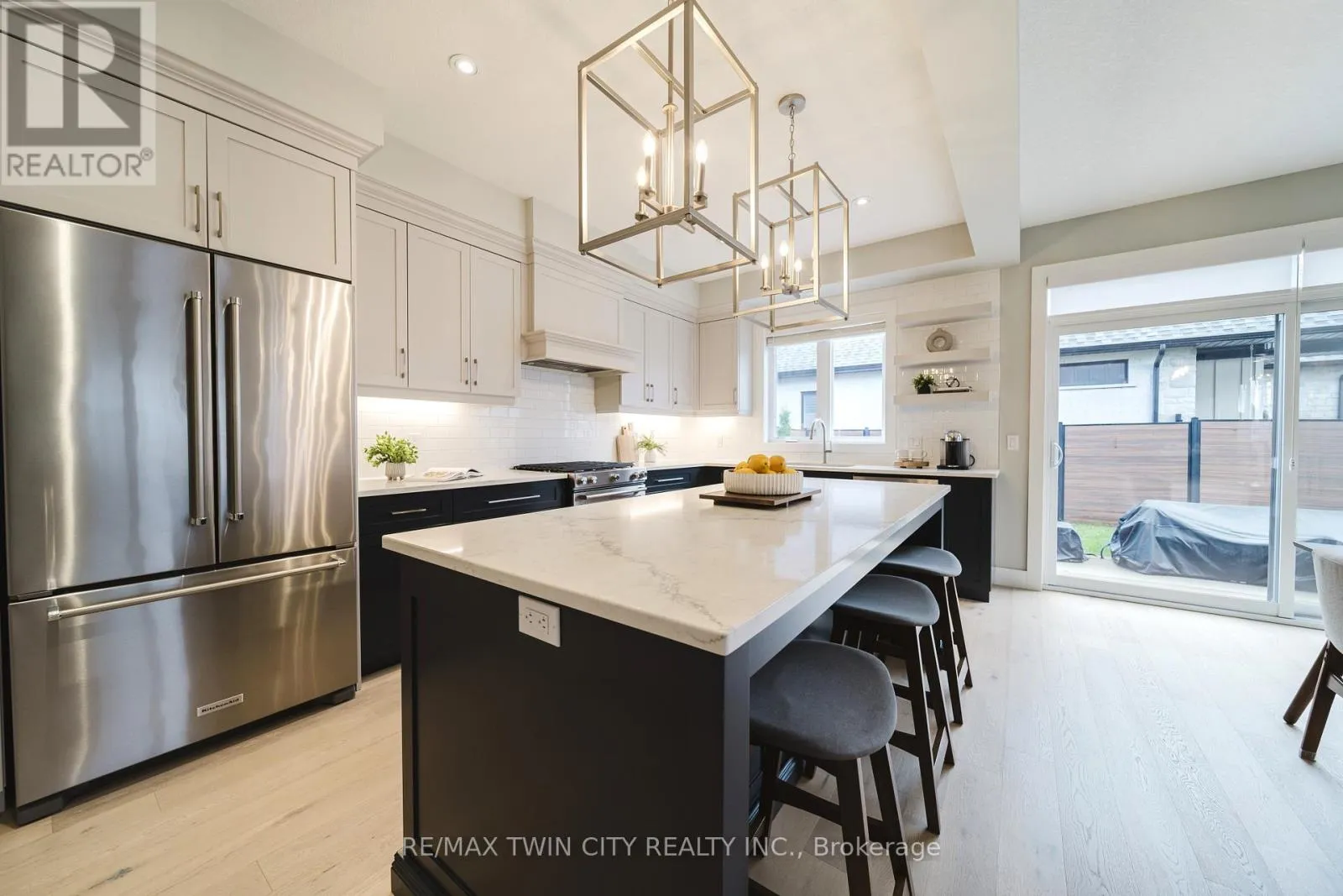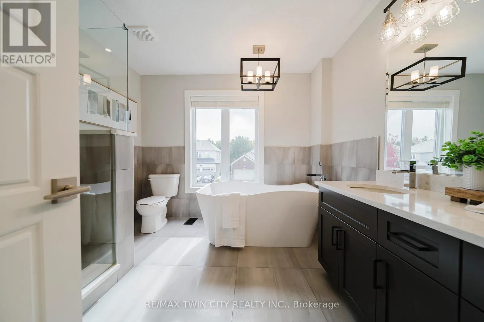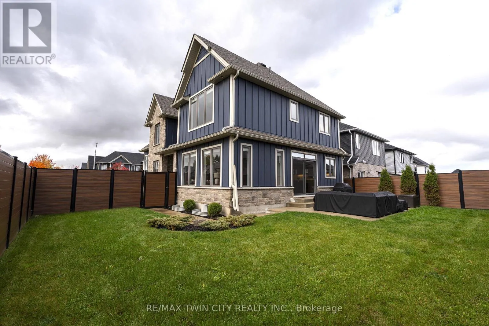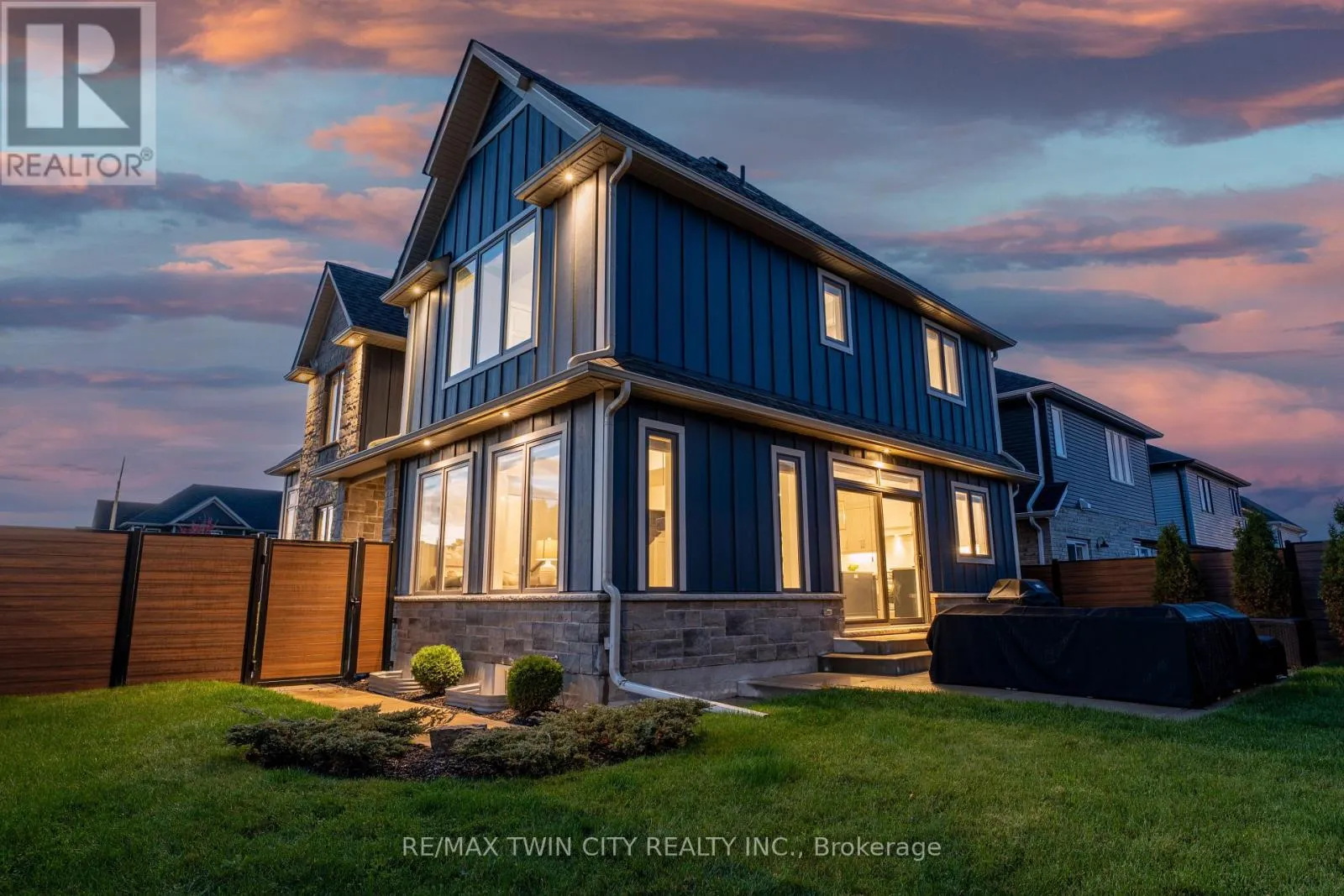 Cross Streets: Ferris Drive & Galena Street. ** Directions: Greenwood Hill Rd to Ferris Drive to Galena Street. Luxury Living in Wellesley - A Custom-Built Masterpiece by Ritz Homes! From the moment you arrive, the modern exterior makes a striking impression. Stone accents, modern window casings, and wood siding come together to create a grand, timeless façade. The thoughtful landscaping enhances the property's appeal and will only grow more beautiful with each passing season. Throughout the main living areas, you'll find wide-plank white oak hardwood flooring and 9-foot ceilings, creating an airy and inviting atmosphere. The main level boasts a bright, open-concept layout ideal for entertaining. Expansive windows flood the space with beautiful natural light, enhanced by the home's southern exposure. A cozy gas fireplace anchors the living area, adding warmth and charm to the contemporary design. You'll also appreciate the custom mudroom with built-in storage and the convenience of main-floor laundry. The custom-designed kitchen is a showstopper, featuring a modern colour palette and an oversized island with breakfast bar. Premium finishes include quartz countertops, a stylish tile backsplash, and top-notch appliances-complete with a gas range. Ample pot drawers and storage ensure both form and function. Oversized sliding doors lead directly to the backyard, making outdoor entertaining and barbecuing a breeze. Upstairs, you'll find three luxurious bedrooms, each offering its own ensuite bath and walk-in closet. The primary suite is a true retreat, highlighted by a spa-like five-piece ensuite complete with a deep soaking tub, double vanities, and a walk-in glass shower. The fully fenced backyard features a spacious concrete patio-perfect for relaxing or hosting friends-and a grassy area ideal for kids and pets to play. This completely custom home is ready to welcome its new family-simply unpack and enjoy the quiet, serene lifestyle it offers. The quality and craftsmanship are even more impressive in person-the photos just don't do it justice. (id:27476)