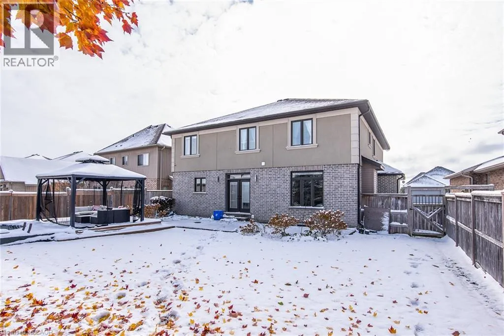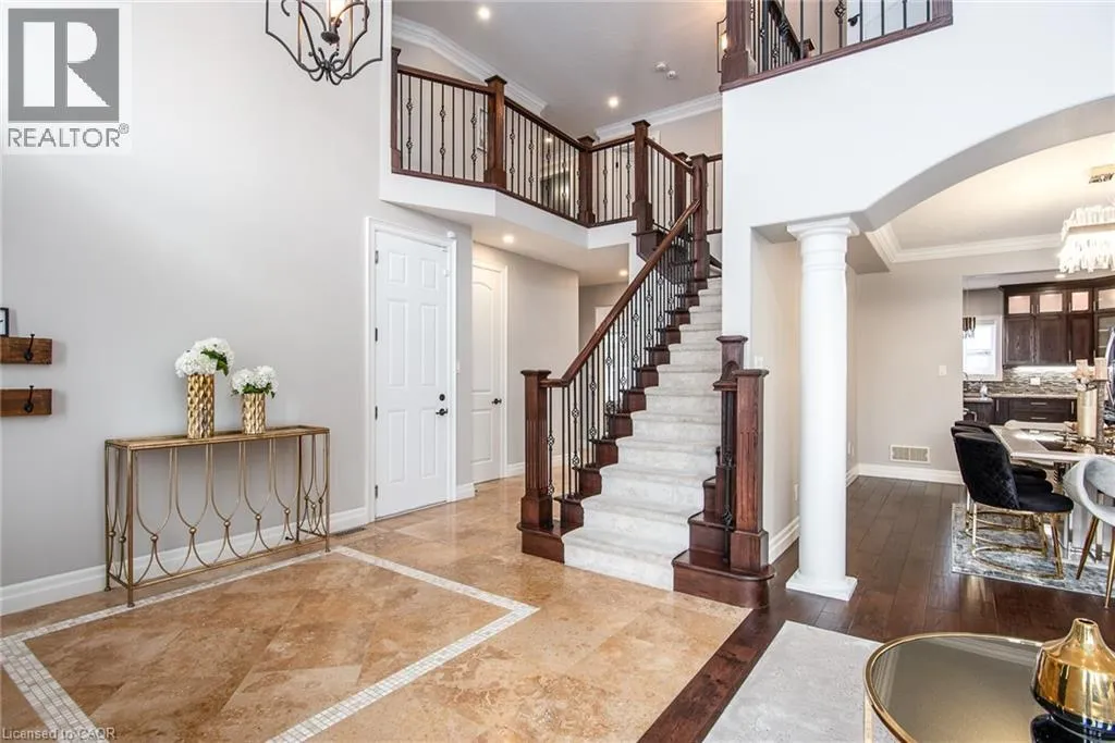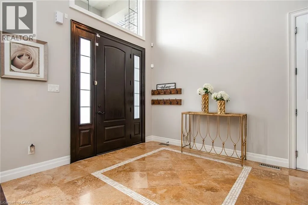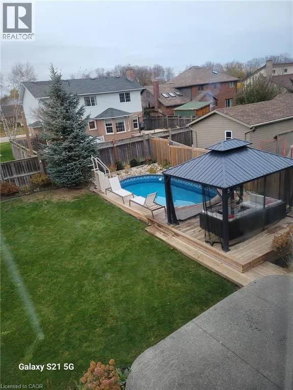 Greenwood Hill Road and Gerber Welcome to a home that truly defines elegance and comfort. This stunning 6-bedroom executive residence offers over 4,300 sq. ft. of beautifully finished living space, close to Waterloo, offering small town charm. The impressive curb appeal sets the stage â a stone aggregate double driveway framed by lush perennial gardens leads to a welcoming covered porch. Step inside to a grand foyer featuring 17' ceilings with pot lights and 18x18 marble flooring that continues through the entrance and kitchen, setting a tone of timeless sophistication. The main level blends functionality and style with a gourmet kitchen showcasing granite countertops, top-of-the-line stainless steel appliances, and a seamless flow to the dining and family rooms. Hardwood floors, crown moulding, and recessed lighting accentuate every detail, while the family roomâs gas fireplace and floor-to-ceiling windows with automatic curtains create a warm, inviting atmosphere filled with natural light. Upstairs, the spacious primary suite offers a serene retreat with a luxurious 6-piece spa ensuite featuring a Jacuzzi tub, glass shower, and a custom-built walk-in closet. Three additional bedrooms provide large custom closets with 8' doors, while the fourth bedroom enjoys its own private ensuite. A five-piece main bathroom, upper-level laundry with sink, and a generous linen closet complete this level with practicality and charm. The finished lower level adds over 1,400 sq. ft. of living space, boasting 9' ceilings, a separate garage entrance, a lounge with a new stone feature wall, a full kitchen, 2 bedrooms, and 3-piece bath â perfect for guests or in-law accommodation. Outside, enjoy a fully fenced backyard with a stone patio, heated on-ground pool, and new deck â ideal for gatherings with family and friends. Nestled on a deep lot in a sought-after neighborhood, this custom home combines craftsmanship, luxury, and lifestyle â a perfect place to call home. (id:27476)
