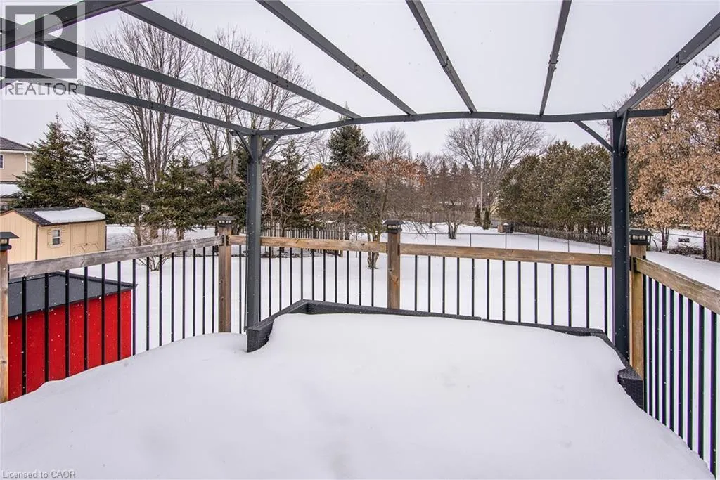 Welcome to 8 Berdux Place in Wellesley. Located on a quiet court and set on one of the largest pie-shaped lots in the neighbourhood (approx. 0.30 acres), this beautifully maintained raised bungalow offers exceptional space and privacy. Featuring 4 bedrooms and 3 full bathrooms, the bright main level includes updated laminate flooring, a functional kitchen with hardwood countertops, pantry, and an inviting layout for everyday living. The fully finished lower level with 9-foot ceilings and oversized windows provides a bright, above-grade feel with excellent in-law suite potential and ample storage. Enjoy your fully fenced backyard retreat â one of the largest on the court â complete with a hot tub, gazebo, and storage shed, and plenty of room for kids, pets, or a future pool. Just minutes to parks, schools, daycare, the community centre, and only 20 minutes to Waterloo, this home offers the perfect blend of small-town charm and city convenience. (id:27476)
