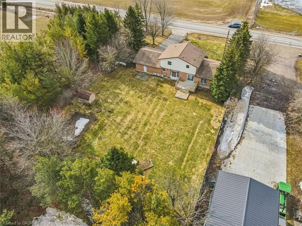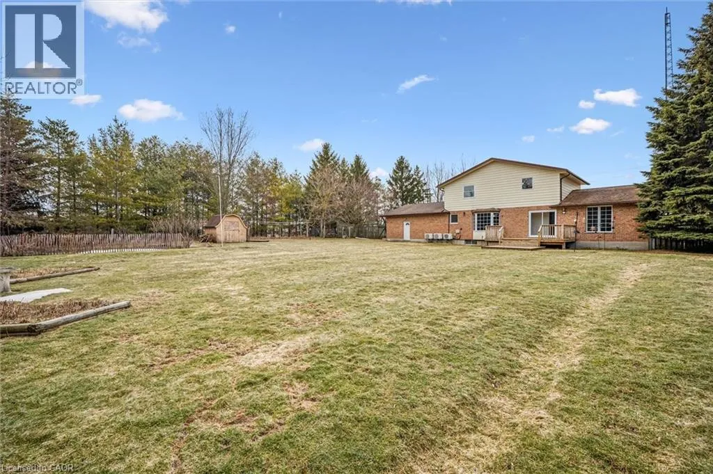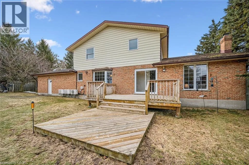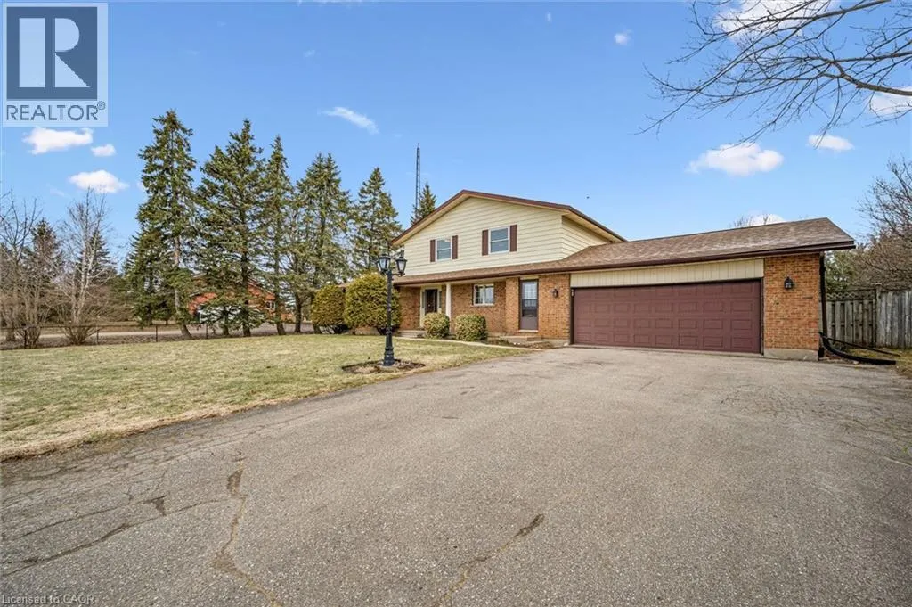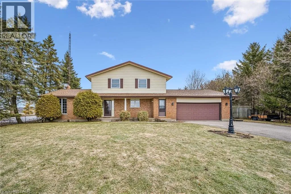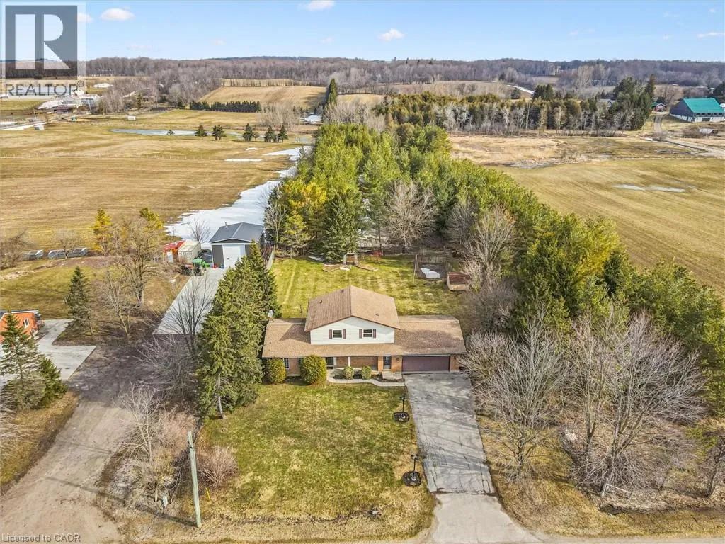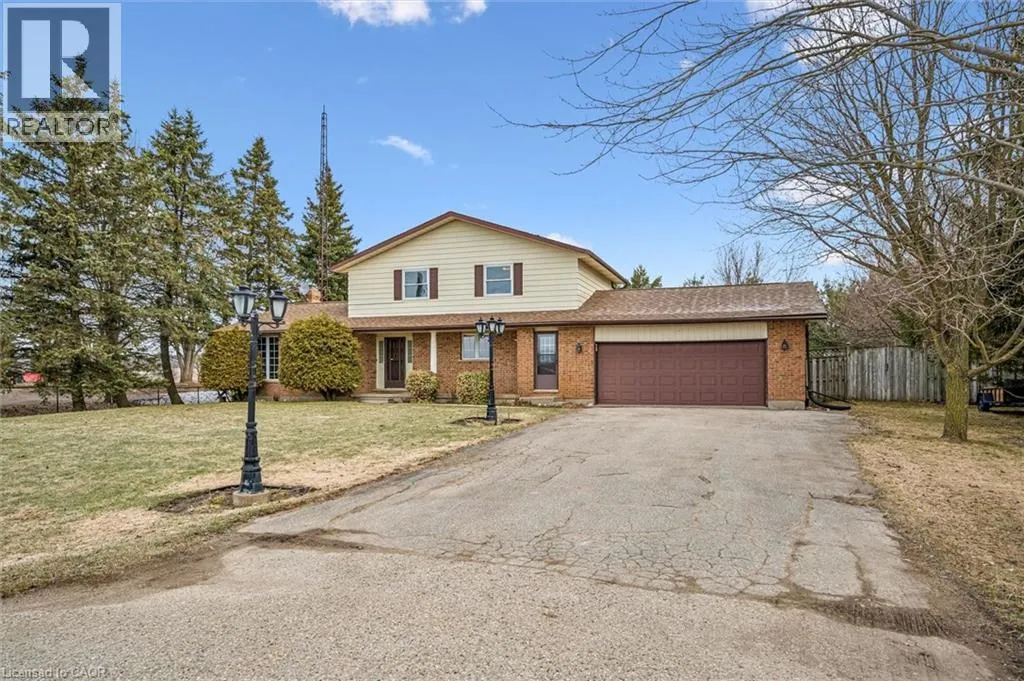 Escape to the country! Set on a peaceful and private half-acre lot just minutes from Waterloo, this home has been lovingly maintained and is ready for new owners to start making memories. Bright and spacious with three bedrooms and three bathrooms, you can bring your design ideas to make it your own right away, or take your time and make improvements at your leisure. The welcoming foyer leads to a country-sized kitchen featuring a multi-level island, built-in appliances, a centerpiece decorative woodstove, and more cabinets and counter space than you will know what to do with. The sprawling main level also features a large living room with hardwood floors and a view of the countryside, a comfy family room with a striking gas fireplace, a two-piece bathroom, and a walkout to the deck. The main floor is completed by a laundry/mudroom with a second entrance and plenty of storage. The second floor offers three bedrooms, including a primary suite with a three-piece ensuite. The second and third bedrooms are generously sized, and there is a family-sized four-piece washroom as well as a large storage room with access to the attic. The basement is huge and mostly finished, with only the recreation room awaiting a ceiling. This level consists of an L-shaped rec room and two other large finished rooms offering endless possibilities. You will also find a cold room, utility room, and a convenient walk-up to the oversized double garage. Outside, there is plenty of room to park your vehicles and toys, while the immense treed perimeter ensures the utmost privacy.Of note: Windows on the upper floor as well as the main floor slider were replaced in 2025; there was a new heat pump unit replaced in the attic in 2024 to service the bedroom level while the kitchen and basement heat pumps were new in 2014, electric baseboard supplemental heating. Shingles replaced in 2012. 80 ft drilled well with new pump installed in 2023. Battery back up for 2 sump pumps and hard wired generator. (id:27476)