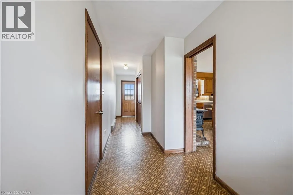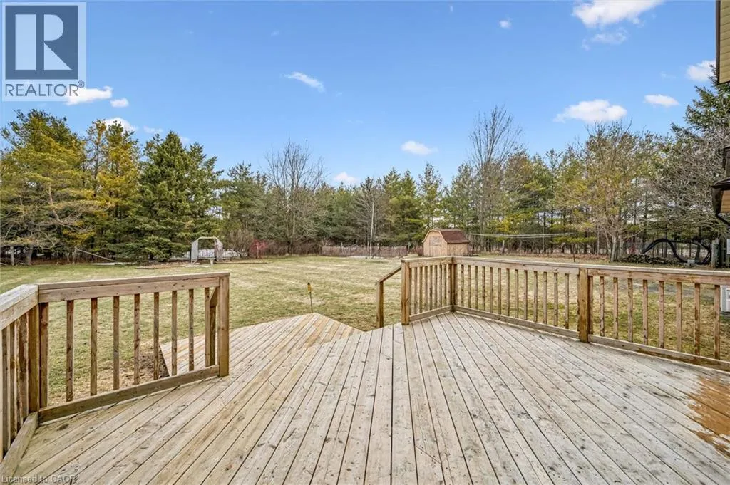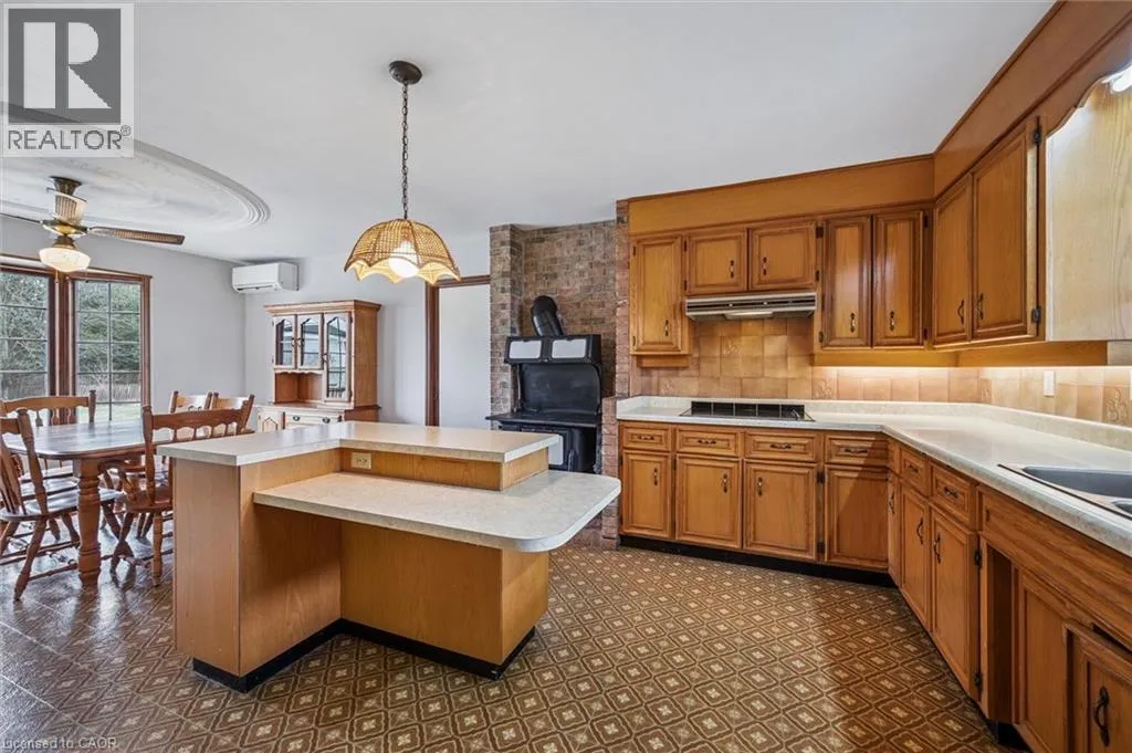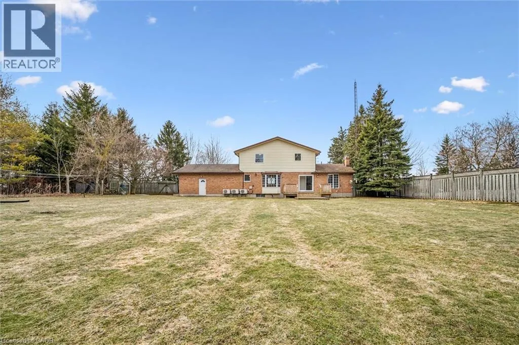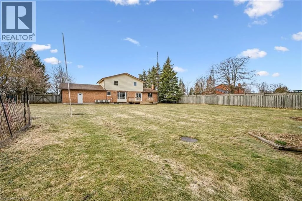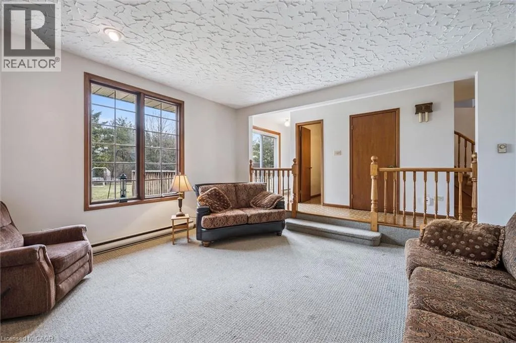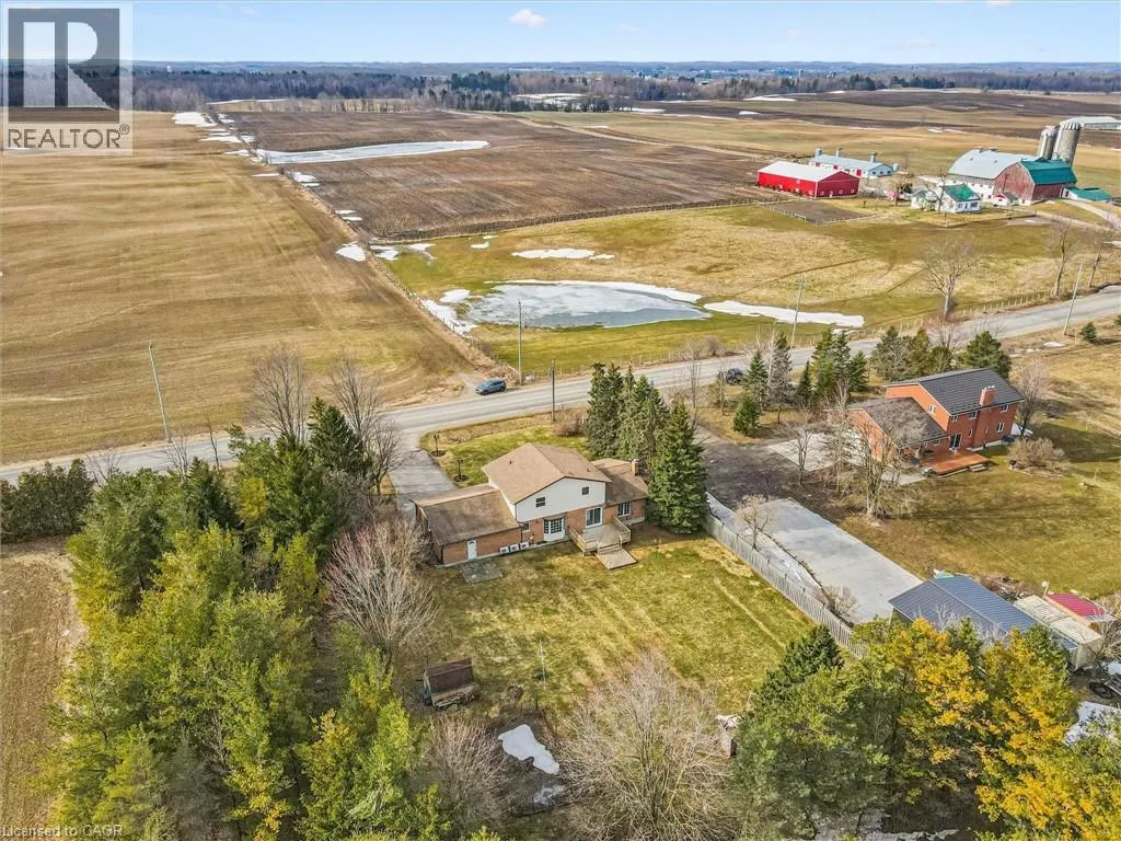 Escape to the country! Set on a peaceful and private half-acre lot just minutes from Waterloo, this home has been lovingly maintained and is ready for new owners to start making memories. Bright and spacious with three bedrooms and three bathrooms, you can bring your design ideas to make it your own right away, or take your time and make improvements at your leisure. The welcoming foyer leads to a country-sized kitchen featuring a multi-level island, built-in appliances, a centerpiece decorative woodstove, and more cabinets and counter space than you will know what to do with. The sprawling main level also features a large living room with hardwood floors and a view of the countryside, a comfy family room with a striking gas fireplace, a two-piece bathroom, and a walkout to the deck. The main floor is completed by a laundry/mudroom with a second entrance and plenty of storage. The second floor offers three bedrooms, including a primary suite with a three-piece ensuite. The second and third bedrooms are generously sized, and there is a family-sized four-piece washroom as well as a large storage room with access to the attic. The basement is huge and mostly finished, with only the recreation room awaiting a ceiling. This level consists of an L-shaped rec room and two other large finished rooms offering endless possibilities. You will also find a cold room, utility room, and a convenient walk-up to the oversized double garage. Outside, there is plenty of room to park your vehicles and toys, while the immense treed perimeter ensures the utmost privacy.Of note: Windows on the upper floor as well as the main floor slider were replaced in 2025; there was a new heat pump unit replaced in the attic in 2024 to service the bedroom level while the kitchen and basement heat pumps were new in 2014, electric baseboard supplemental heating. Shingles replaced in 2012. 80 ft drilled well with new pump installed in 2023. Battery back up for 2 sump pumps and hard wired generator. (id:27476)