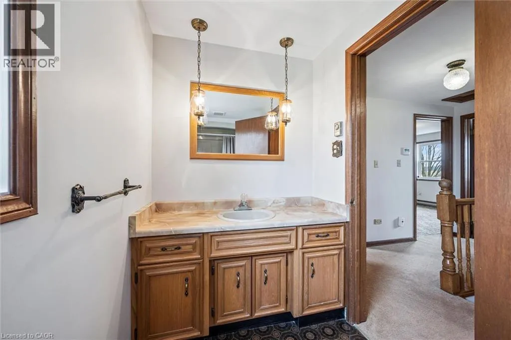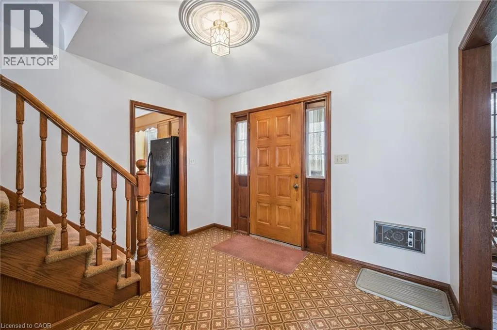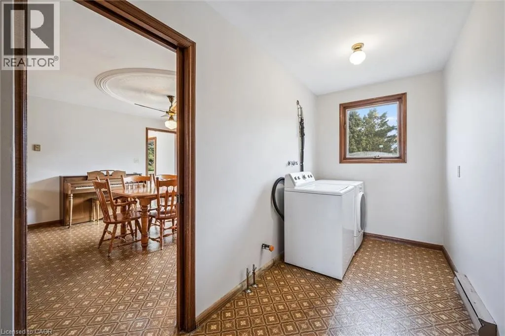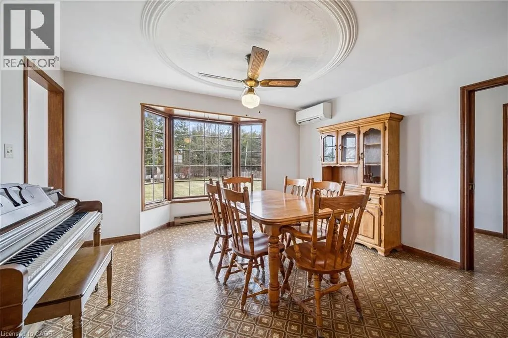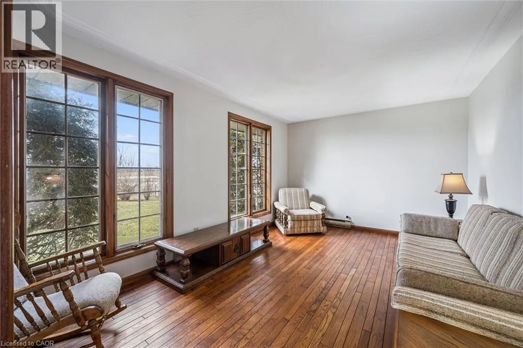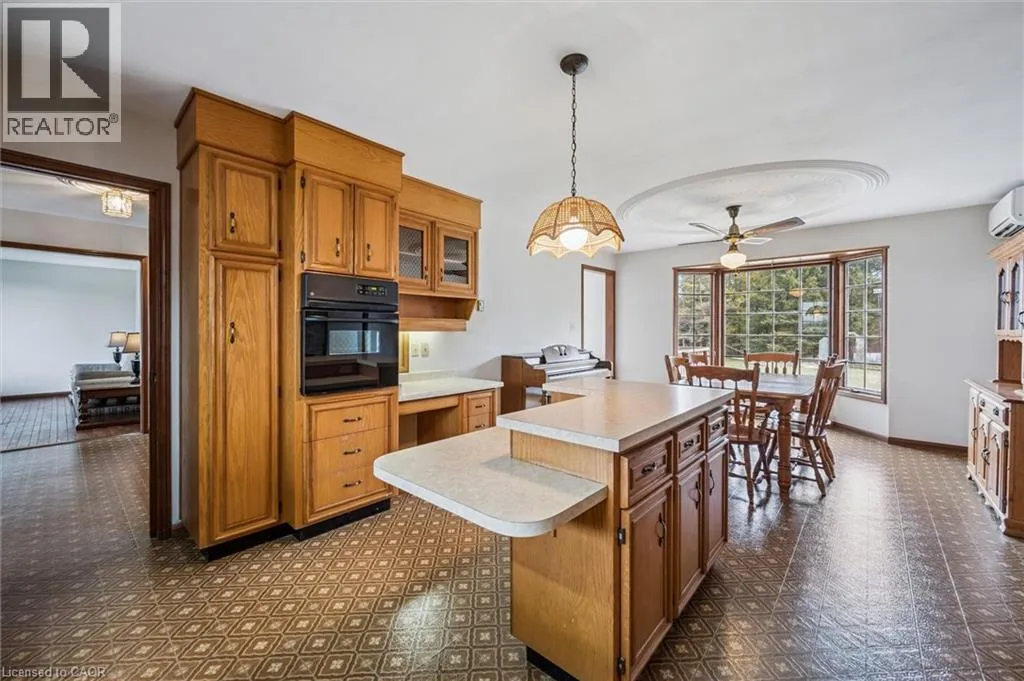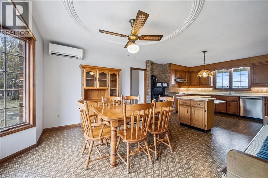Escape to the country! Set on a peaceful and private half-acre lot just minutes from Waterloo, this home has been lovingly maintained and is ready for new owners to start making memories. Bright and spacious with three bedrooms and three bathrooms, you can bring your design ideas to make it your own right away, or take your time and make improvements at your leisure. The welcoming foyer leads to a country-sized kitchen featuring a multi-level island, built-in appliances, a centerpiece decorative woodstove, and more cabinets and counter space than you will know what to do with. The sprawling main level also features a large living room with hardwood floors and a view of the countryside, a comfy family room with a striking gas fireplace, a two-piece bathroom, and a walkout to the deck. The main floor is completed by a laundry/mudroom with a second entrance and plenty of storage. The second floor offers three bedrooms, including a primary suite with a three-piece ensuite. The second and third bedrooms are generously sized, and there is a family-sized four-piece washroom as well as a large storage room with access to the attic. The basement is huge and mostly finished, with only the recreation room awaiting a ceiling. This level consists of an L-shaped rec room and two other large finished rooms offering endless possibilities. You will also find a cold room, utility room, and a convenient walk-up to the oversized double garage. Outside, there is plenty of room to park your vehicles and toys, while the immense treed perimeter ensures the utmost privacy.Of note: Windows on the upper floor as well as the main floor slider were replaced in 2025; there was a new heat pump unit replaced in the attic in 2024 to service the bedroom level while the kitchen and basement heat pumps were new in 2014, electric baseboard supplemental heating. Shingles replaced in 2012. 80 ft drilled well with new pump installed in 2023. Battery back up for 2 sump pumps and hard wired generator. (id:27476)