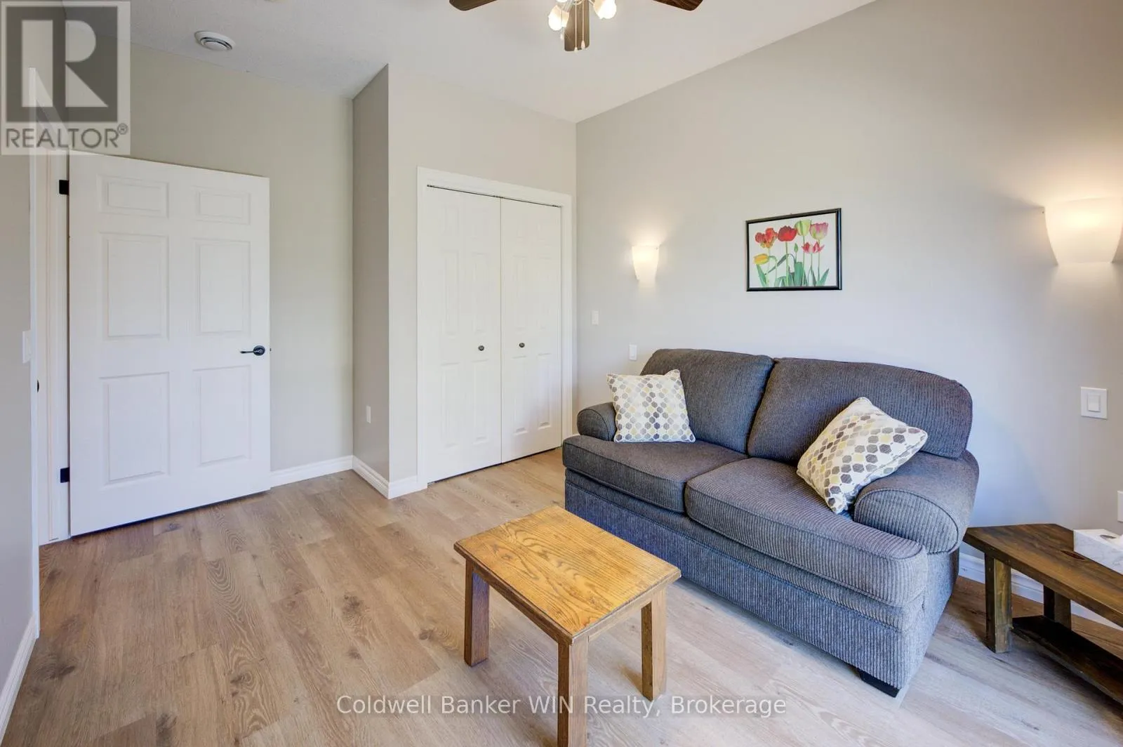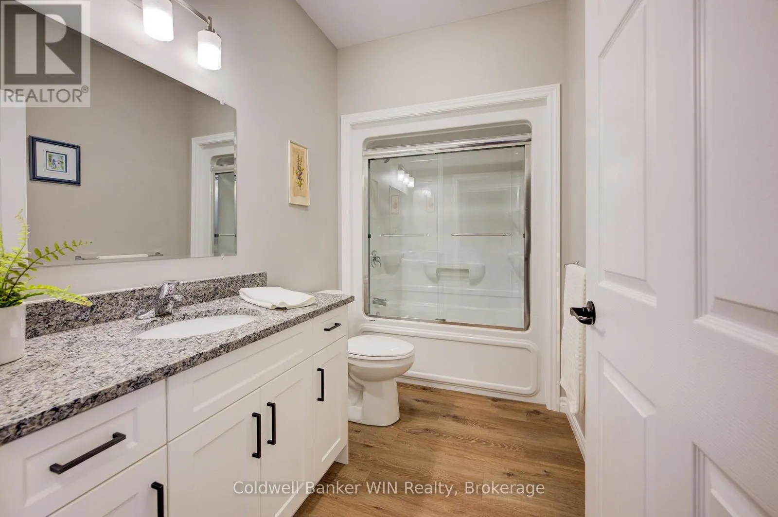 Cross Streets: Broomer Cres and Sligo Road N. ** Directions: From Main St N turn East onto Wellington St E. Turn North onto London Road N. Turn West onto Broomer Cres. Property on the North Side. Welcome to this beautifully crafted 2-bedroom, 2-bathroom bungalow that offers the perfect blend of style, comfort, and accessible living. Designed with ease and functionality in mind, this home features wide, open spaces ideal for those seeking one-level, mobility-friendly living. The inviting living room boasts soaring vaulted ceilings and a cozy gas fireplace, creating a bright and welcoming space for relaxing or entertaining. The kitchen is a standout with sleek granite countertops and a dream walk-in pantry, perfect for home chefs. The spacious primary bedroom includes a walk-in closet, a private 3-piece ensuite, and sliding doors leading to a concrete patio and tranquil backyard. A second set of sliding doors from the guest bedroom also opens to this peaceful outdoor space. Additional features include gas forced air heat, luxurious gas in-floor heating, and central air for year-round comfort. The large attached single-car garage is fully lined in metal for easy cleaning, and the covered front porch includes a gas line for your BBQ. This home combines practicality, elegance, and accessible design in one exceptional package. (id:27476)