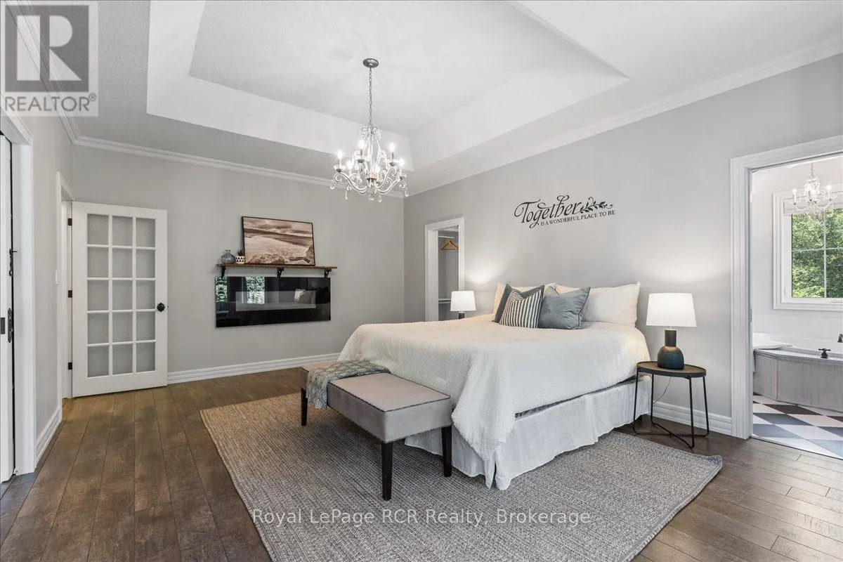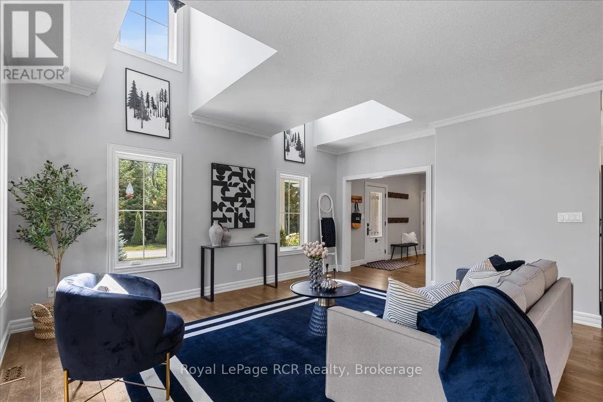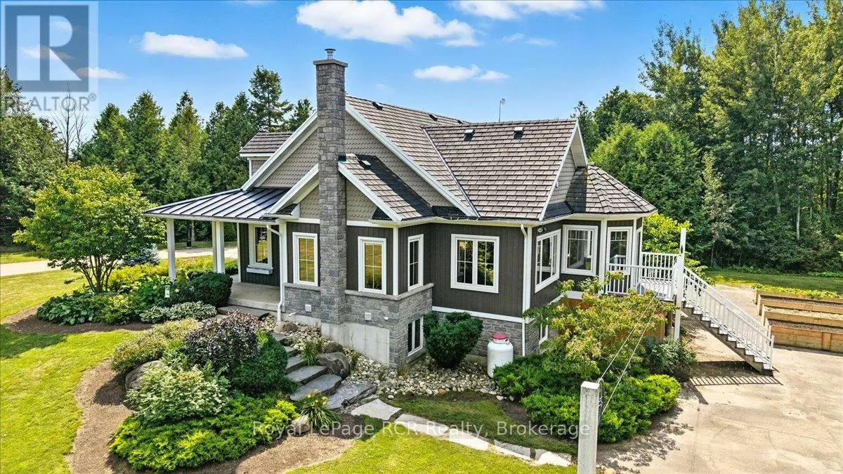 East of Mount Forest to Concession Road 4 N, south to Sideroad 3 E to property on right. On 10 acres in Wellington North, this executive stone bungalow combines luxury, comfort, and country living. The custom kitchen with pantry flows into inviting family spaces, while a sunroom with walkout deck overlooks the landscaped yard and wooded lot. The spacious primary suite features a walk-in closet and spa-inspired ensuite, and the finished lower level adds a rec room, bar, and extra bedrooms. An oversized garage, circular driveway, and energy-efficient geothermal heating complete this exceptional property. NOTE: A portion of the land is conservation property, but the current assessment mistakenly treats it as fully residential. Once corrected, taxes are expected to be reduced by 50 - 60%, offering significant savings to the new owner. Don't miss your chance to own this executive home arrange a tour today! (id:27476)