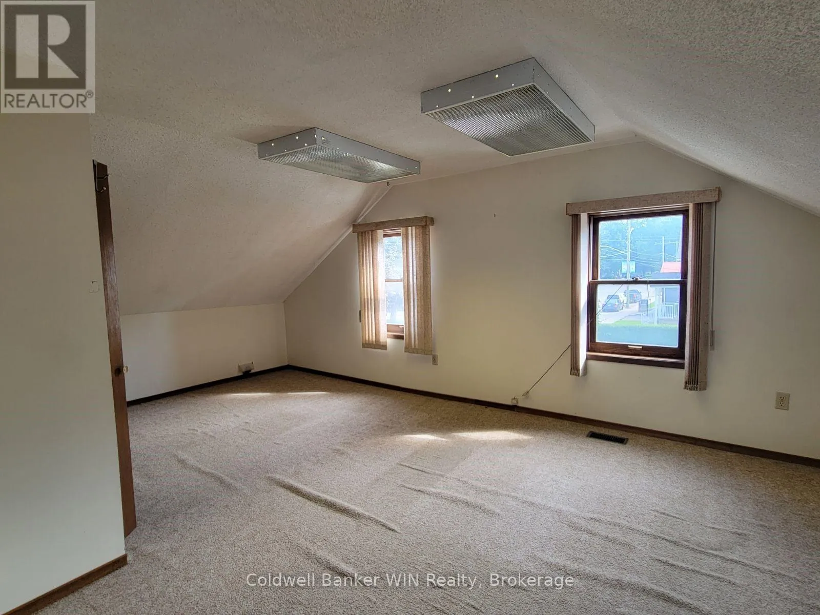 East of Main St on King St to sign Great high profile side street commercial location. This 5 office, 1 1/2 bath building enjoys C1 zoning and is located in the heart of the Mount Forest business district. Additional auxiliary space is available in the partially finished basement. Besides the extensively asphalt covered yard, additional parking or storage is available in the detached 16 ft. x 24 ft. garage with a full usable loft. This opportunity is available for immediate occupancy. (id:27476)