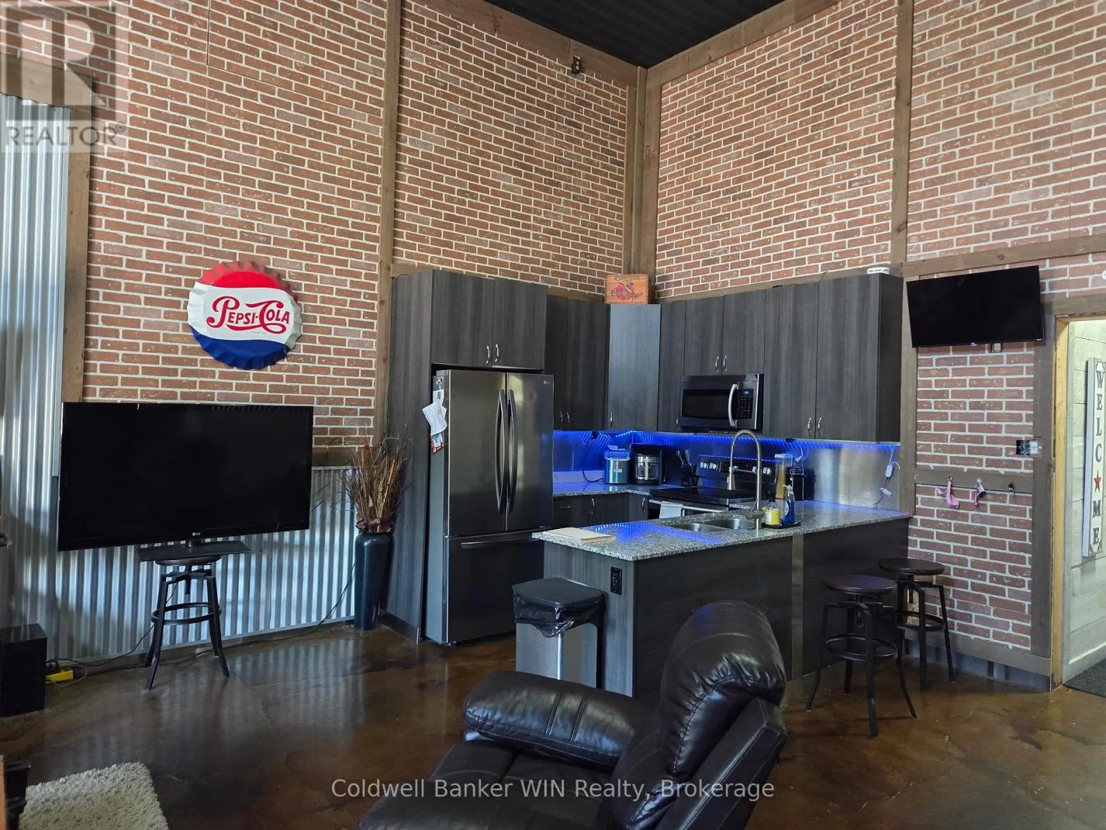 On E/S of Highway 6 at Southern entrance to Kenilworth 1.26 acre commercial property with high profile and access to Highway 6. The 3,200 SF building has been reclad in metal, spray foam insulated, vinyl clad walls & ceiling, in floor heating, epoxy coated floor and has 15' 4" interior clearance. Includes office area with mezzanine (mezzanine area in addition to above). Five year old drilled well and 3 stage septic system. Phase II completed. Hamlet C5 - 30 zoning permits many different uses including accessory residential and space for expansion. (id:27476)