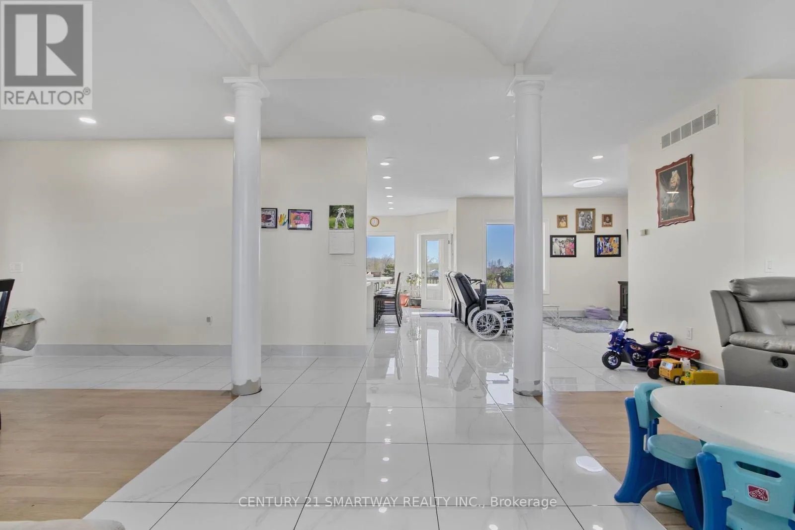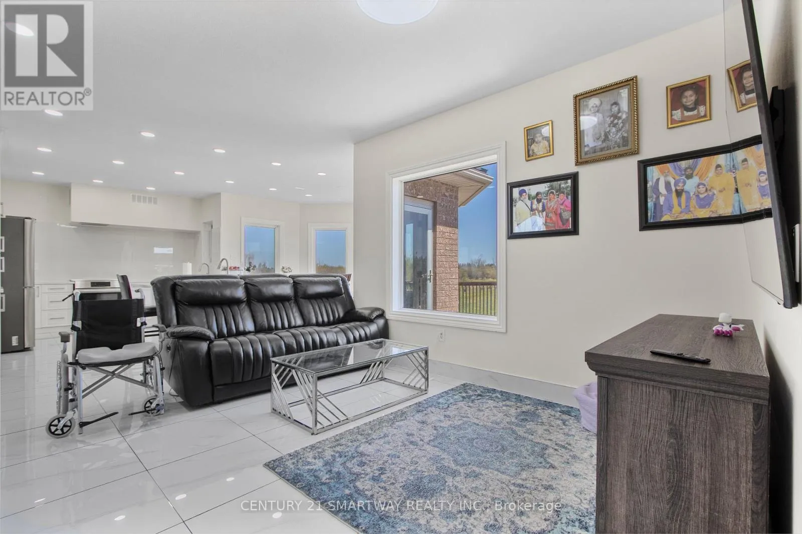 Fifth Line and Hwy 109 Welcome to 7299 Fifth Line, 5 Minutes east to Arthur & 20 Minutes west to Orangeville Hwy 109 Recently renovated from top to bottom, Situated on a 10 acres of flat land with your own private pond Arthur and Orangeville. This solid brick dream home boasts 5000 sq. ft. of living space including over 2600 sq. ft. above grade on main level. The Sprawling Bungalow has so much to offer. Large family, multifamily, or you just want space & privacy! Main floor boasts 9' ceilings, 3 large bedrooms, 3 washrooms, brand new kitchen with central island, quartz counter, new appliances, living, dining, family room & laundry, a functional floor plan with amazing views. The finished basement features a walk-up separate entrance, 3 spacious bedrooms, huge Living/Dining, 4PC washroom with double sink vanity for the ability to have an in-law suite or guest accommodations. Lots of large windows allows for an abundance of natural light and lets you enjoy the country landscape from inside. Outside is an opportunity to create the freedoms of space, gardens, your landscaping ideas, maybe a pool.... Large driveway with double car garage door installed in 2025, Geothermal Heating System & metal roof. MUST SEE PROPERTY!!! (id:27476)