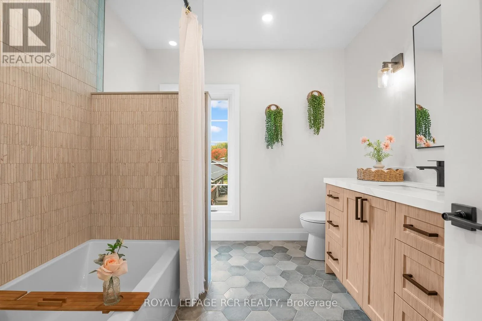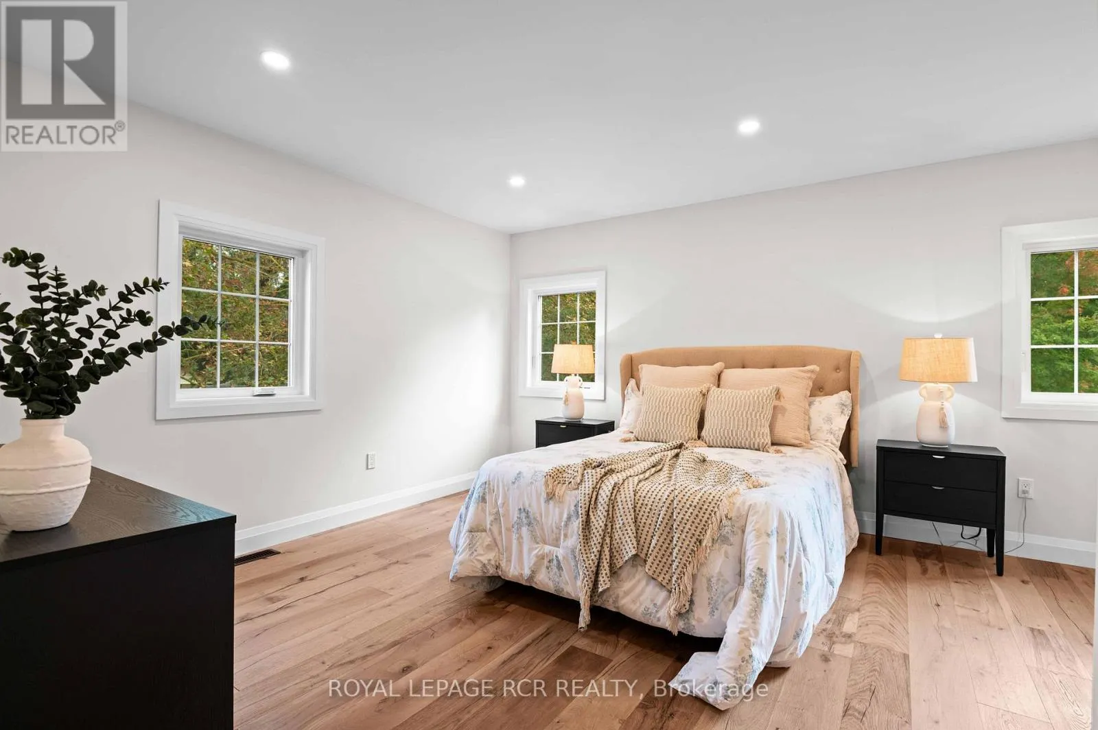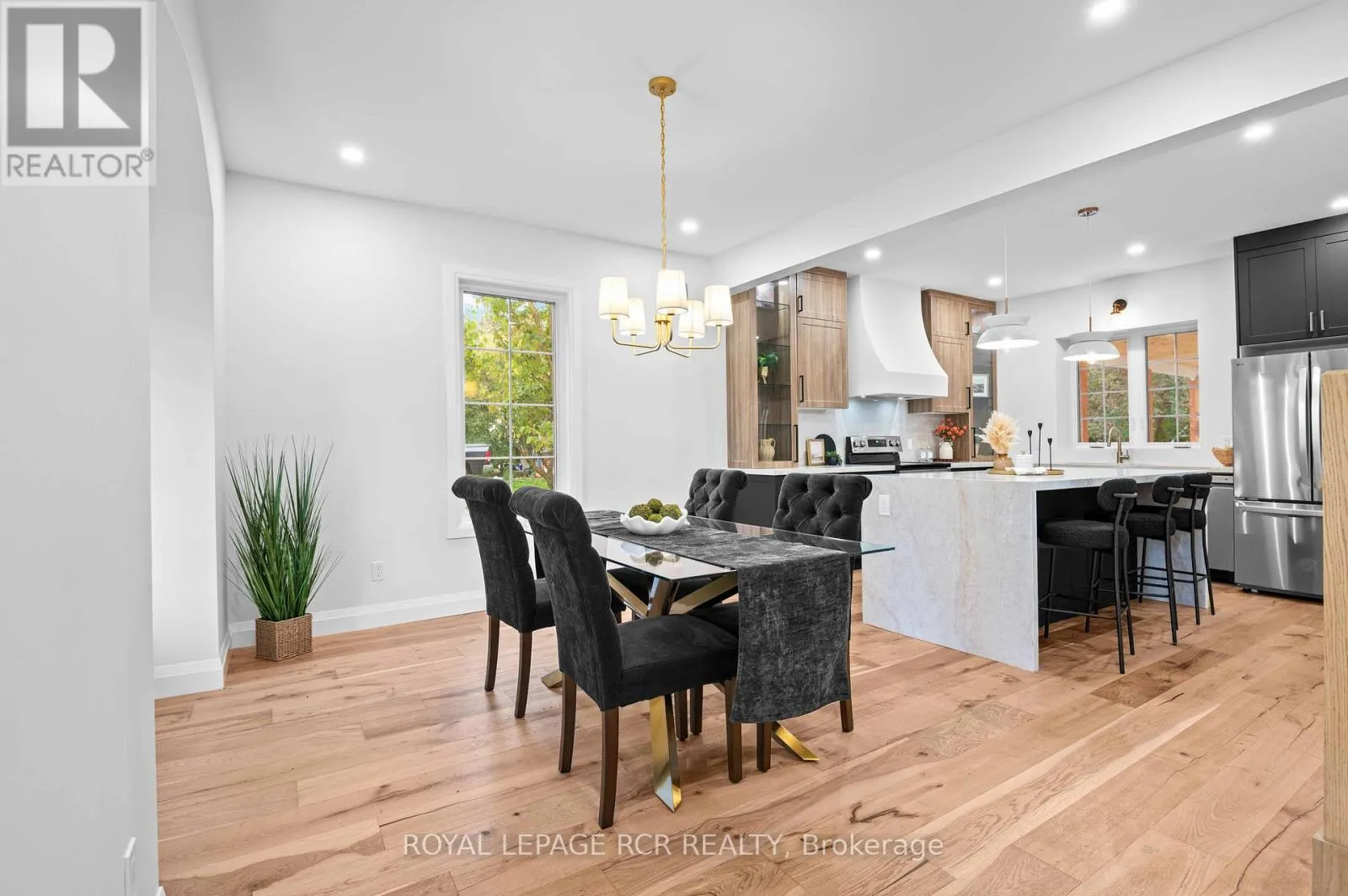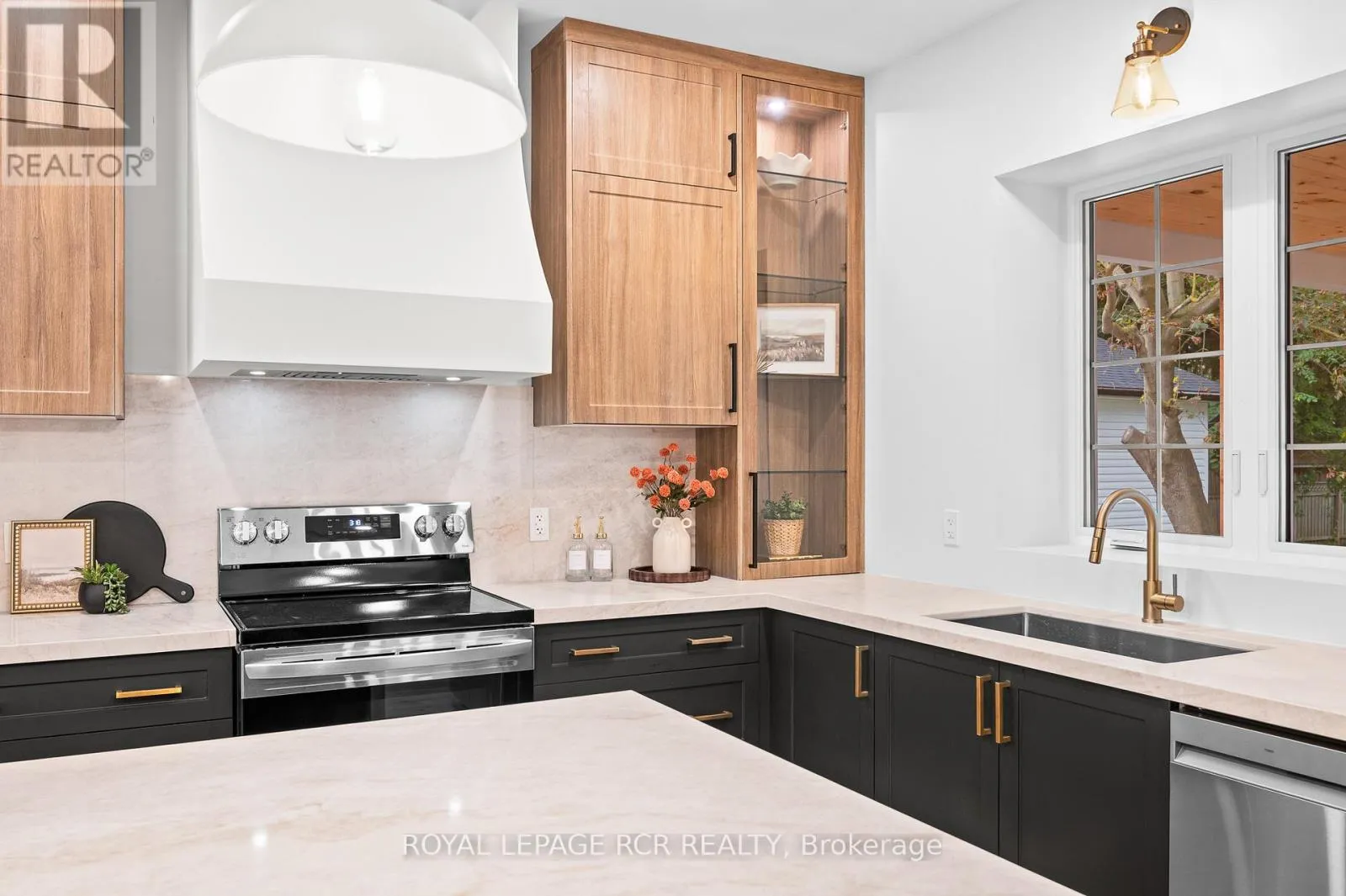 Cross Streets: Hwy 6(Smith St)/Frederick St W. ** Directions: Hwy 109, north on Hwy 6. Nestled on an expansive lot in downtown Arthur, this exquisite 4 bedroom, 3 bathroom home has undergone a complete transformation, blending classic architecture with elevated modern finishes. The main level impresses with wide-plank hardwood flooring and a light-filled living room anchored by a gas fireplace clad in Taj Mahal quartz, framed by large windows and a coffered ceiling. The adjacent open concept kitchen and dining area is a showpiece of design, featuring an oversized centre island with a waterfall quartz countertop and breakfast bar, pendant lighting, a custom plaster range hood, pot lighting, and full-height Taj Mahal quartz backsplash and counters that carry the stones elegant detailing throughout. Arched windows throughout the principal rooms add a graceful architectural touch, while a beautifully appointed mudroom at the rear of the home offers built-in storage and striking herringbone brick tile underfoot. A versatile main floor room provides the option for a family room or fifth bedroom, complemented by a stylish 4 piece bathroom and convenient main floor laundry. The upper level is equally impressive. The primary suite offers a walk-through closet and an elegant 5 piece ensuite with a curbless walk-in tiled shower, stationary glass, soaker tub, and double vanity. Three additional bedrooms provide generous proportions and share a modern 4 piece main bath. Outdoors, a wraparound covered back deck extends your living space, ideal for entertaining or relaxing while overlooking the spacious, private yard. A brand new detached 1.5 car garage adds functionality to this truly turnkey property. From curated finishes to thoughtful functionality, every detail of this home has been carefully considered offering a rare opportunity to own a truly exceptional home in one of Arthur's most established neighbourhoods. (id:27476)