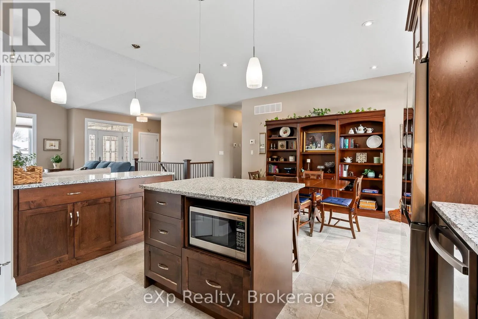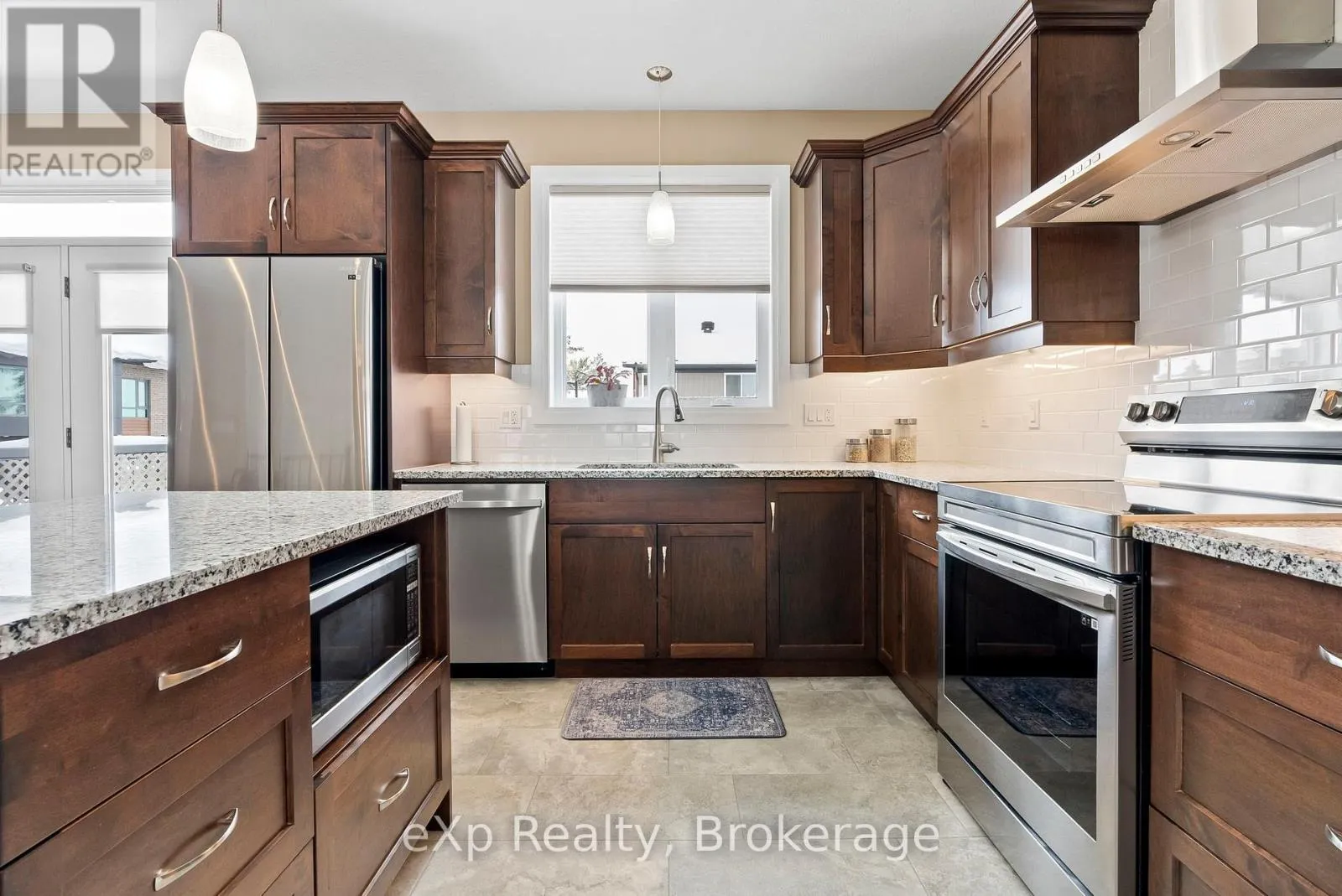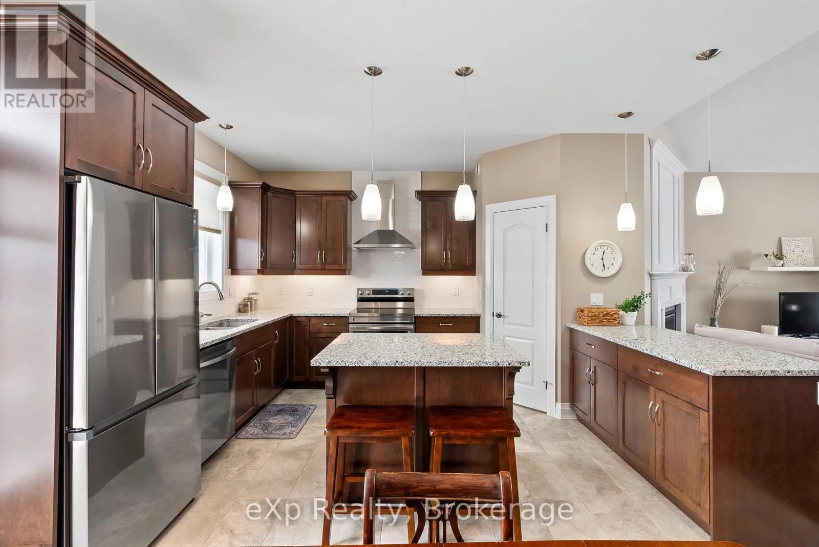 Cross Streets: Ronnie's Way. ** Directions: 127 Doug's Cres, Mount Forest. Tucked away in a quiet cul-de-sac, this 4-year-young bungalow offers modern design and thoughtful living. The open-concept interior immediately impresses with soaring light and engineered hardwood, anchored by a sleek gas fireplace. The chef-inspired kitchen serves as the heart of the home, featuring granite surfaces, a walk-in pantry, and premium smudge-free appliances. Retreat to the primary suite, where dual wall-to-wall closets and a private ensuite provide a true sanctuary. Below, the fully finished basement offers ultimate comfort with radiant in-floor heating-perfect for movie nights in the massive rec room. Steps from local parks, splash pads, and outdoor walking track, this home offers the perfect balance of convenience and community connection. (id:27476)