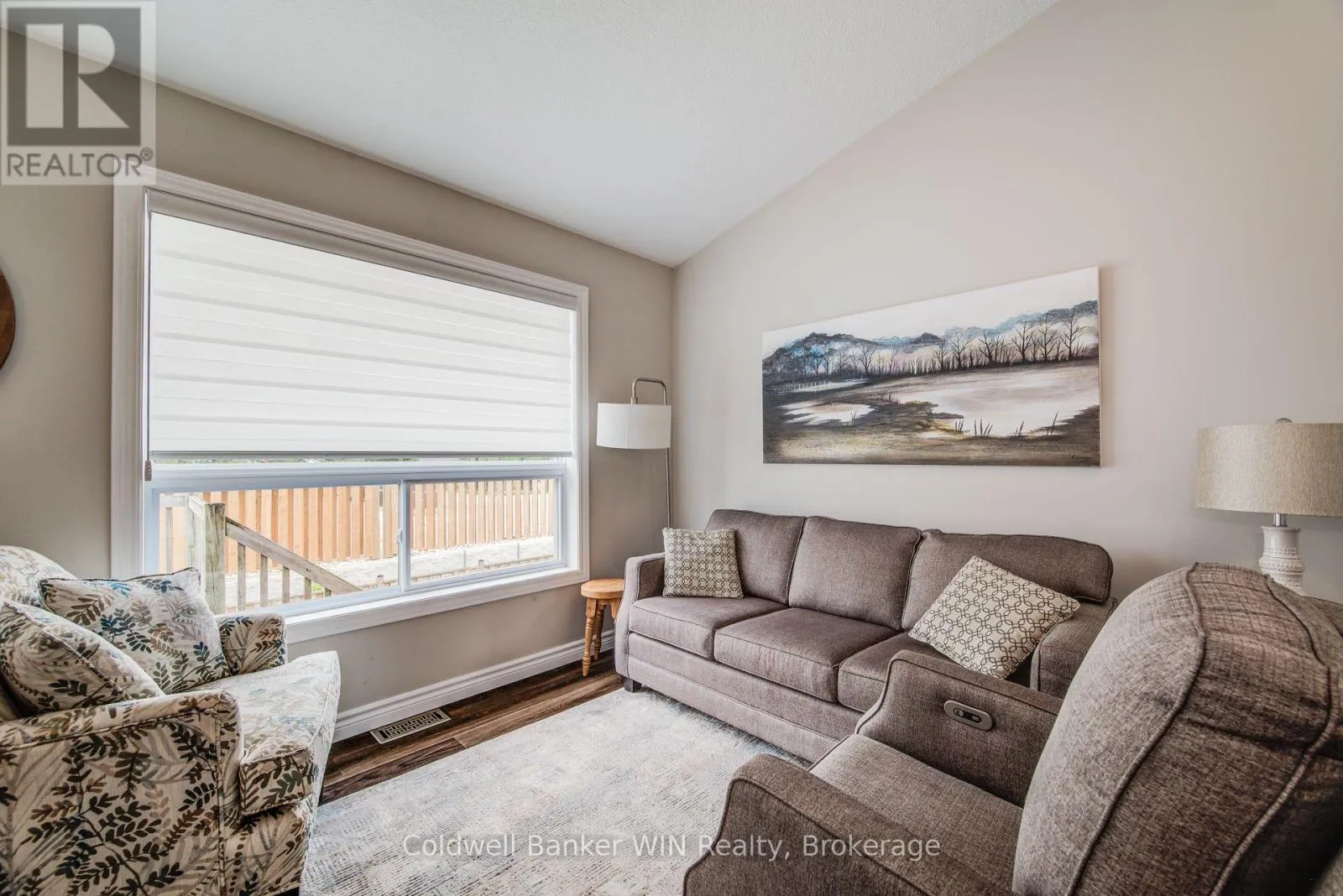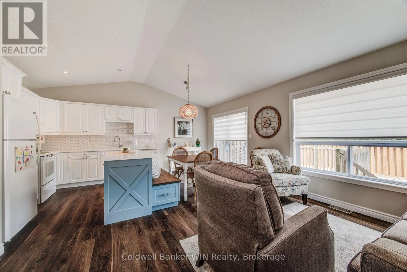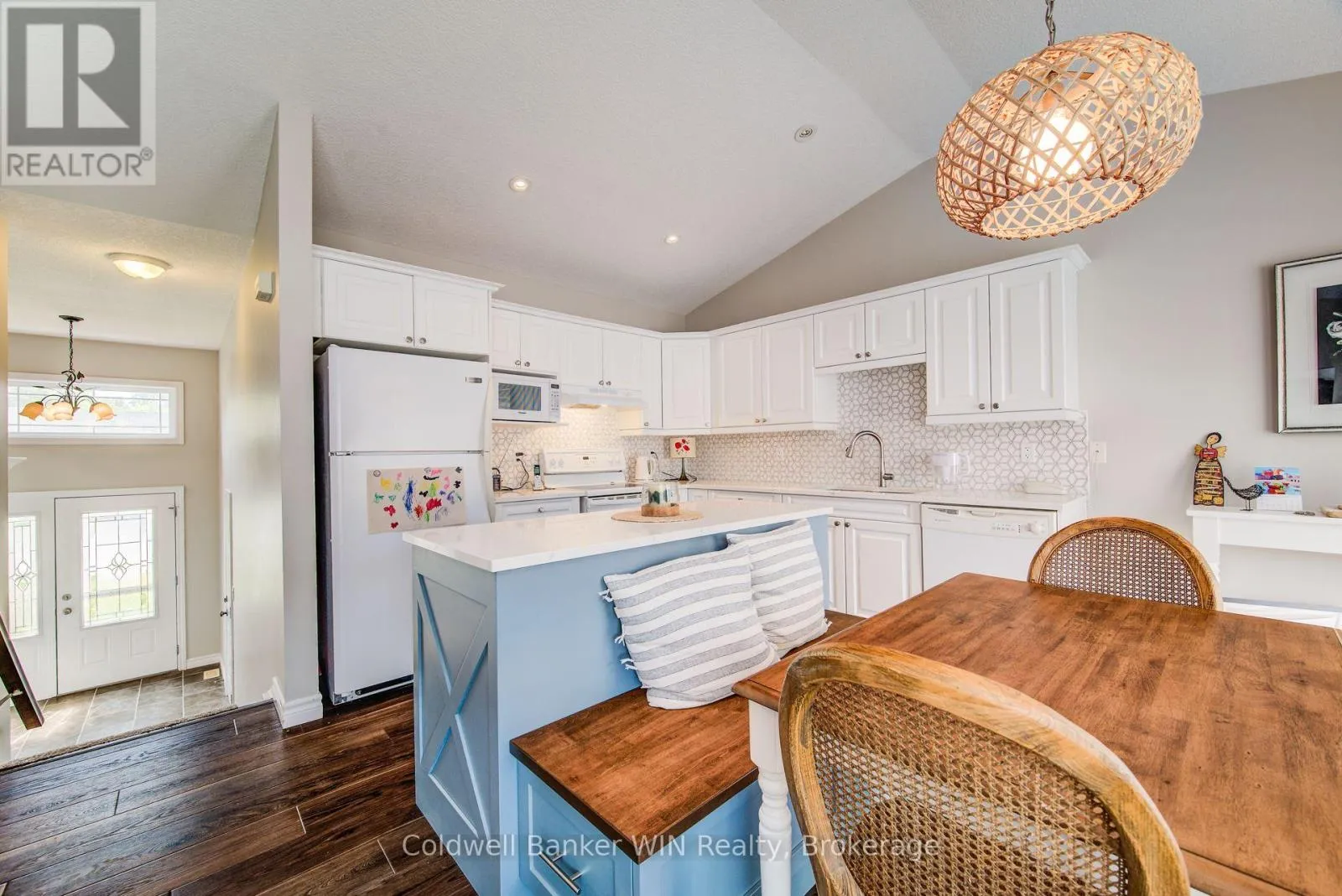 Go East on Wellington St from Hwy #6 to Church St., Turn left onto Church St., 3rd house on right. This impeccably maintained 2 + 1 bedroom beauty enjoys a great location close to downtown shopping, schools, park, sports fields, playground & splash pad. Enter through the large welcoming foyer with a cathedral ceiling into the main level with a carpet free, open concept layout and vaulted ceilings. The laundry is conveniently located on this level as well. The center island adds extra counter space for food preparation or as a serving area. Walkout from the dining area on the deck overlooking the fenced rear yard, newly poured concrete patio and newly seeded lawn. The lower level is a great overflow area with the 3rd bedroom, recreation room and 3 pc washroom for guests or family alike. (id:27476)