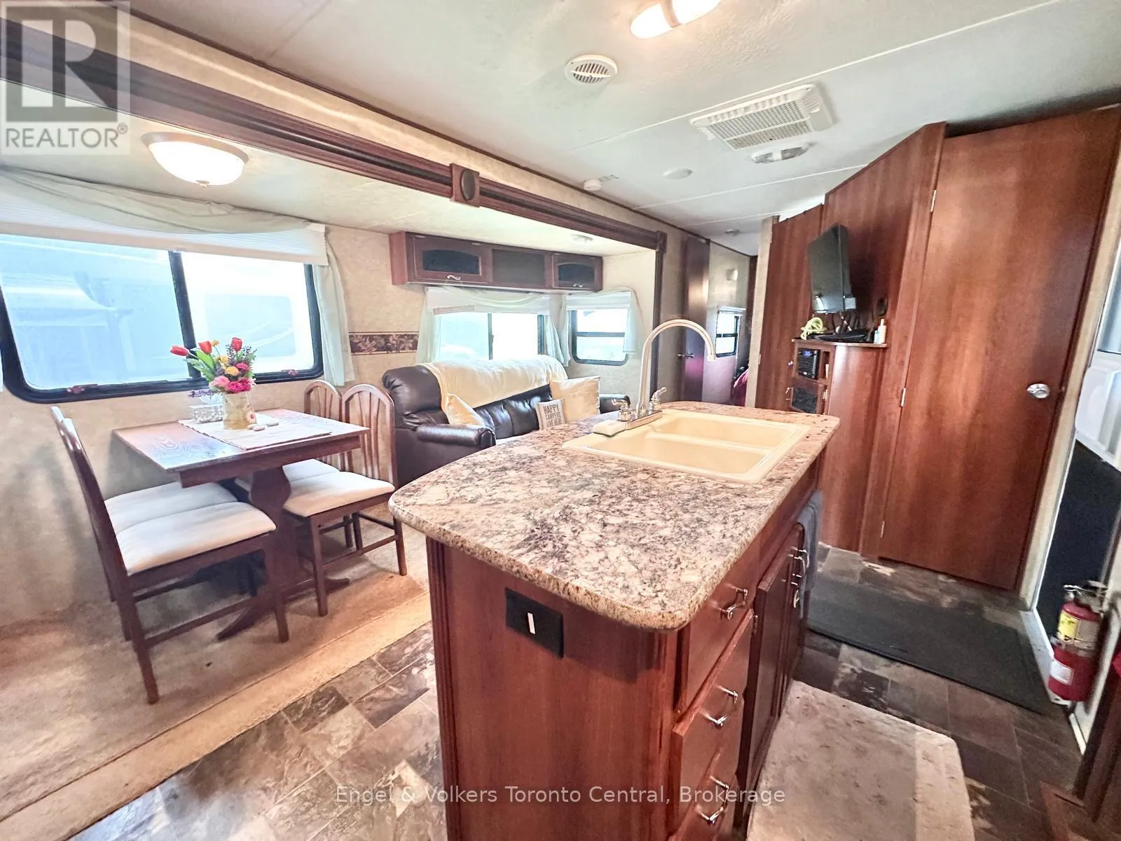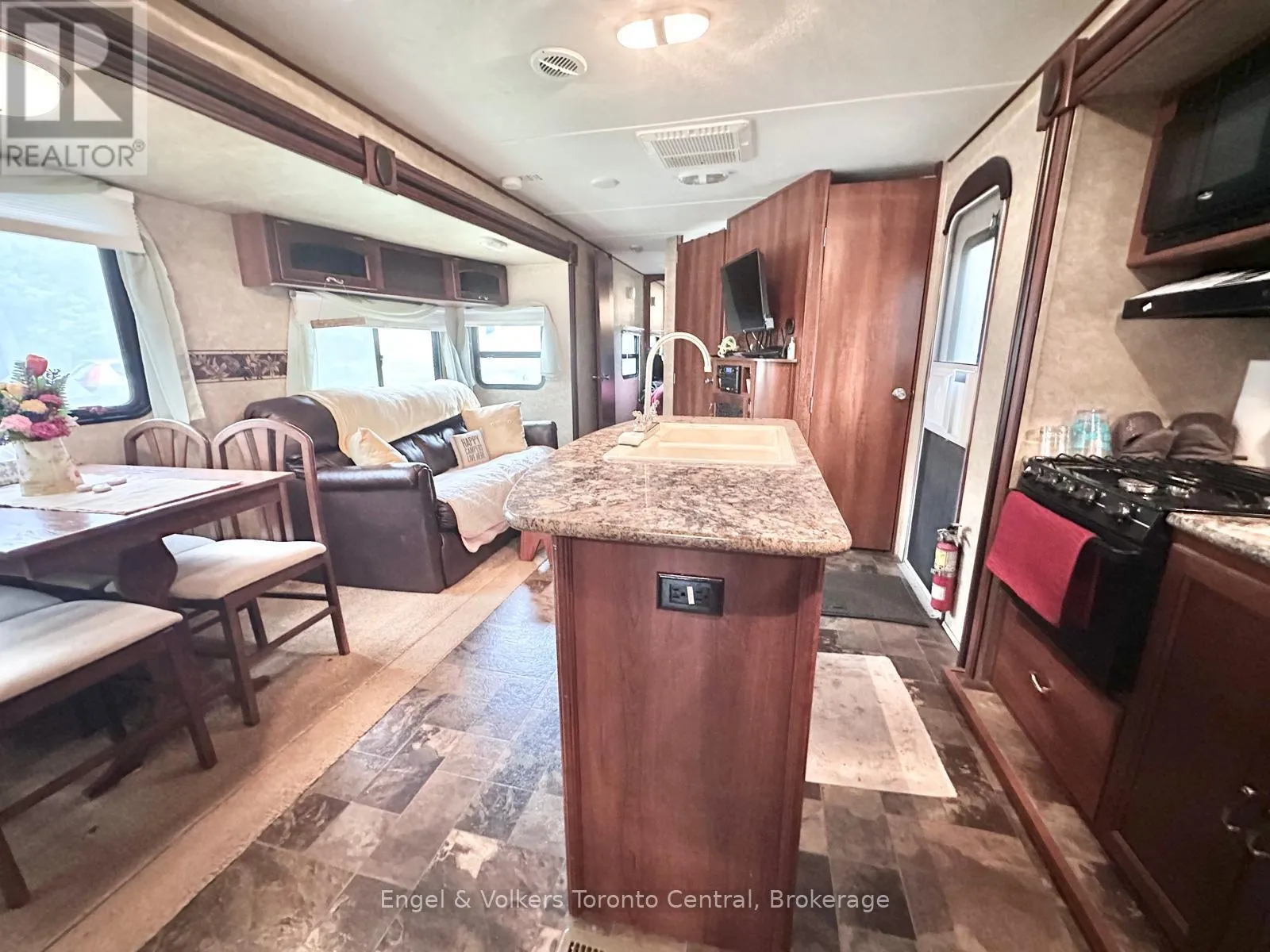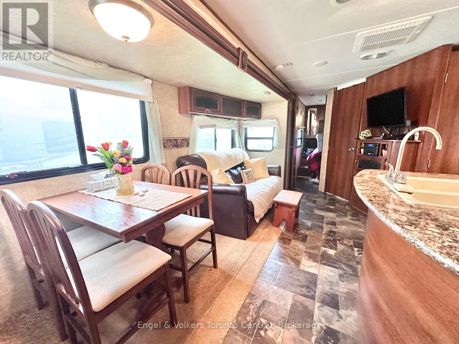 Highway 6 & Sideroad 5 E Your Ideal Summer Getaway Awaits! Escape to nature with this spacious, well-treed lot featuring a unique built-in BBQ hut and grill, perfect for outdoor entertaining. This 2014 Avenger mobile home offers a fantastic cottage alternative in the popular Parkbridge Spring Valley Resort, a seasonal resort open from the first Friday in May to the third Sunday in October. Enjoy resort-style amenities including two pools (adult and family), a beach area, mini-golf, kids' recreation programs, and a variety of adult social events such as horseshoe clubs, concerts in the park, and comedy nights. Inside, the home boasts two kitchen tip-outs, creating a bright and open living space with a freestanding dining area, kitchen island, and a futon-style couch for extra sleeping. The master bedroom features a queen bed with ample storage, while the second bedroom includes a kip-out with three bunk beds and a cozy entertainment space with a convertible table-ideal for kids or guests. An additional highlight is the convenient outdoor kitchen, perfect for summer dining. Whether you're looking for relaxation or fun-filled family time, this property has it all. Don't miss out! Schedule your private showing today! The fees for the 2026 season are $4,595.00. Note: Includes everything but your propane, hydro, and Internet if you choose to install it. There are no additional fees for water, property, taxes, visitors to the resort, etc. (id:27476)