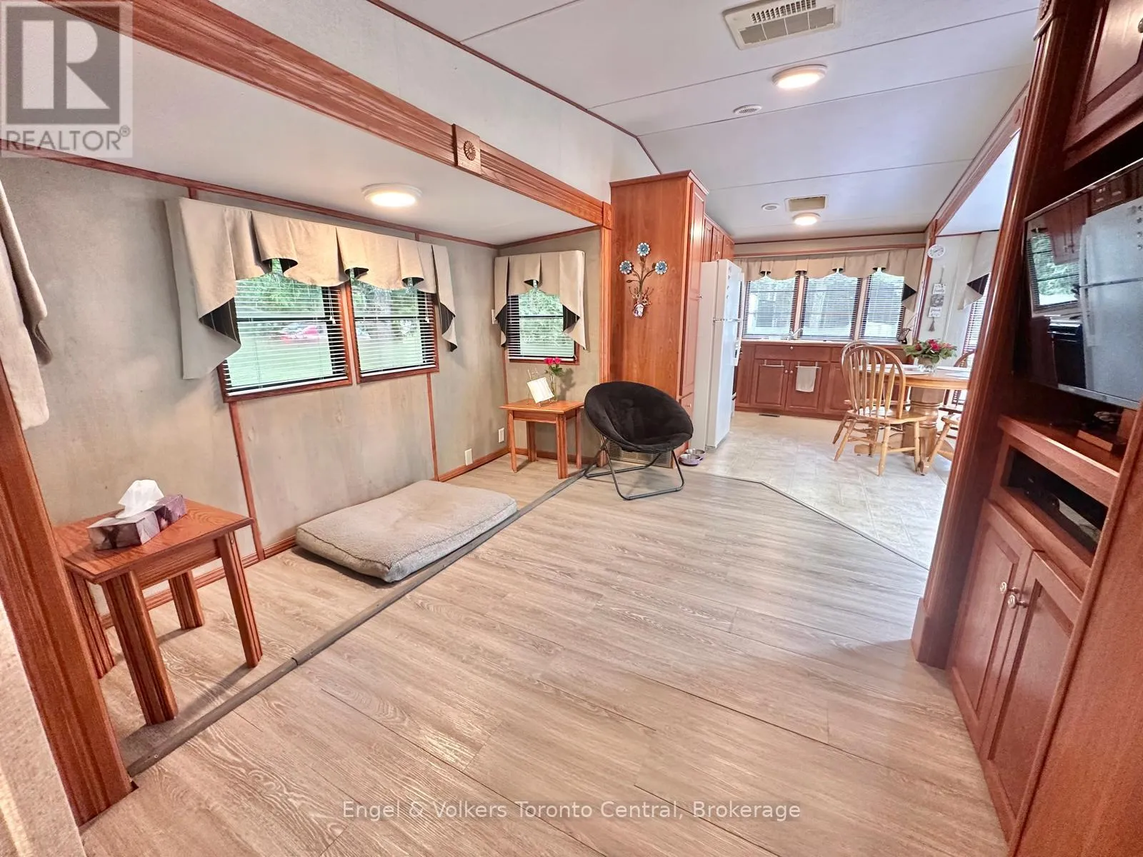 Highway 6 & Sideroad 5 East Get ready for your 2026 summer! This 1-bedroom 2006 General Coach 38 1BFK park model, a very roomy and bright unit, is the perfect place to spend next season. The extra-wide kitchen with a vaulted-ceiling eating area tip-out offers lots of cabinets for all your storage needs and a roomy place to seat your dinner guests. The living room offers a built-in entertainment area with a TV and a pull-out couch for your guest to comfortably stay. The bedroom also has a wall-to-wall closet with built-in shelves. Sit under the hard awning and listen to the nature that surrounds you on this great lot located on a dead-end street, or enjoy a campfire in the evenings with friends. This unit is located in the SEASONAL section of Spring Valley Resort and opens the second weekend of May and closes the third weekend of October. The resort offers 2 pools (1 adult and 1 family), mini-putt, a horseshoe club, a beach area, a lake to swim in, a rec center, and rec programs for both children and adults. Call to book your viewing today! The fees for the 2026 season are $4,595.00. Note: Includes everything but your propane, hydro, and Internet if you choose to install it. There are no additional fees for water, property, taxes, visitors to the resort, etc. (id:27476)
