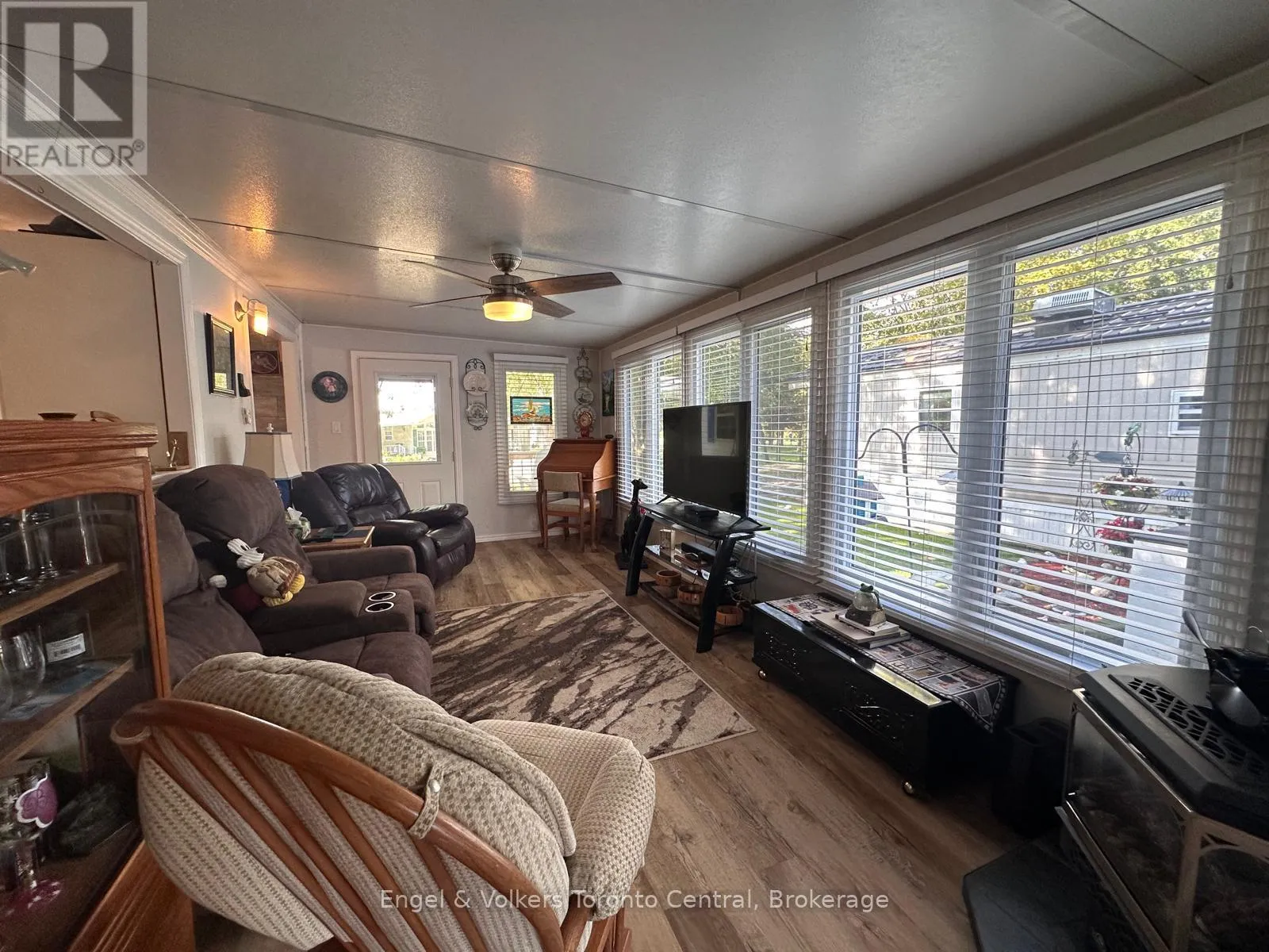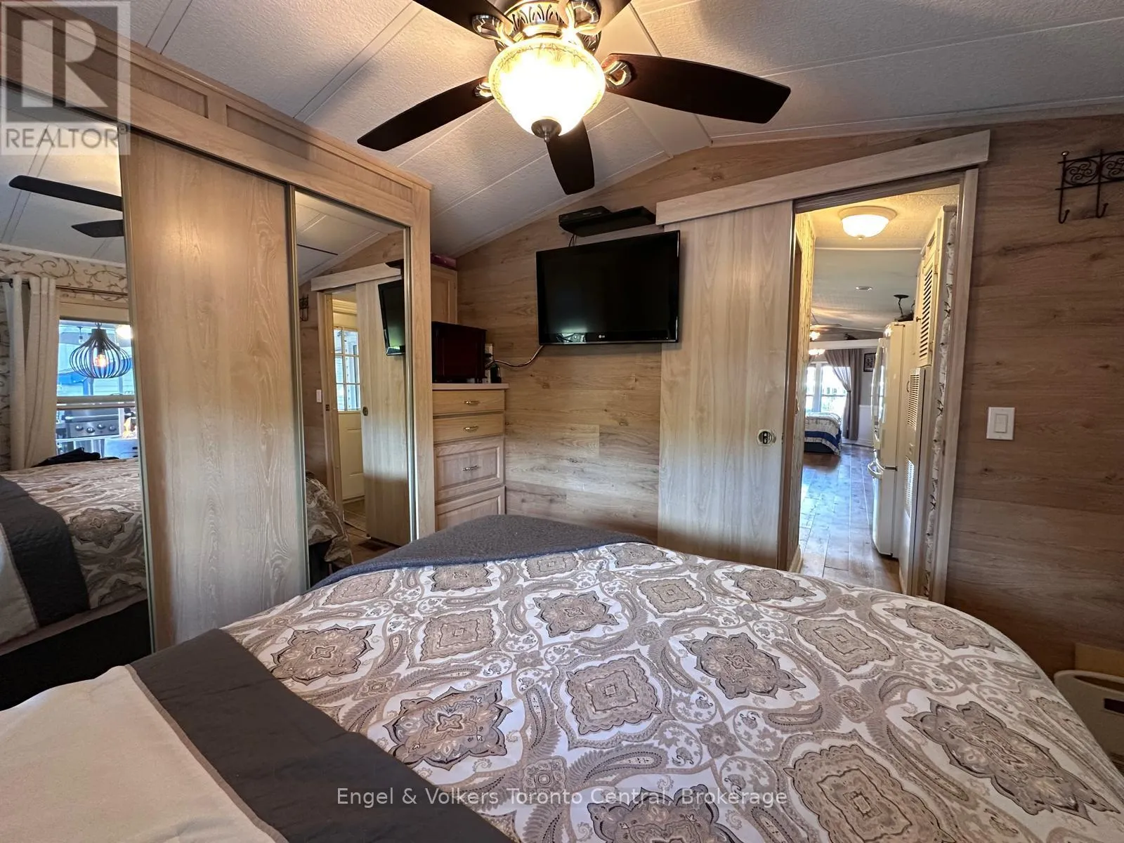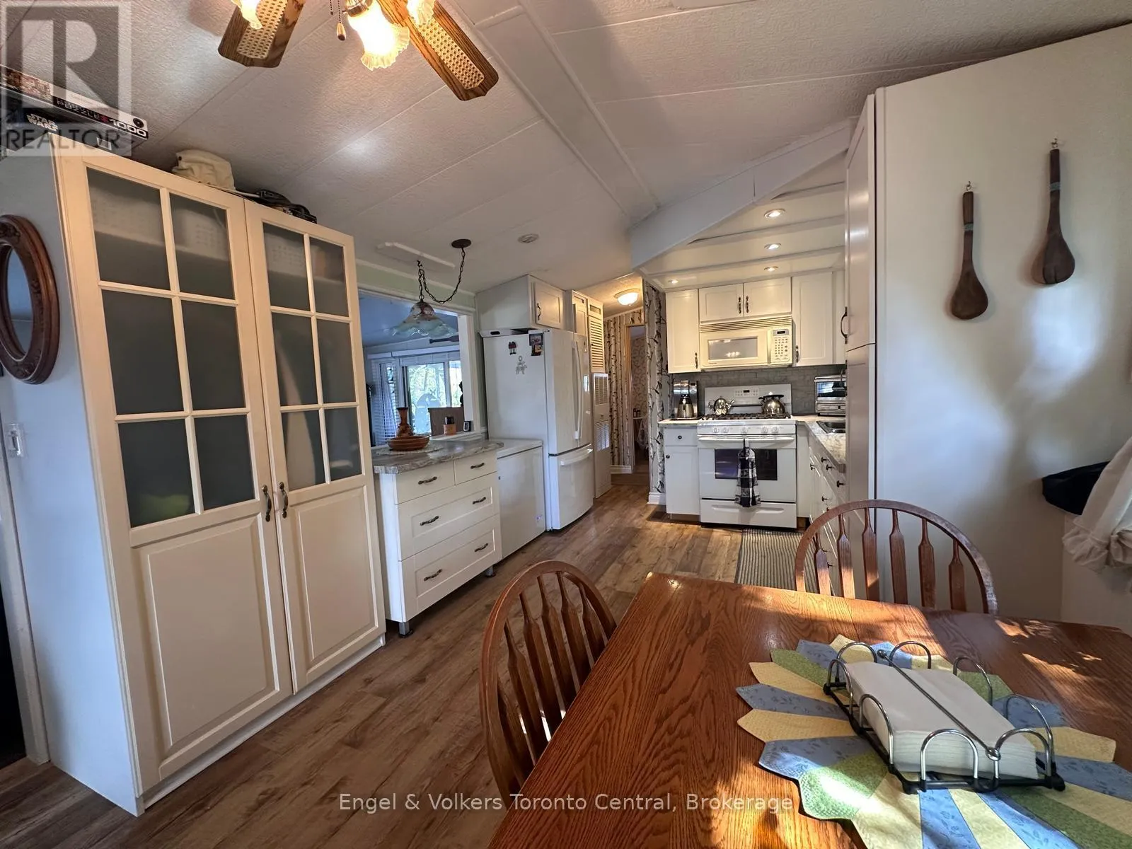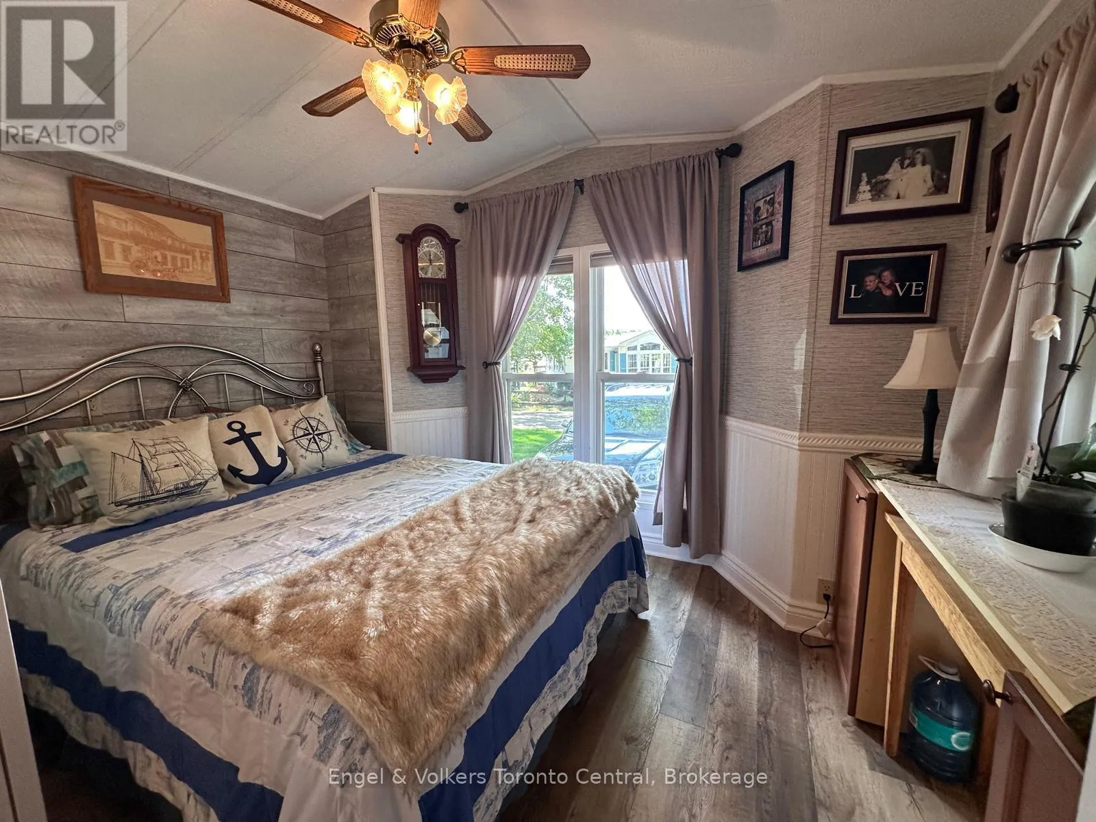 Highway 6 & Sideroad 5 East Welcome to your perfect waterfront extended-season getaway at Parkbridge Spring Valley Resort! This well-maintained 2-bedroom mobile home can be purchased as a 9-month or 6-month unit and offers comfortable living with beautiful waterfront views. The home has seen many recent renovations, including a beautifully updated kitchen, modernized bathroom, and new flooring throughout, giving the space a fresh and inviting feel. A spacious four-season add-a-room with a cozy propane fireplace provides additional living space, making it ideal for relaxing in the colder months or hosting family and friends. Step outside to enjoy the covered patio area, perfect for outdoor dining or unwinding in the shade. The large wrap-around waterfront deck overlooks Greenwood Lake and offers a fantastic setting to take in the peaceful surroundings. Fishing enthusiasts will love casting a line right off the dock, while the calm, non-motorized lake is perfect for kayaking and paddleboarding. Spring Valley Resort offers something for everyone, including recreational programs for both adults and children, a sandy beach and swimming lake, mini-putt, a horseshoe club, and concerts in the park throughout the season. The resort fee conveniently includes most costs associated with ownership, including property taxes, water, resort amenities, and visitor access. The only additional expenses are hydro, propane, and internet if you choose to install it. There are no additional fees for guests visiting the resort. This property combines comfort, nature, and recreation-making it an excellent cottage alternative in a vibrant resort community. The season's fees are $5635.00 and include everything but the hydro, propane, and internet, if you choose to install it. There are no additional fees for visitors, property taxes, water, etc. (id:27476)