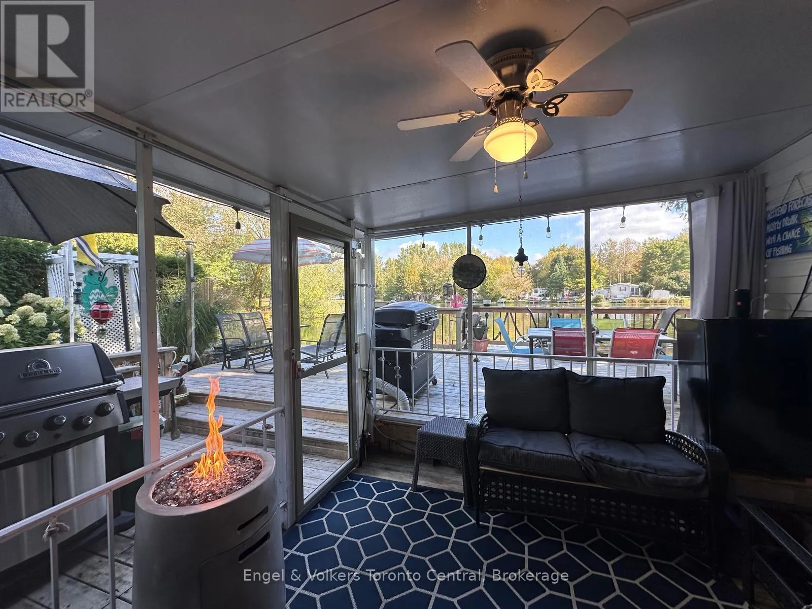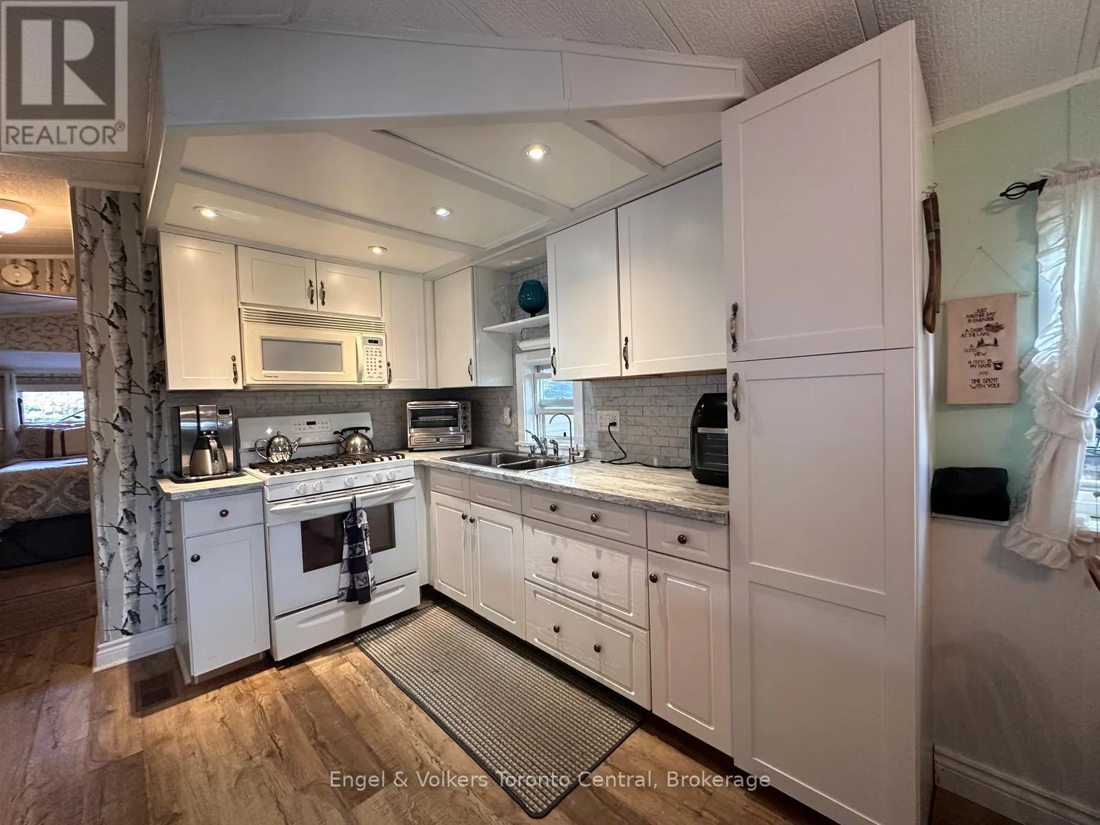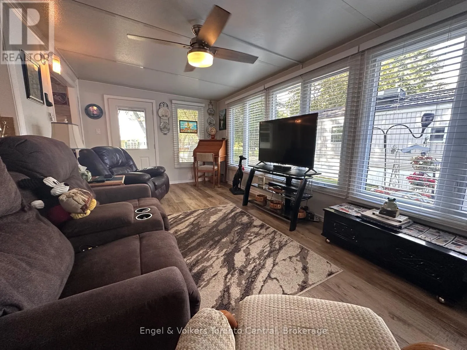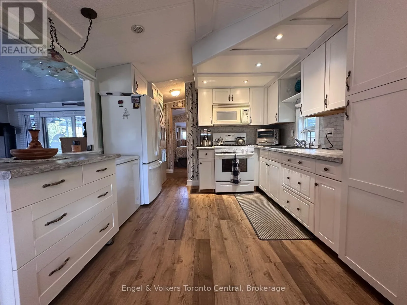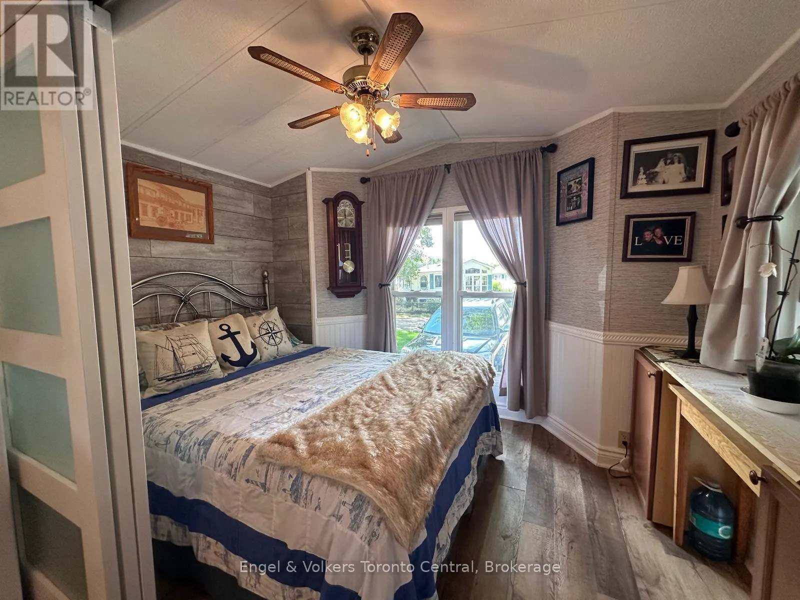 Highway 6 & Sideroad 5 East Welcome to your perfect waterfront extended-season getaway at Parkbridge Spring Valley Resort! This well-maintained 2-bedroom mobile home can be purchased as a 9-month or 6-month unit and offers comfortable living with beautiful waterfront views. The home has seen many recent renovations, including a beautifully updated kitchen, modernized bathroom, and new flooring throughout, giving the space a fresh and inviting feel. A spacious four-season add-a-room with a cozy propane fireplace provides additional living space, making it ideal for relaxing in the colder months or hosting family and friends. Step outside to enjoy the covered patio area, perfect for outdoor dining or unwinding in the shade. The large wrap-around waterfront deck overlooks Greenwood Lake and offers a fantastic setting to take in the peaceful surroundings. Fishing enthusiasts will love casting a line right off the dock, while the calm, non-motorized lake is perfect for kayaking and paddleboarding. Spring Valley Resort offers something for everyone, including recreational programs for both adults and children, a sandy beach and swimming lake, mini-putt, a horseshoe club, and concerts in the park throughout the season. The resort fee conveniently includes most costs associated with ownership, including property taxes, water, resort amenities, and visitor access. The only additional expenses are hydro, propane, and internet if you choose to install it. There are no additional fees for guests visiting the resort. This property combines comfort, nature, and recreation-making it an excellent cottage alternative in a vibrant resort community. The season's fees are $5635.00 and include everything but the hydro, propane, and internet, if you choose to install it. There are no additional fees for visitors, property taxes, water, etc. (id:27476)