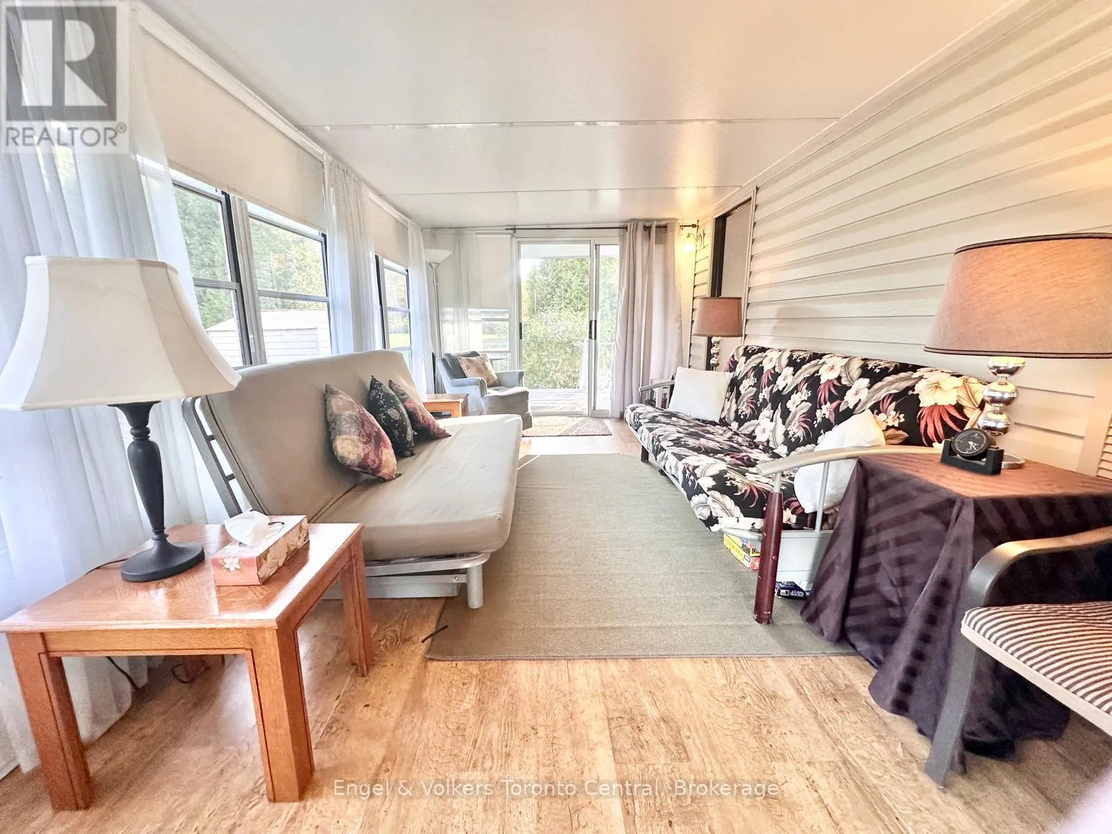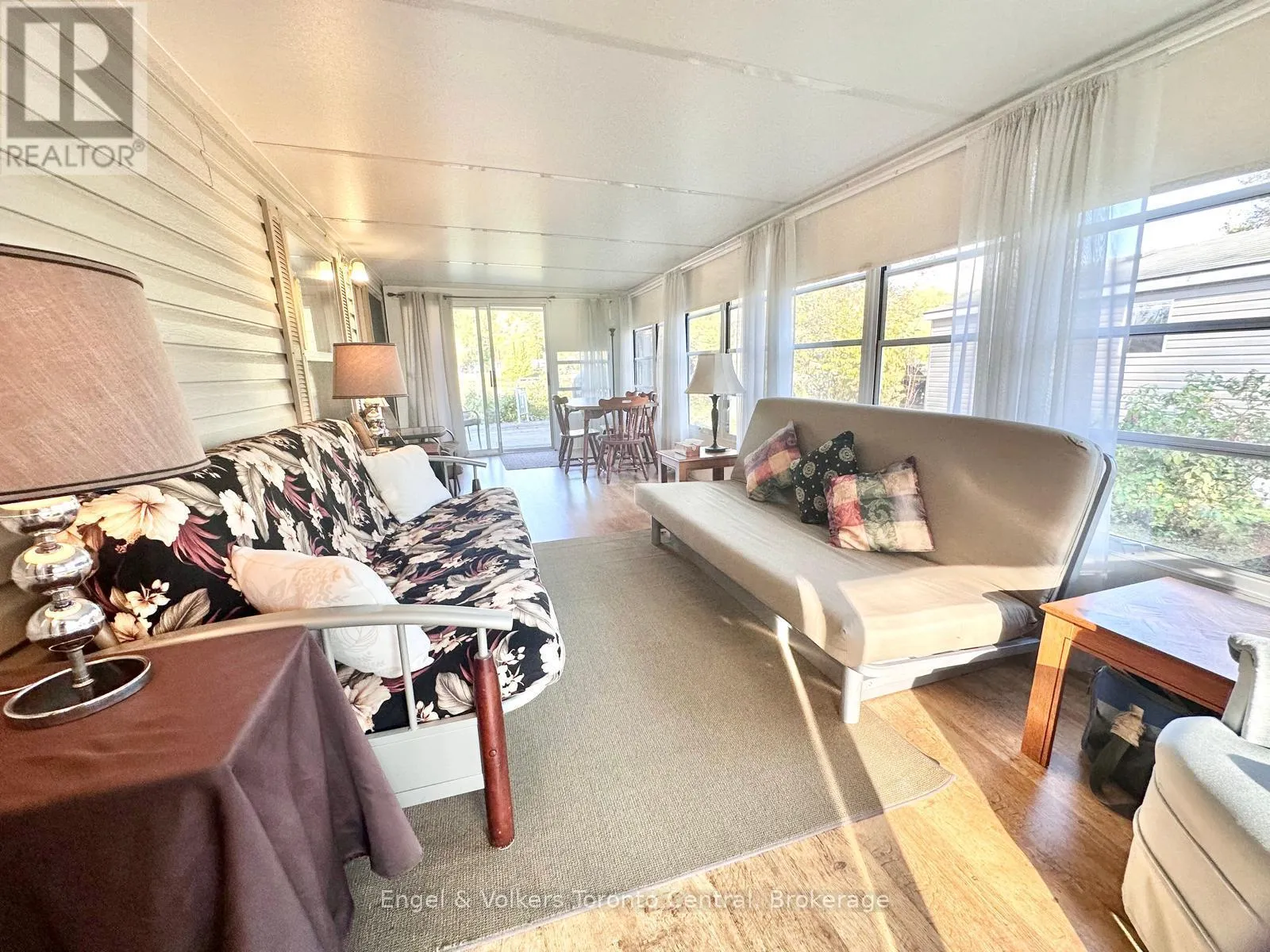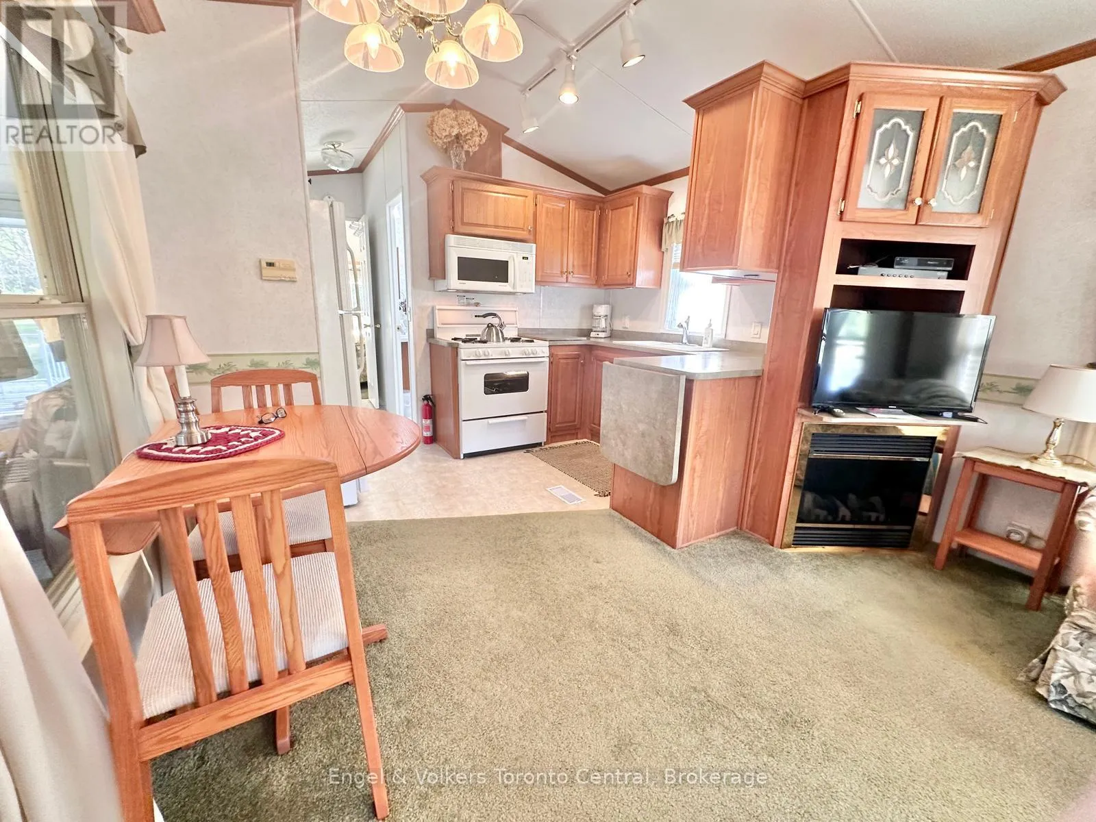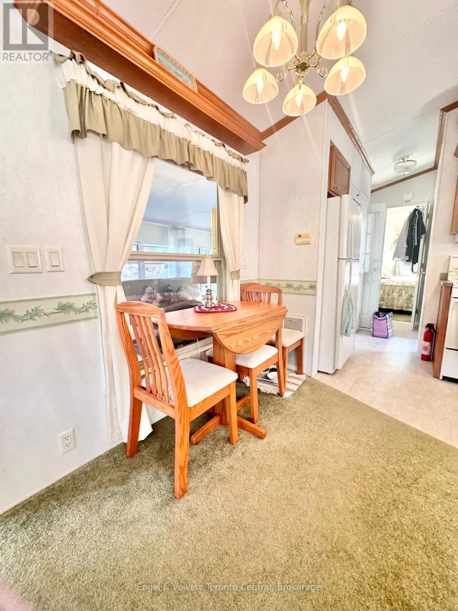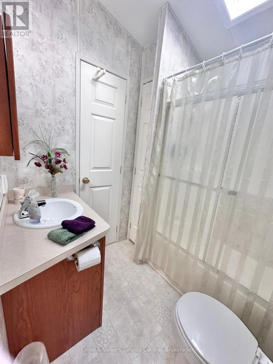 Highway 6 to Sideroad 5 East. First right to continue on Sideroad 5 East. First Right to turn into Spring Valley Park Explore this great 840 sq ft. Seasonal cottage alternative with new shingles and skylight completed in 2024! Nestled in the serene ambiance of Parkbridge's Spring Valley Resort, Mount Forest, this cottager unit invites you to revel in the tranquility of Greenwood Lake. Immerse yourself in leisurely activities with paddleboat excursions, kayaking, or paddleboarding on the non-motorized lake. Alternatively, savor moments of repose on your expansive deck, where you can leisurely cast a rod into the catch-and-release lake. Step inside to discover a meticulously designed haven boasting ample storage and impeccable appliances and lots of counter prep space. The spacious living room beckons you to unwind by the electric fireplace while relishing beautiful views of the water. The master bedroom is a sanctuary of comfort, offering abundant built-in storage with lighting and a luxurious queen-sized bed, and ensuite privileges. There is ample space for your guest to stay, as this unit is set up to sleep 10 and offers a second bedroom/den space with an accordian wall. Pamper yourself in the well-appointed bathroom, complete with a flushing toilet and a generously sized shower/bathtub. The delightful surprise comes in the form of an additional sunroom that expands the living space, providing breathtaking views of the lake. This remarkable unit stands as a testament to both style and functionality, positioned on an extraordinary lot that complements its beauty. The resort opens the first Friday in May and closes the third Sunday in October. No rentals are permitted, ensuring a serene and exclusive atmosphere. Seize the opportunity to witness this picturesque retreat firsthand by calling now to schedule your private viewing. Your idyllic lakeside escape awaits! The season's fees are $5635.00 and include everything but the hydro, propane, and internet, if you choose to install it. There are no additional fees for visitors, property taxes, water, etc. (id:27476)