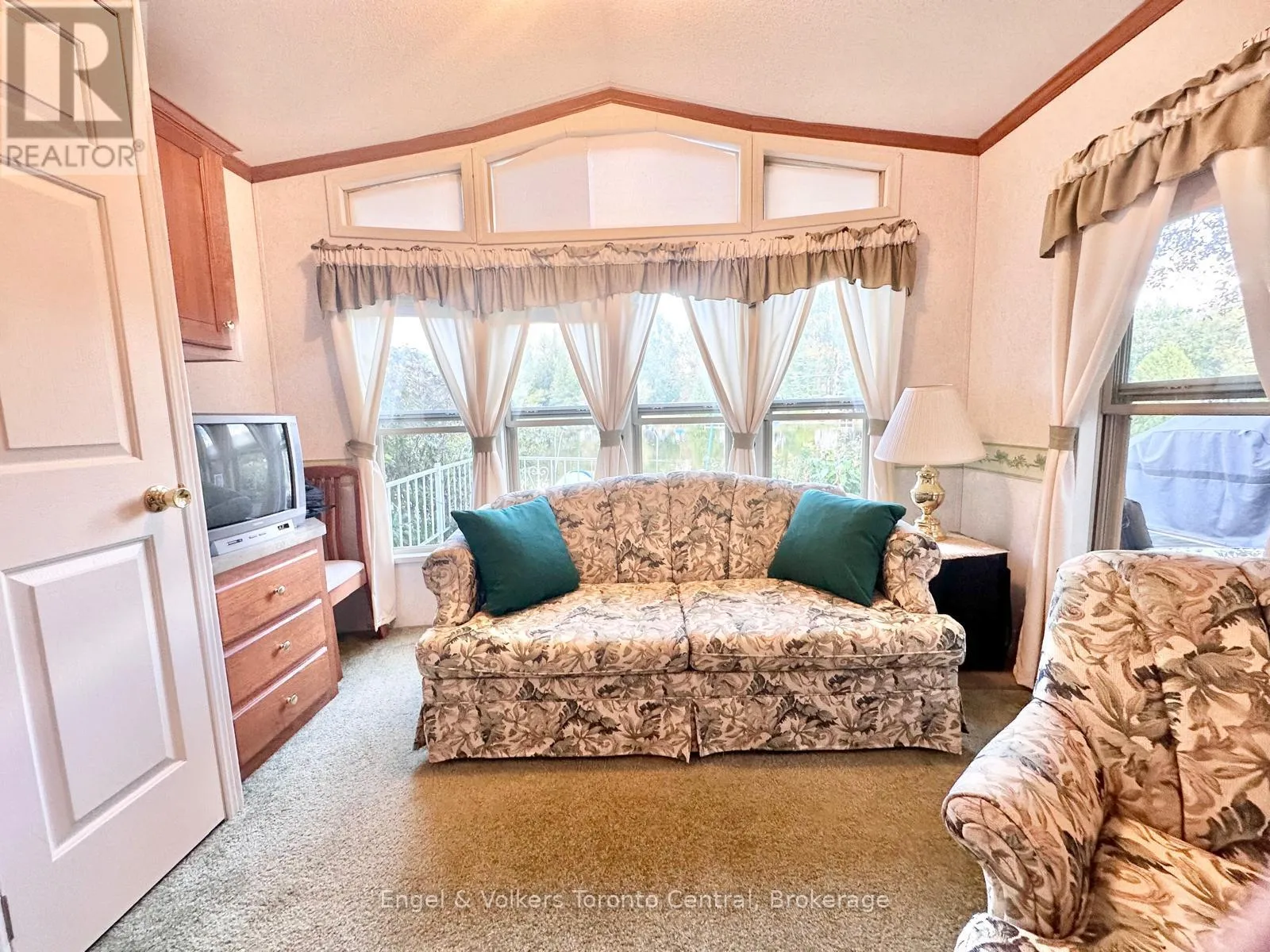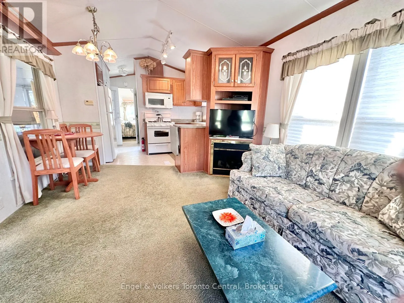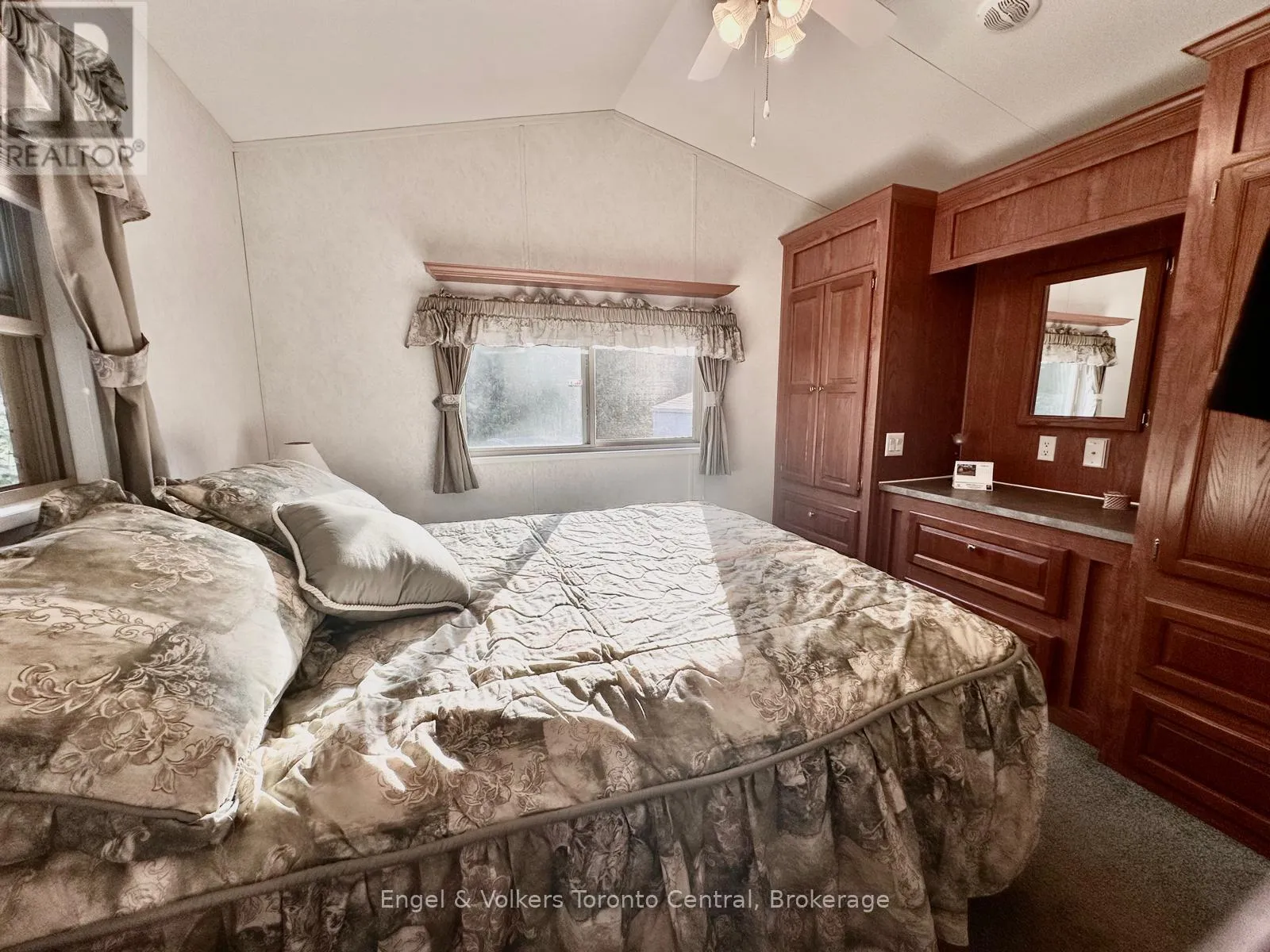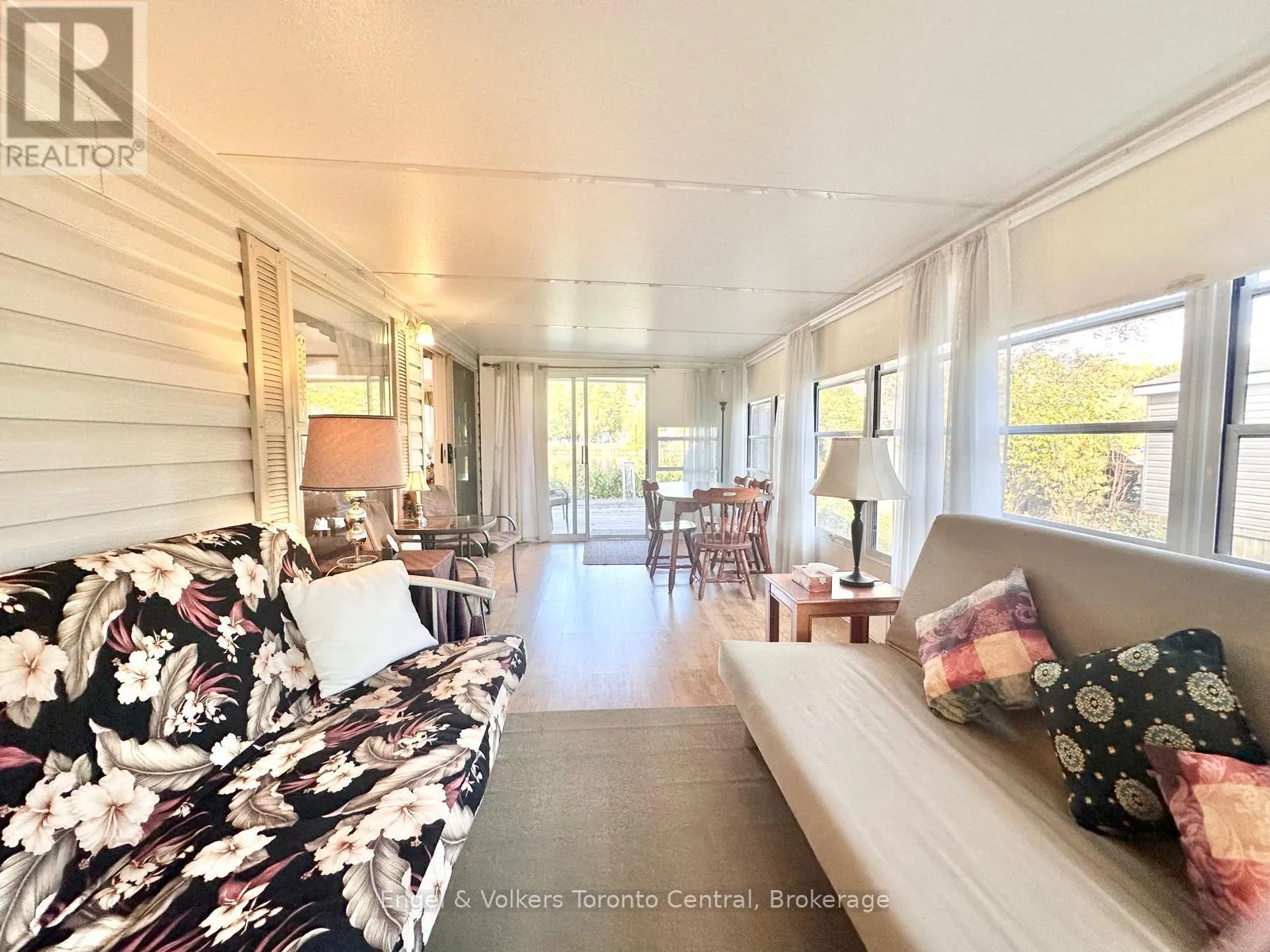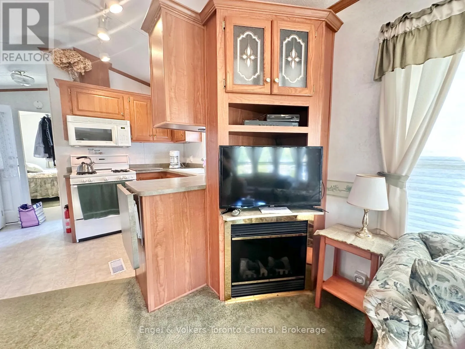 Highway 6 to Sideroad 5 East. First right to continue on Sideroad 5 East. First Right to turn into Spring Valley Park Explore this great 840 sq ft. Seasonal cottage alternative with new shingles and skylight completed in 2024! Nestled in the serene ambiance of Parkbridge's Spring Valley Resort, Mount Forest, this cottager unit invites you to revel in the tranquility of Greenwood Lake. Immerse yourself in leisurely activities with paddleboat excursions, kayaking, or paddleboarding on the non-motorized lake. Alternatively, savor moments of repose on your expansive deck, where you can leisurely cast a rod into the catch-and-release lake. Step inside to discover a meticulously designed haven boasting ample storage and impeccable appliances and lots of counter prep space. The spacious living room beckons you to unwind by the electric fireplace while relishing beautiful views of the water. The master bedroom is a sanctuary of comfort, offering abundant built-in storage with lighting and a luxurious queen-sized bed, and ensuite privileges. There is ample space for your guest to stay, as this unit is set up to sleep 10 and offers a second bedroom/den space with an accordian wall. Pamper yourself in the well-appointed bathroom, complete with a flushing toilet and a generously sized shower/bathtub. The delightful surprise comes in the form of an additional sunroom that expands the living space, providing breathtaking views of the lake. This remarkable unit stands as a testament to both style and functionality, positioned on an extraordinary lot that complements its beauty. The resort opens the first Friday in May and closes the third Sunday in October. No rentals are permitted, ensuring a serene and exclusive atmosphere. Seize the opportunity to witness this picturesque retreat firsthand by calling now to schedule your private viewing. Your idyllic lakeside escape awaits! The season's fees are $5635.00 and include everything but the hydro, propane, and internet, if you choose to install it. There are no additional fees for visitors, property taxes, water, etc. (id:27476)